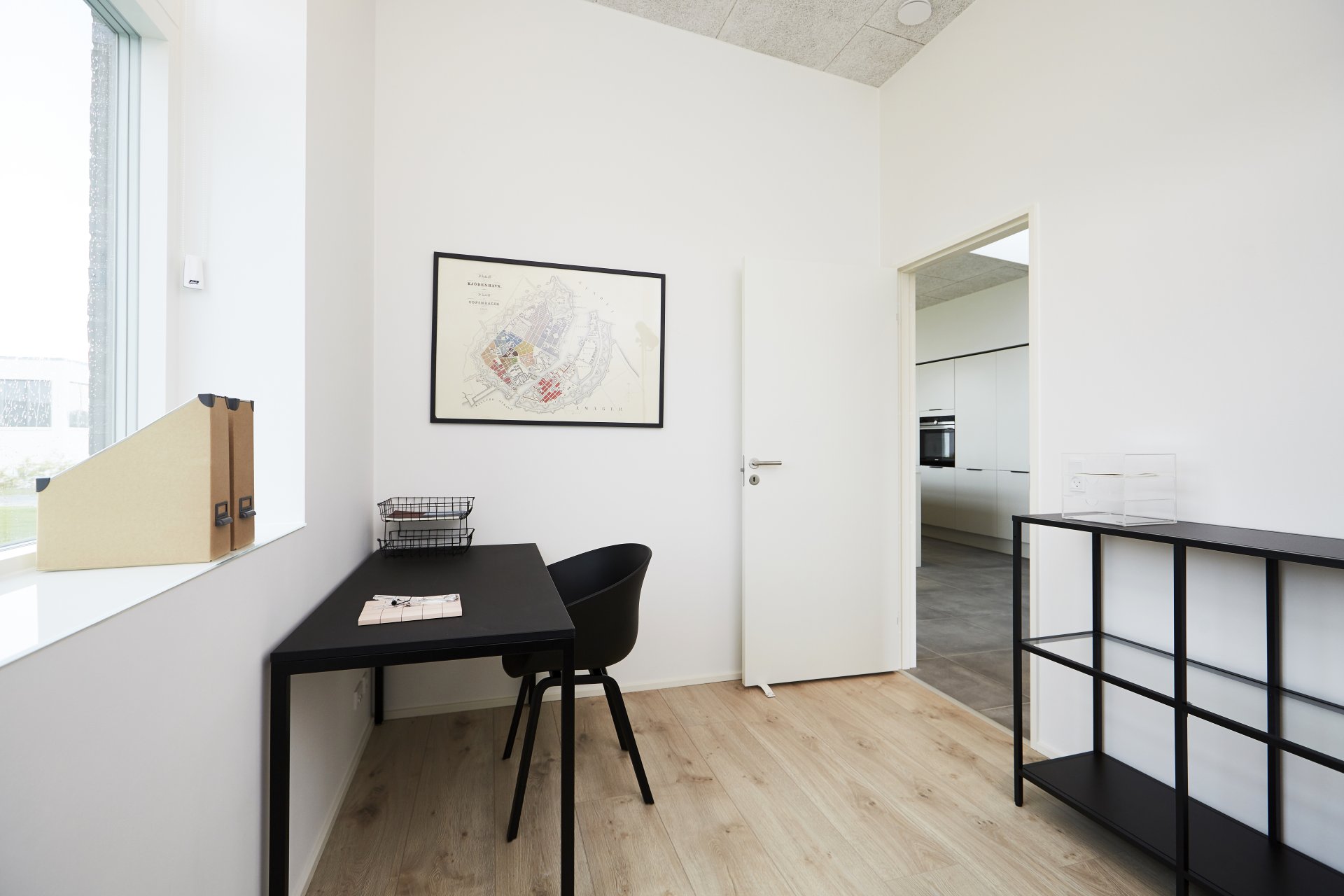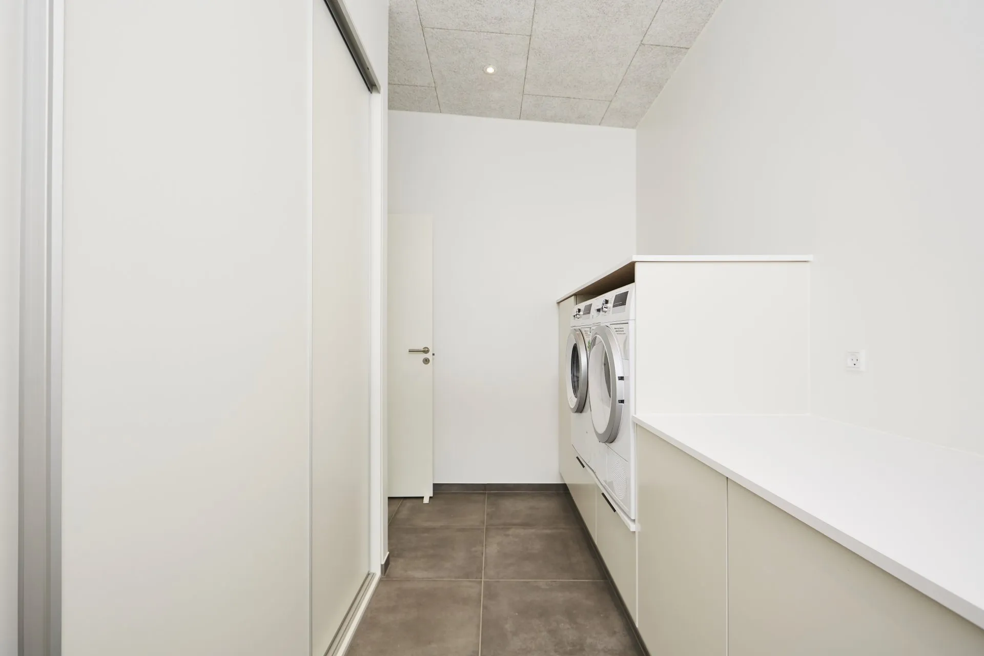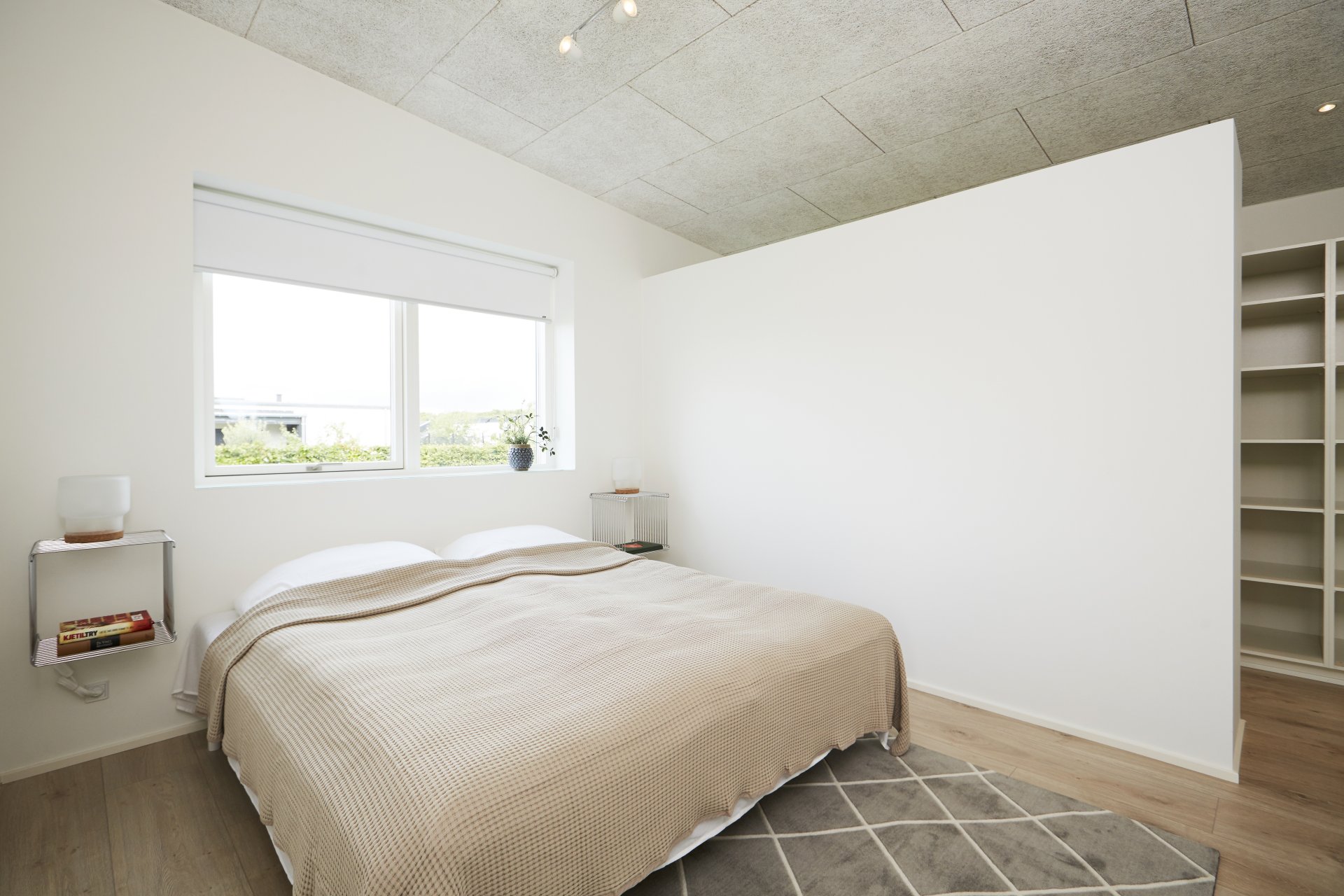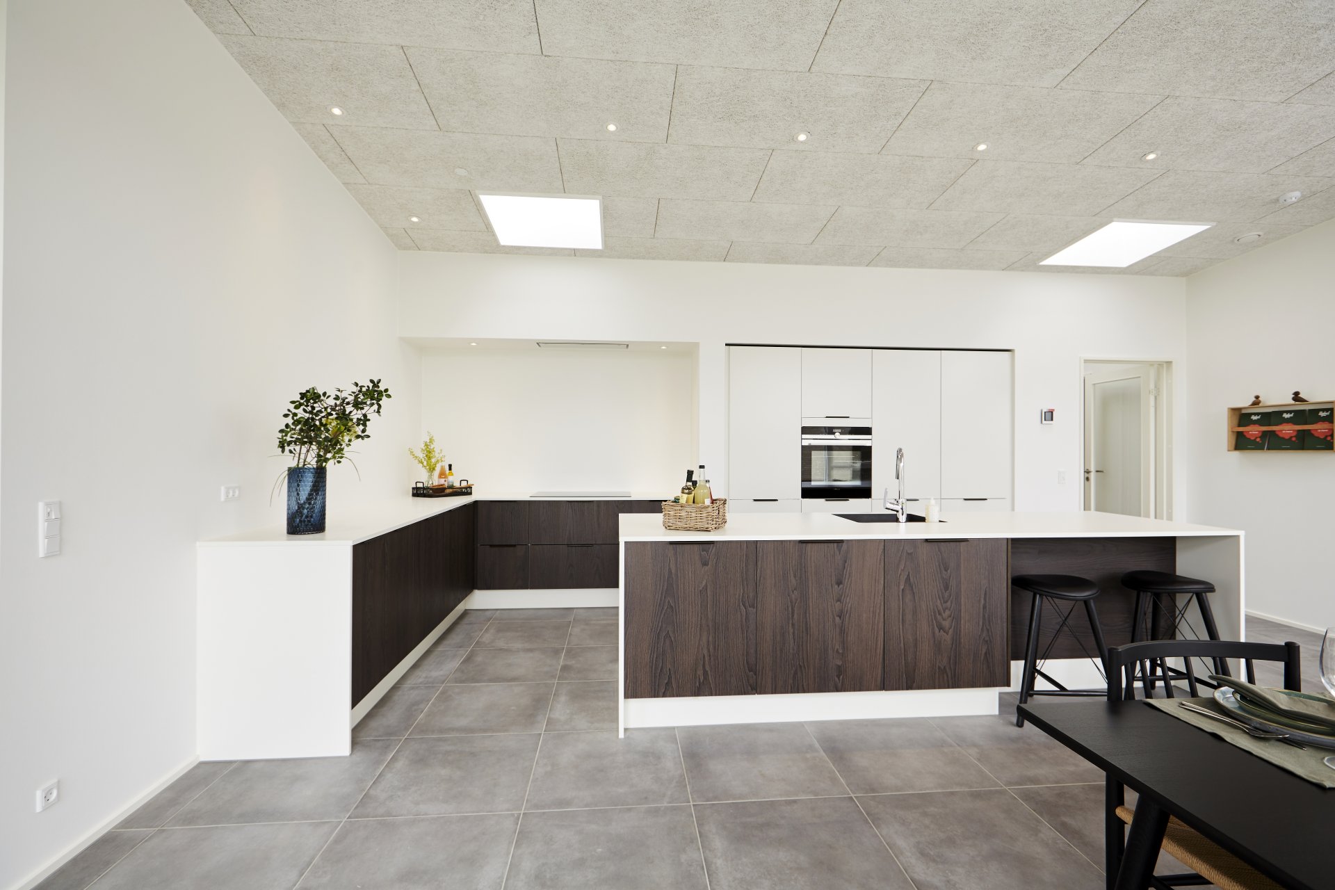 Gennemgående skrålofter, stort køkken/alrum, fritstående badekar og fladtags carport.