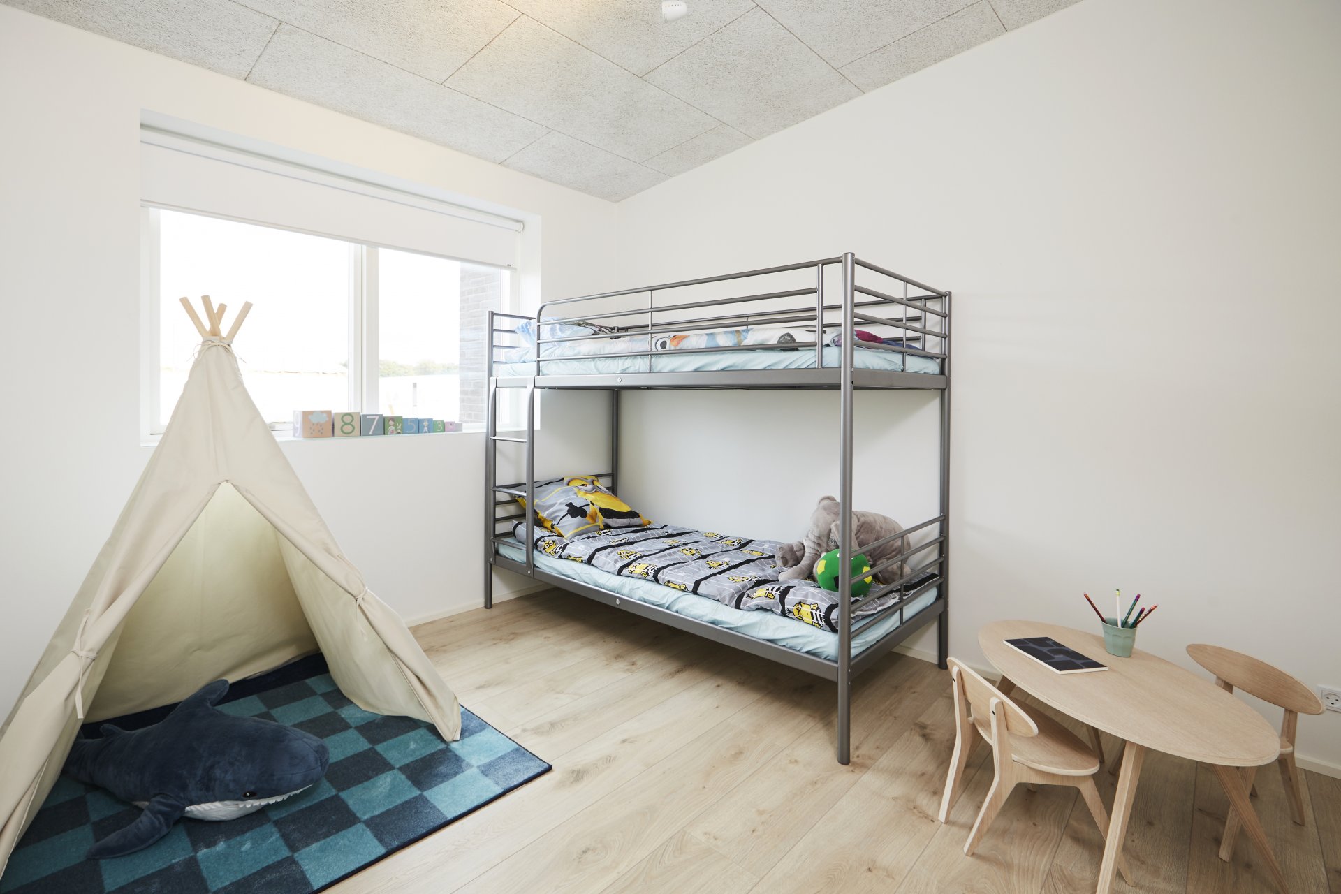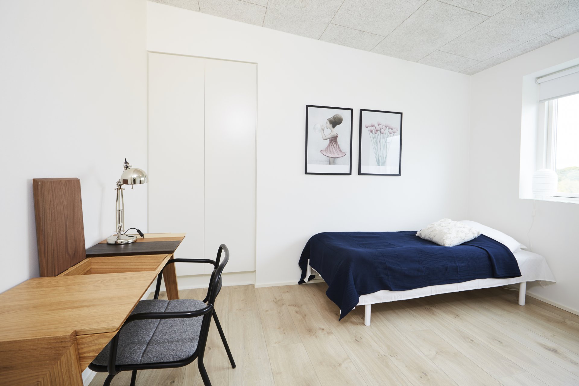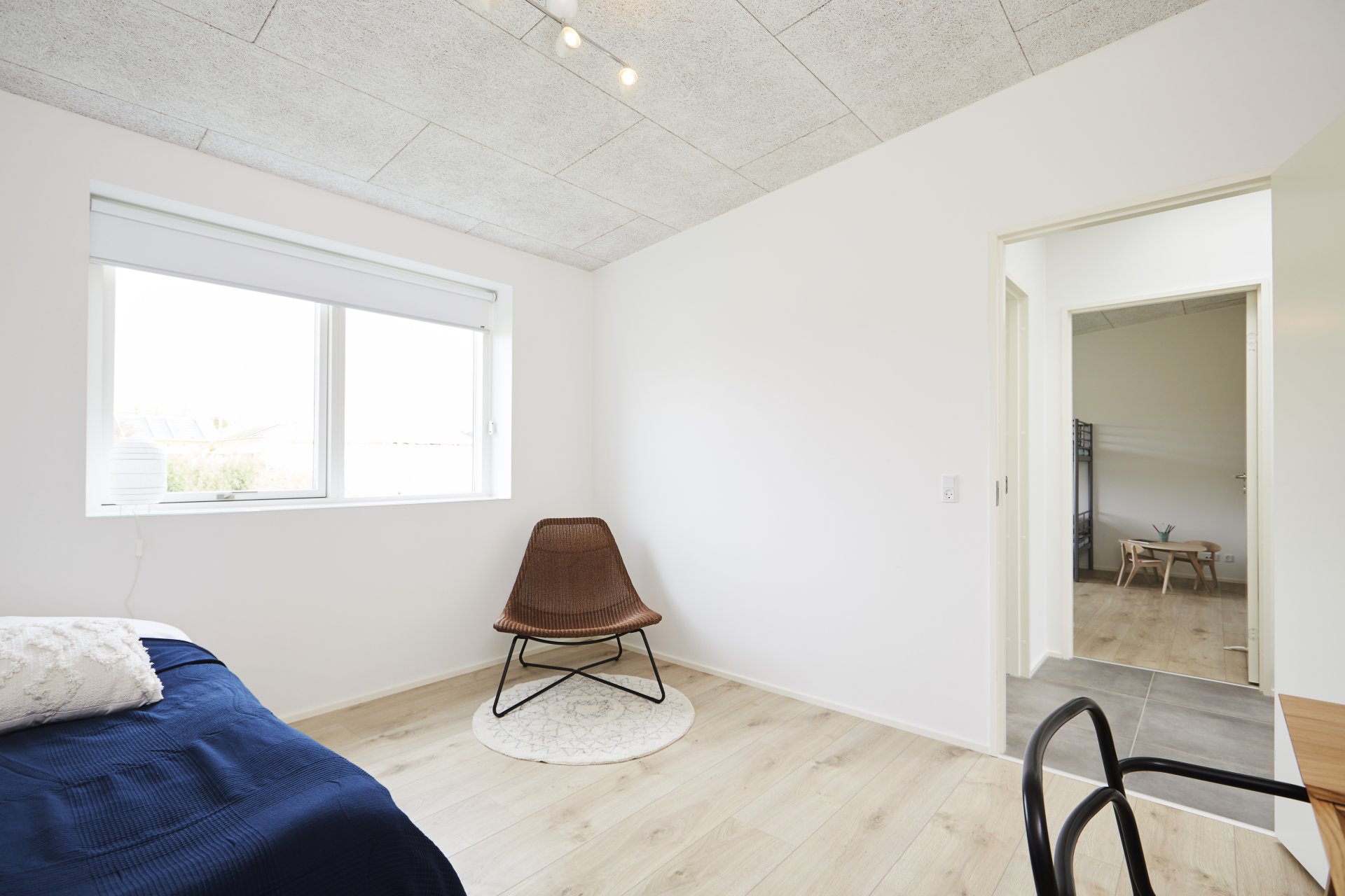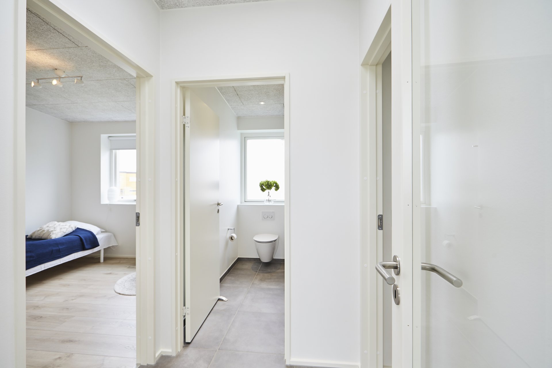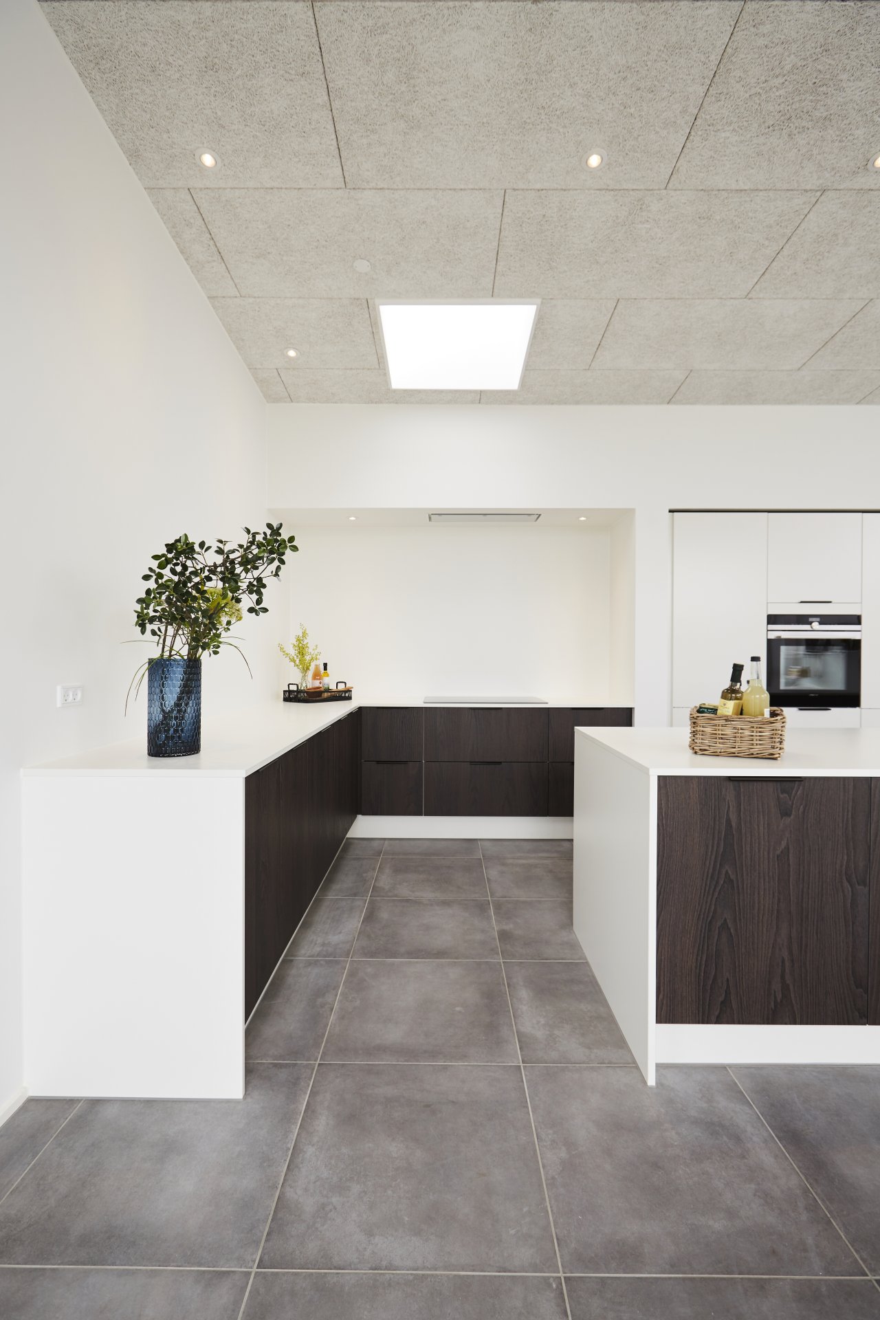 Gennemgående skrålofter, stort køkken/alrum, fritstående badekar og fladtags carport.
