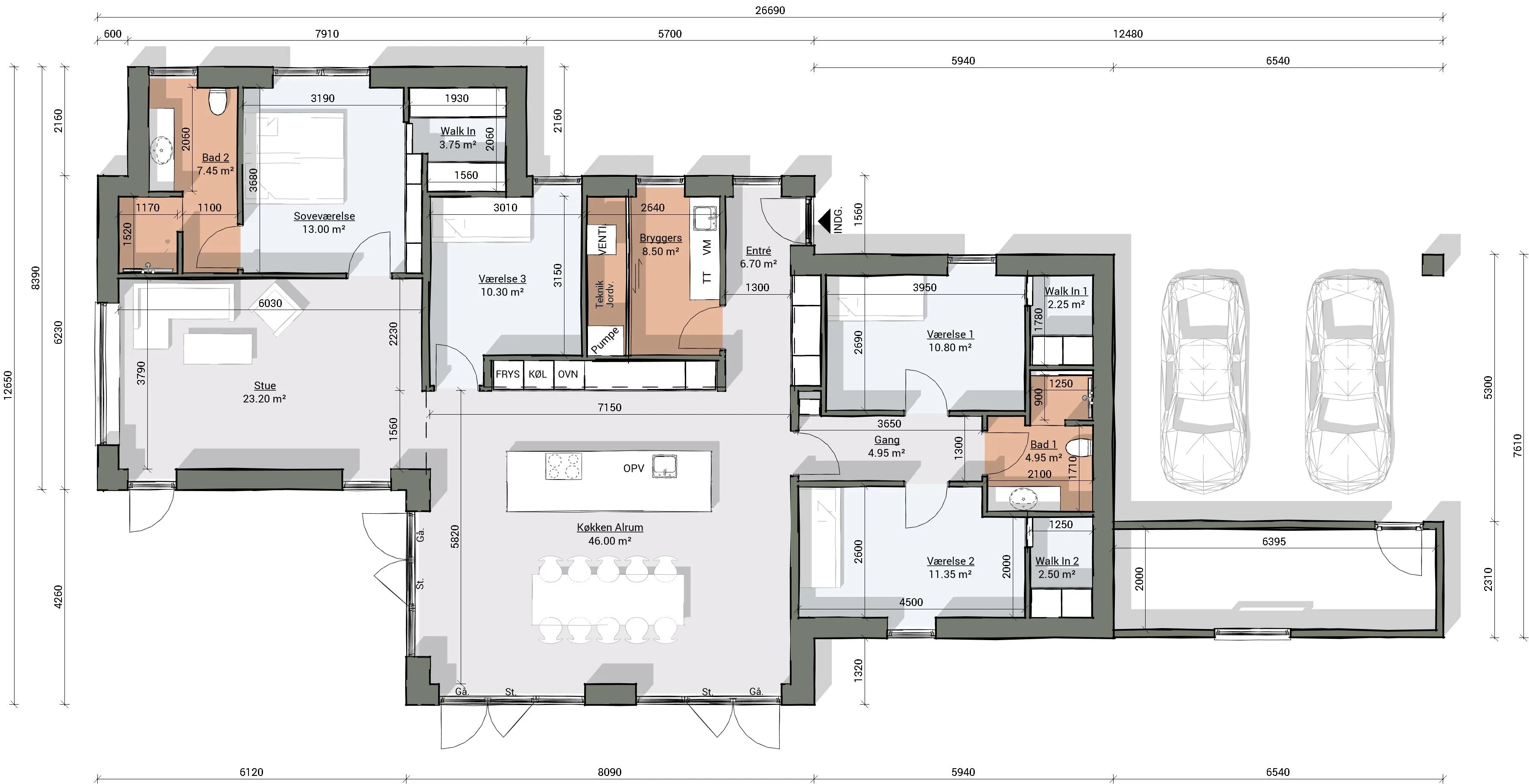 Bolig: 185 m2 Carport: 50 m2