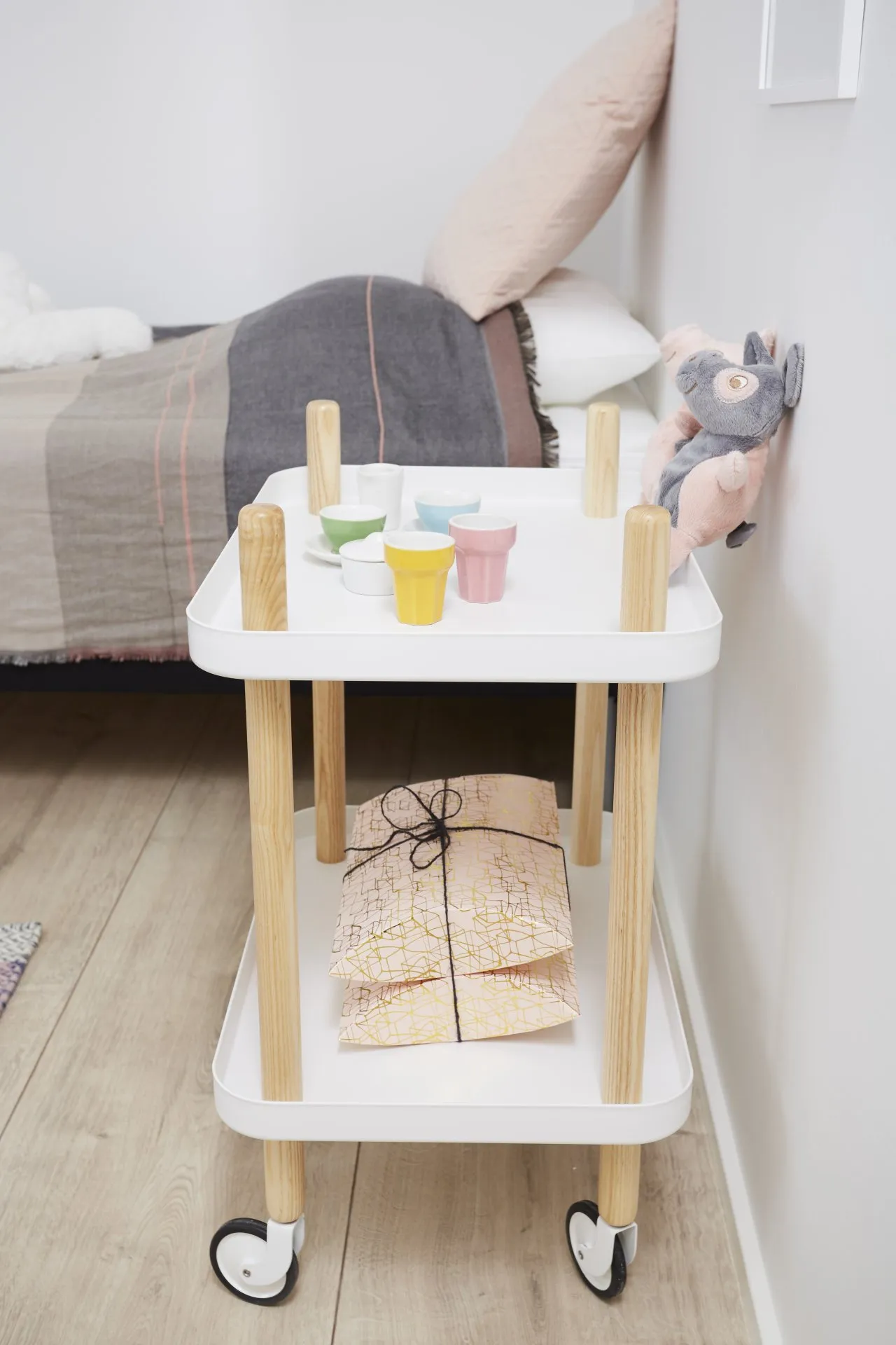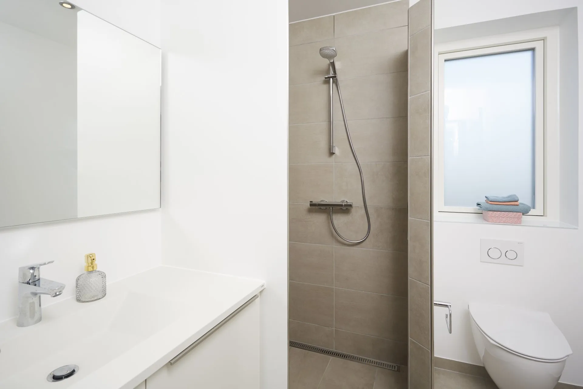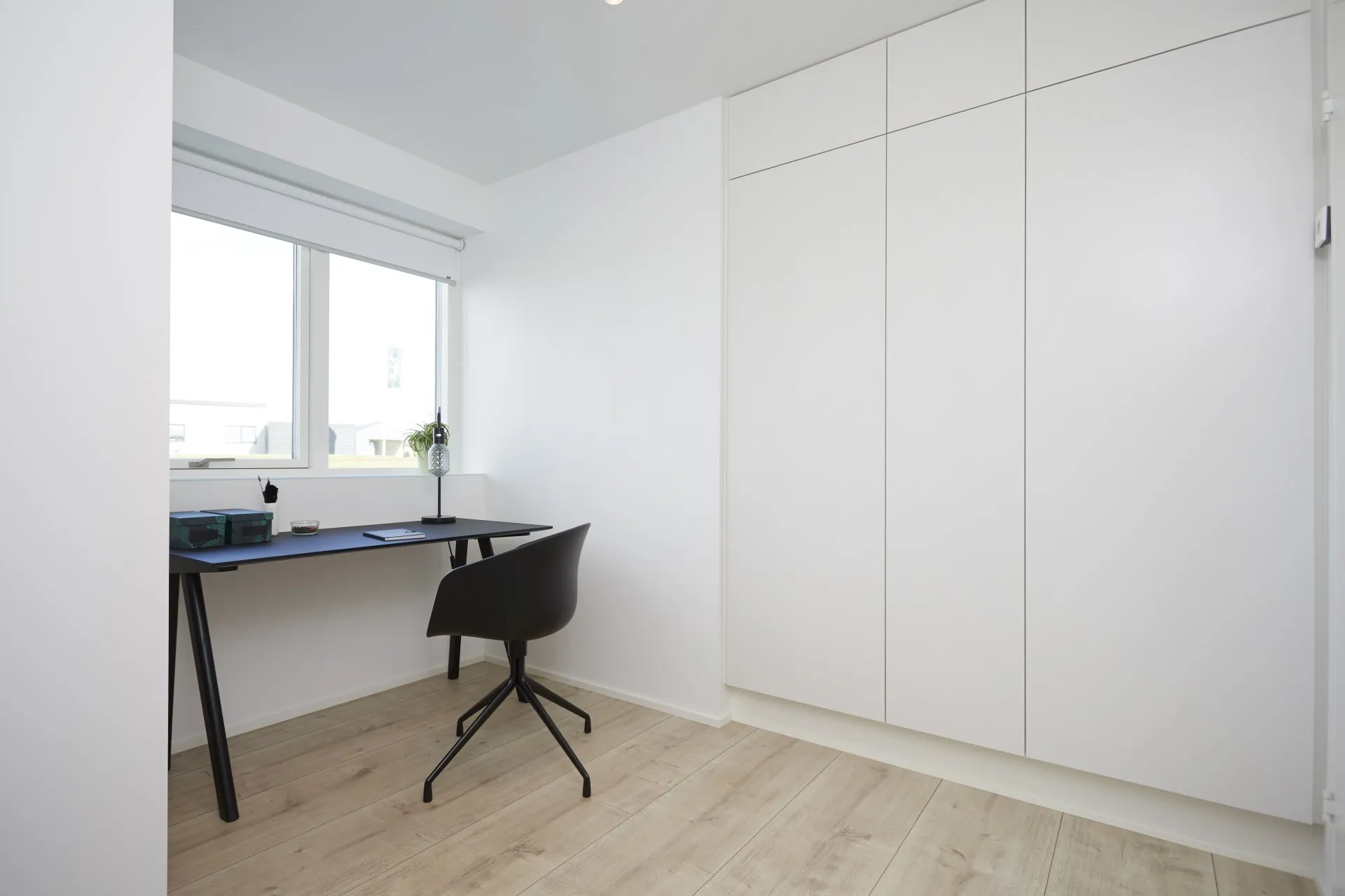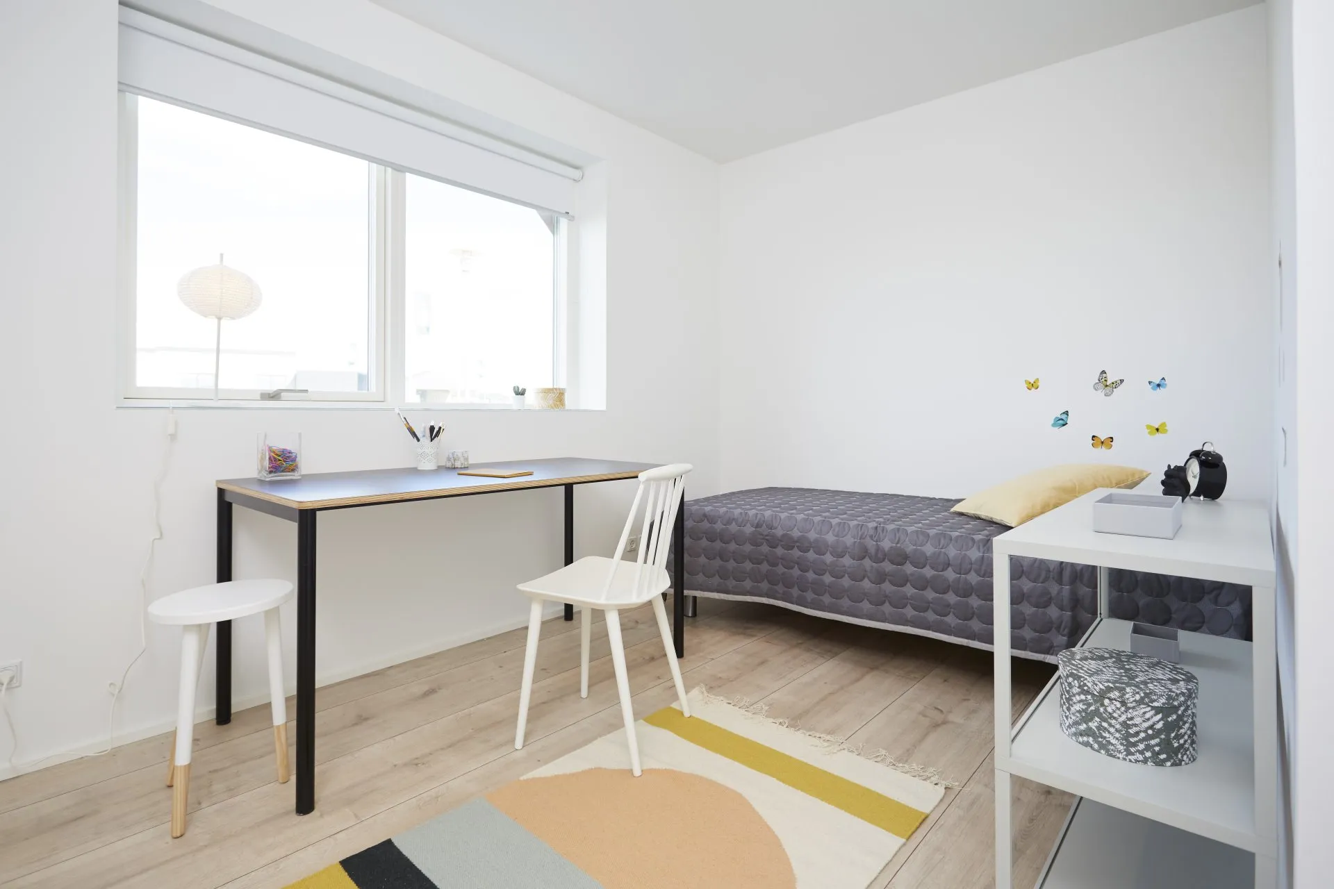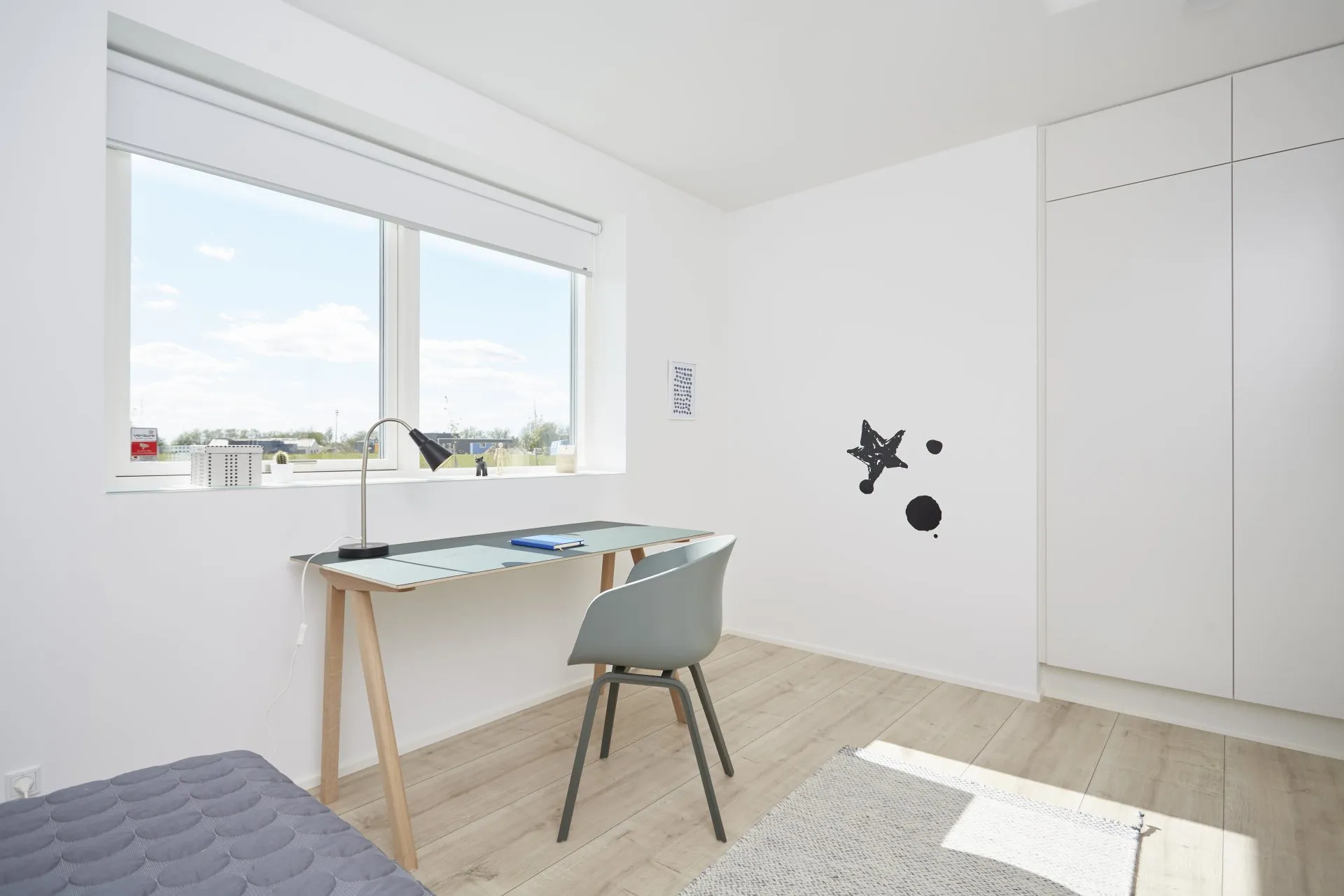 Overdækket terrasse, indbyggede skabe, påklædningsgang og flad carport.