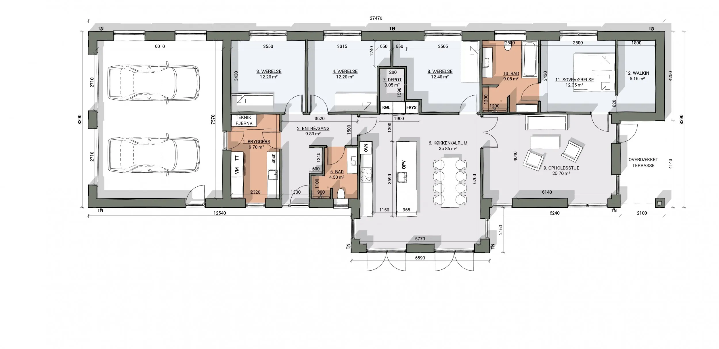 Mursten: Silver Grey. Klinker: Raw Urban Grey60*60. Gulv: Hybel 02 og 100-2.