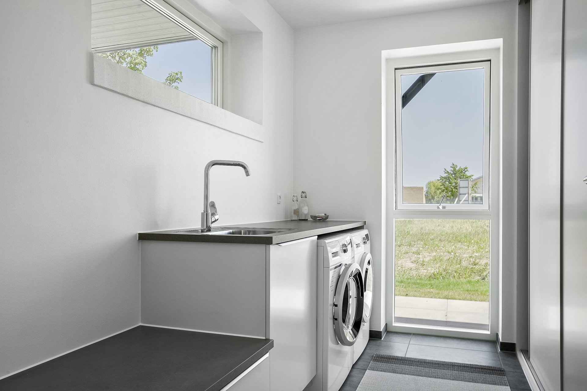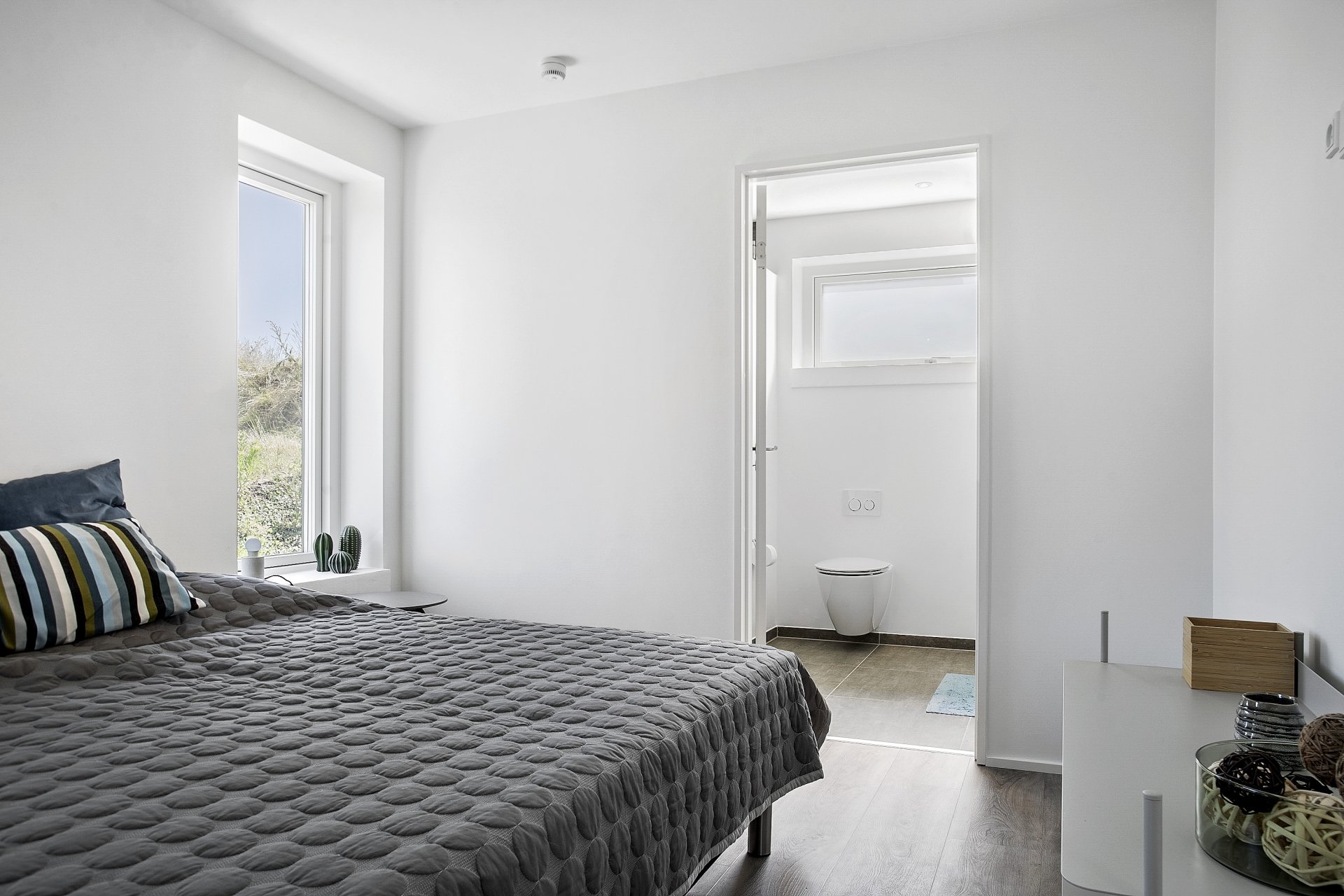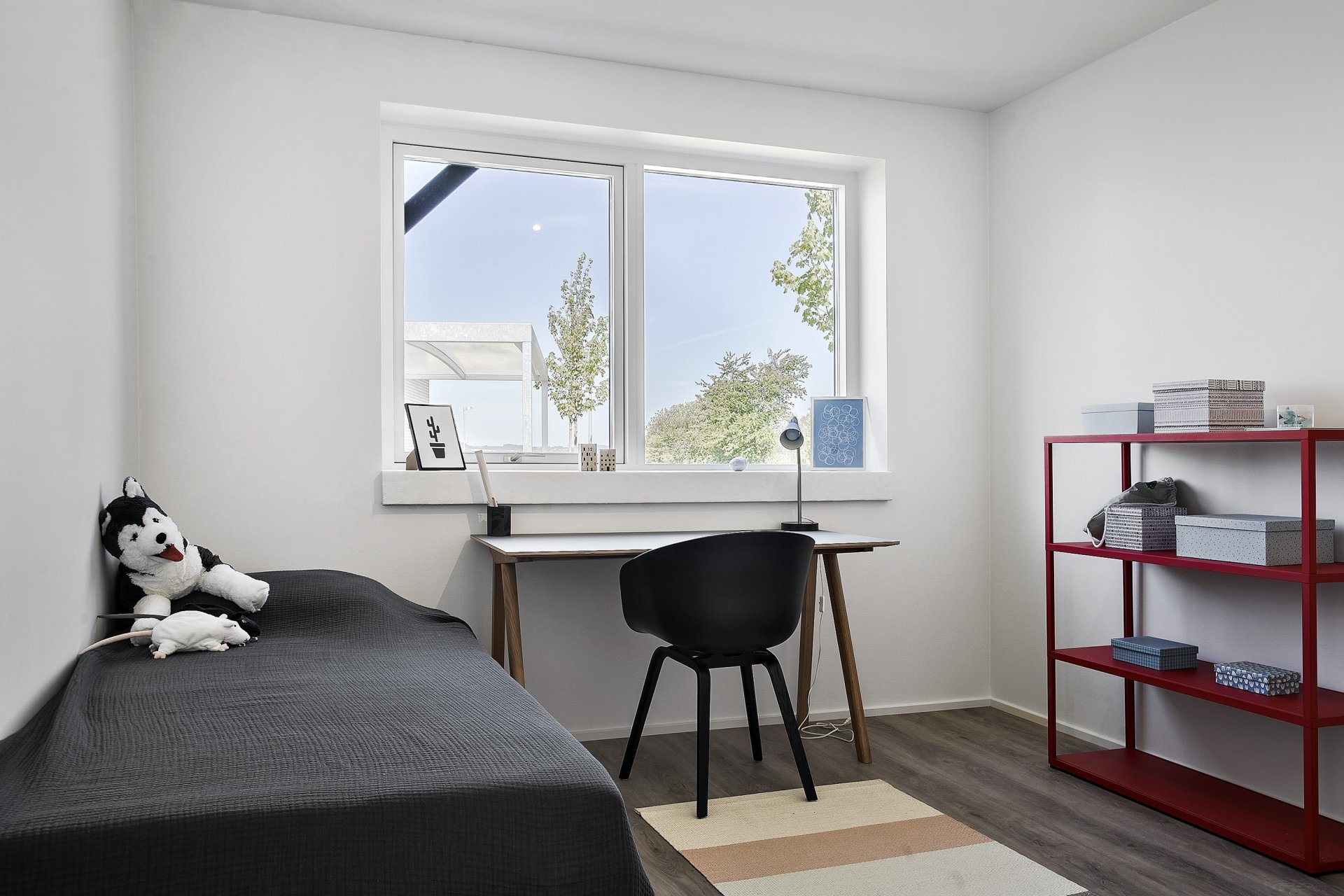 Separat forældre- og børneafdeling, gulv til loft vinduer og lækker terrasse.