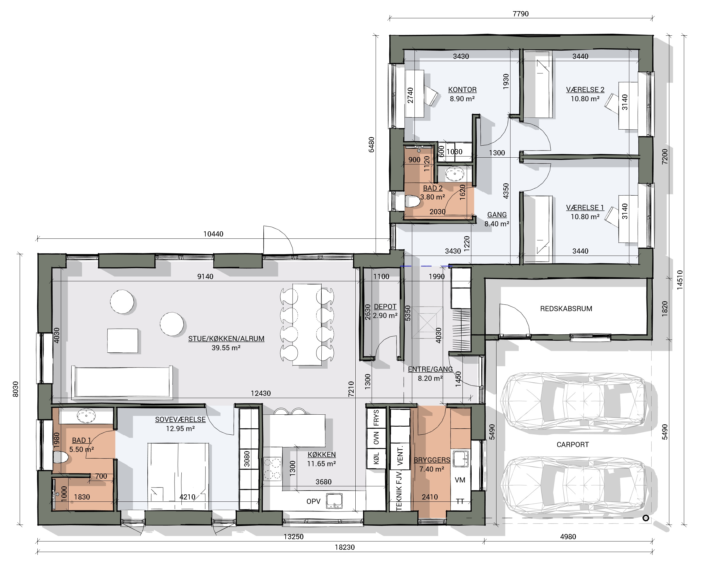 Mursten: Taurus. Klinker: Raw Urban Grey. Gulv: Hybel 65