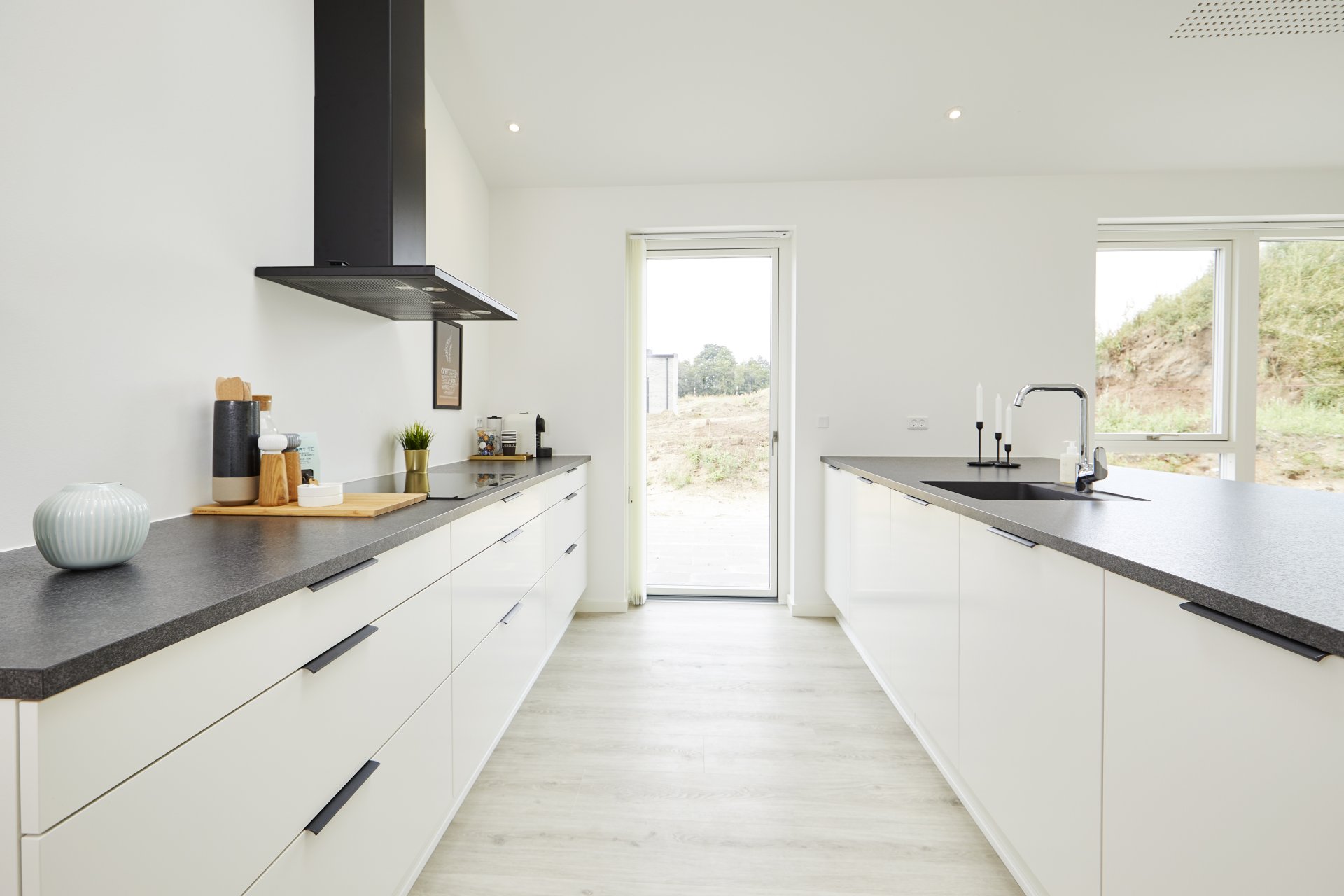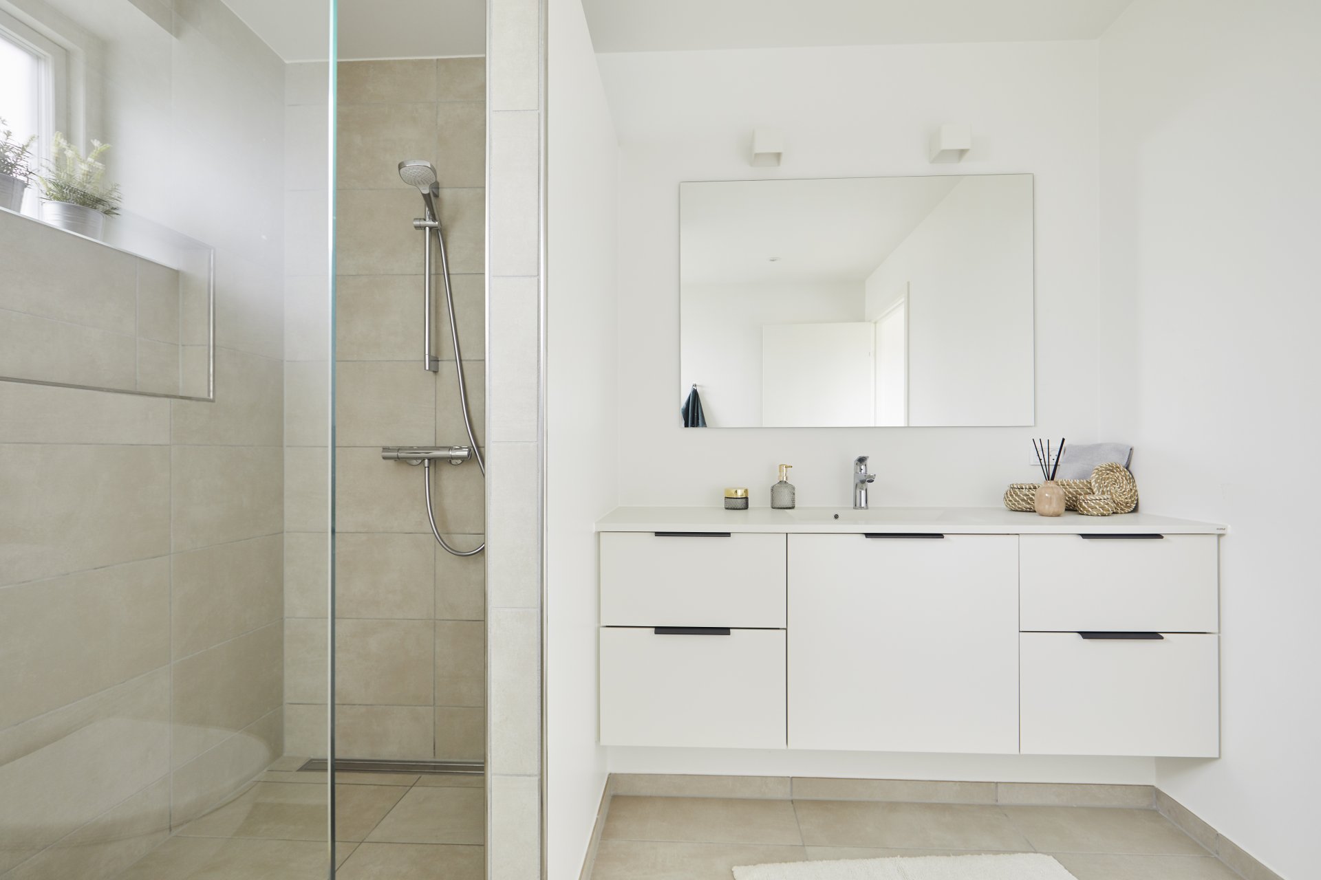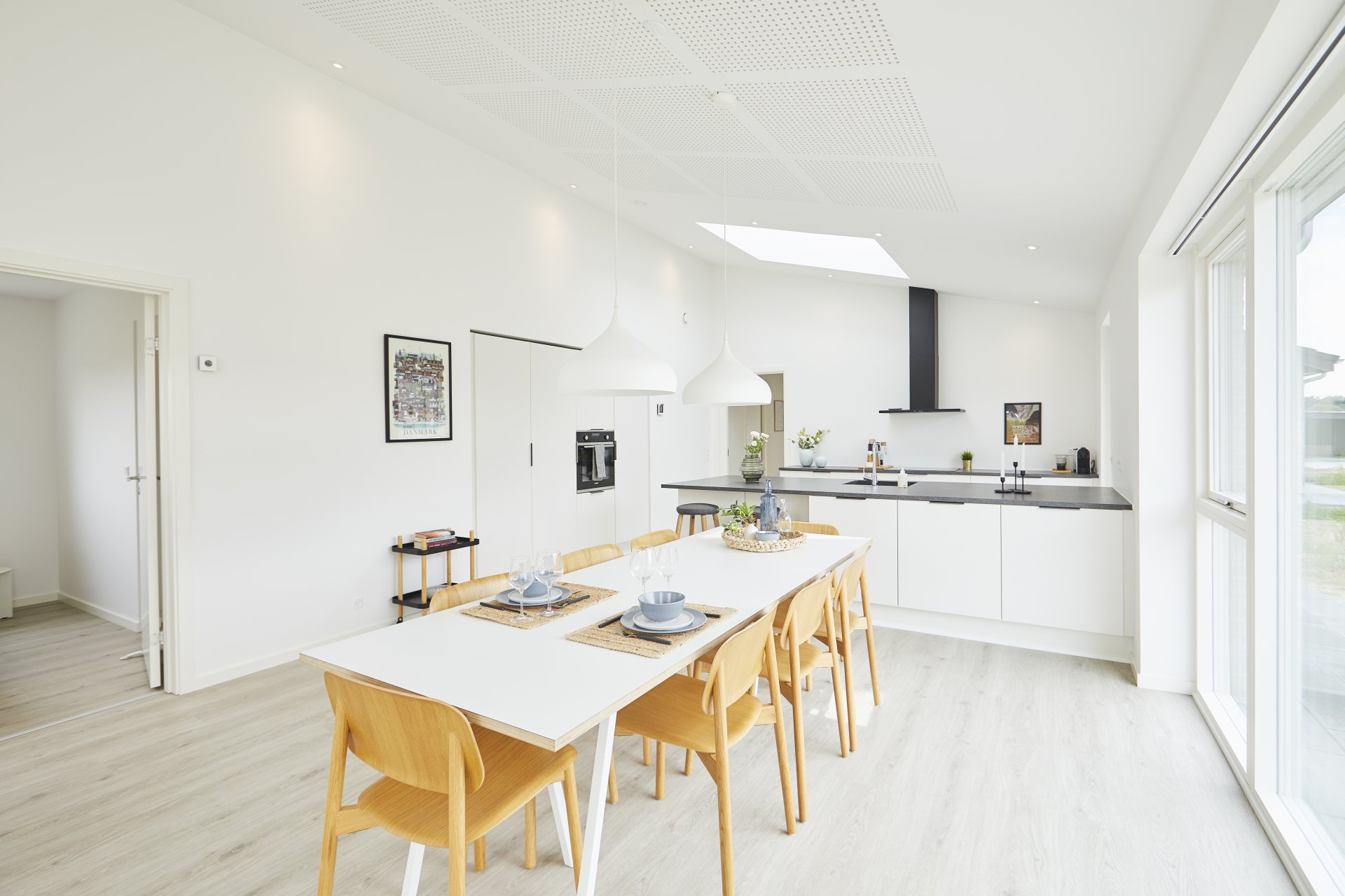 Mursten: Antibes med grå/hvis fuge. Klinke: Ragno Sound of White Gulve: Hybel 90