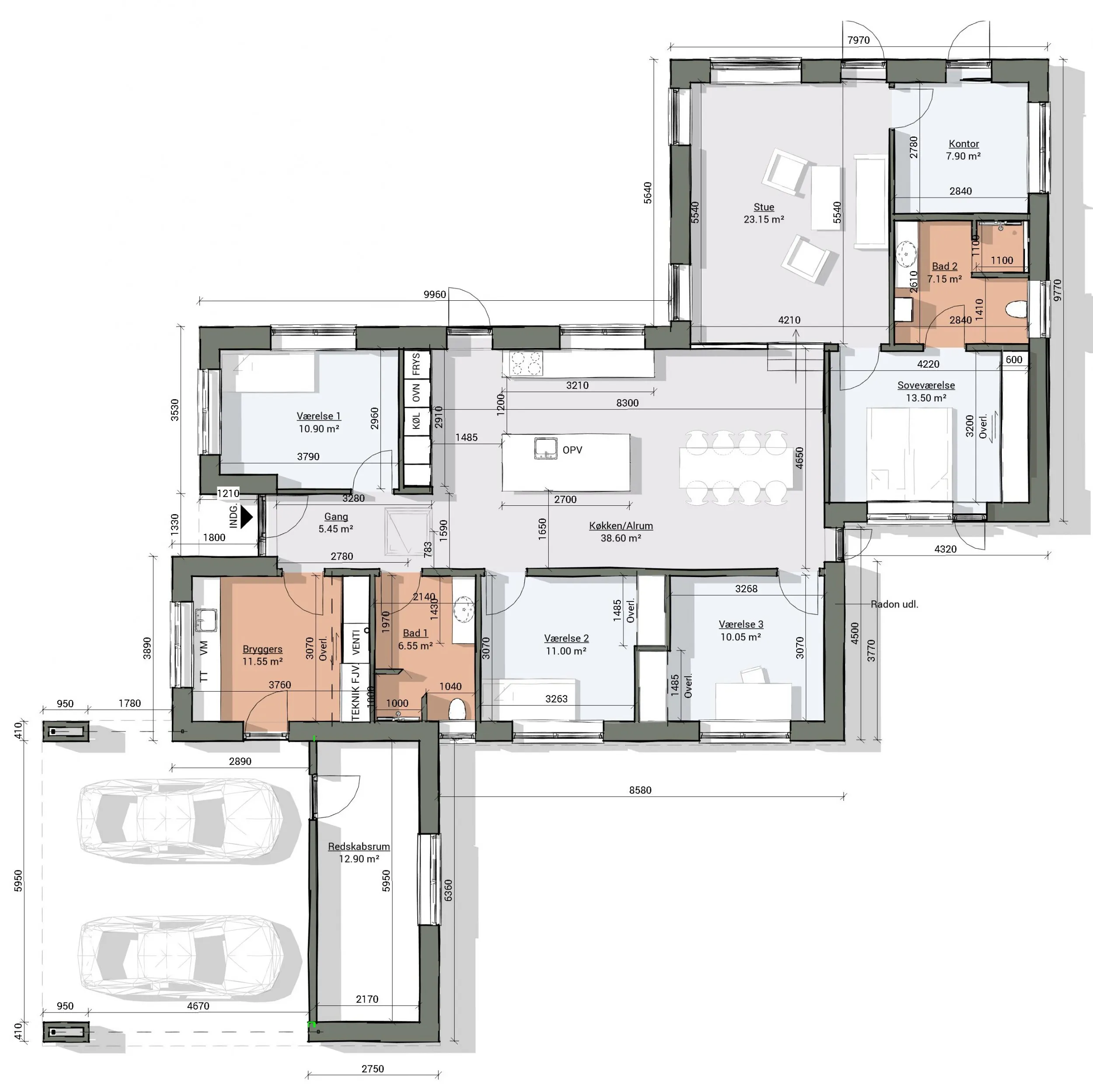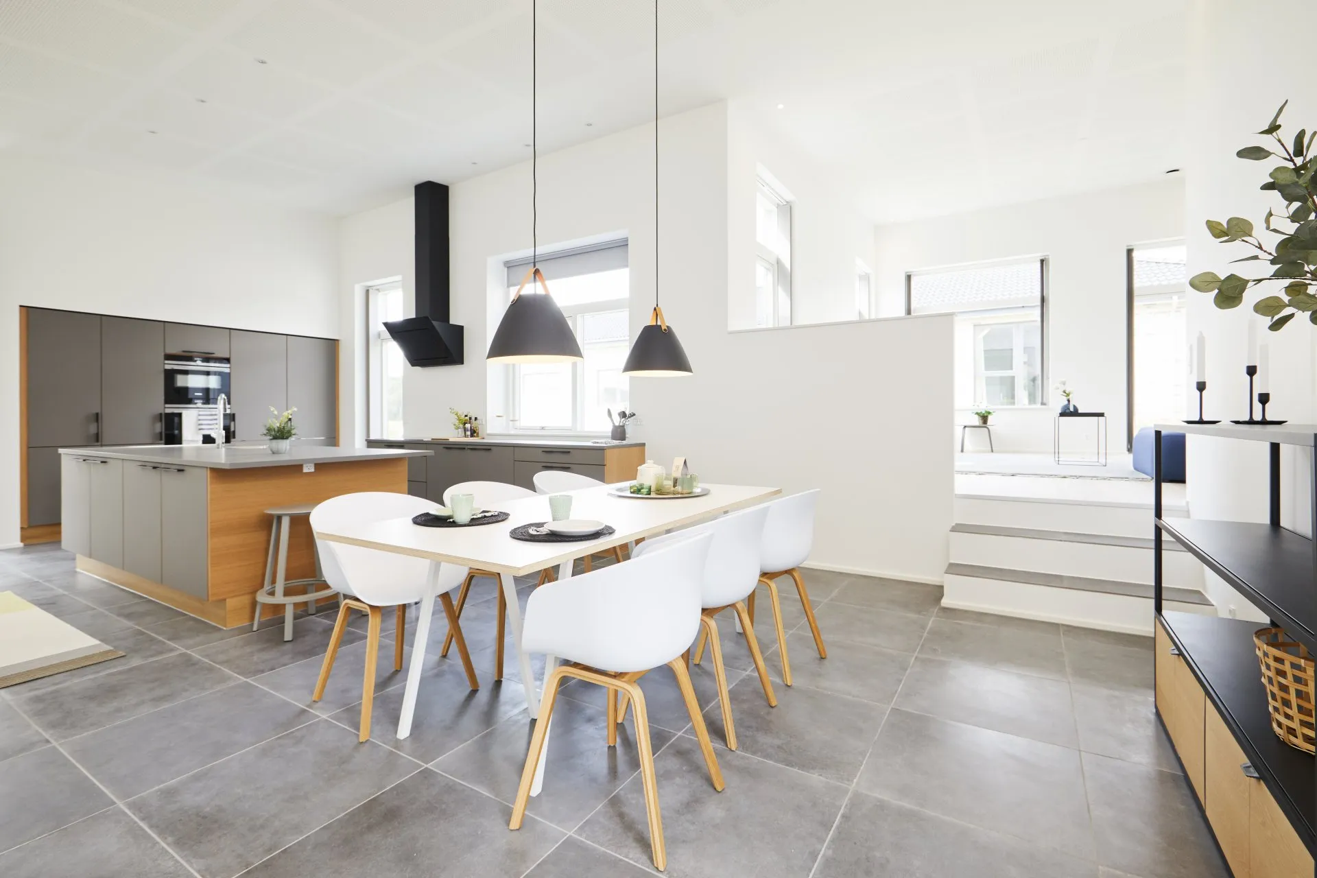 Forskudte plan, planløsning uden spildplads og ekstra højt til loftet.