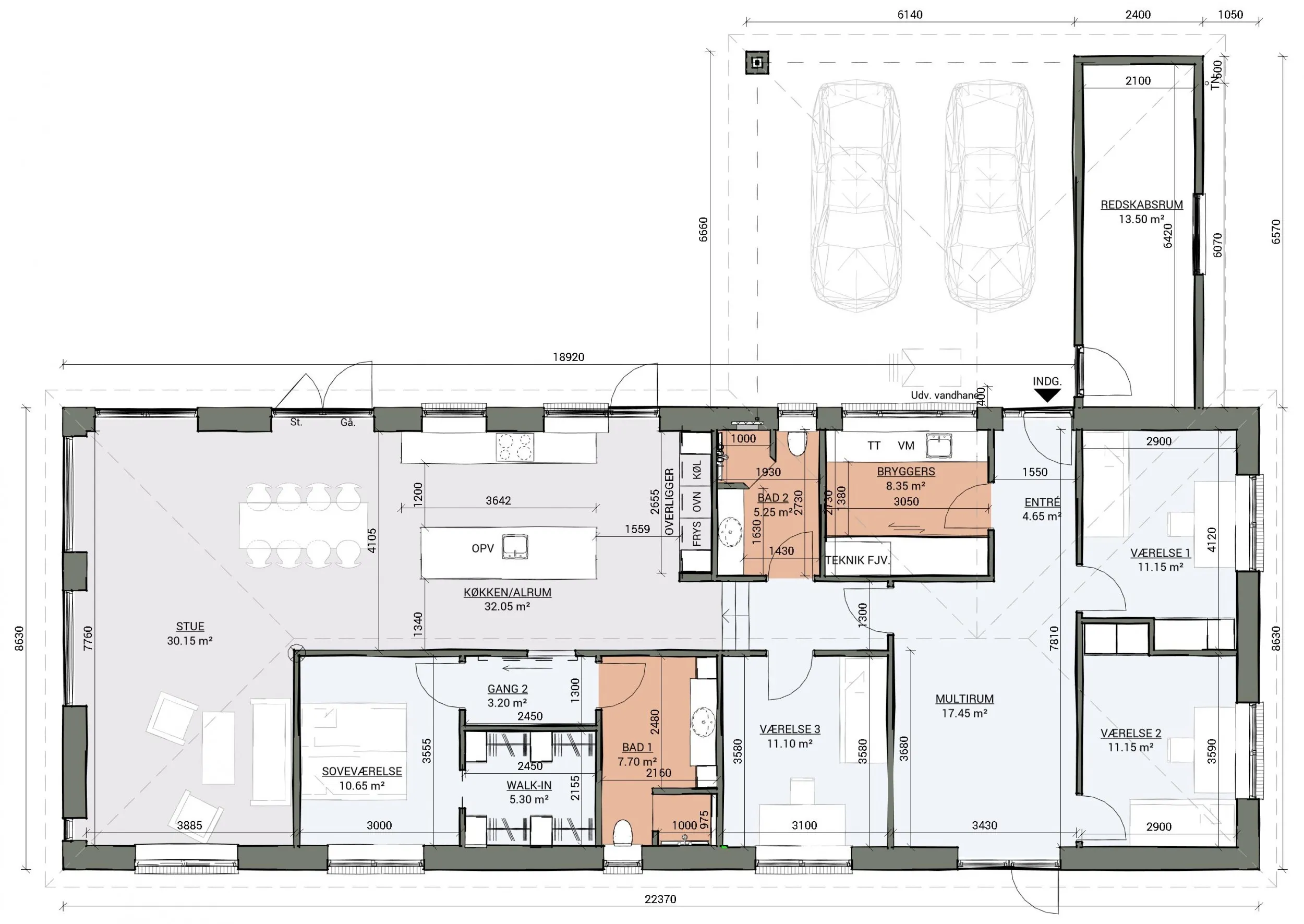 Mursten: Corona. Klinker: Raw Urban Grey Gulv: Hybel 91.