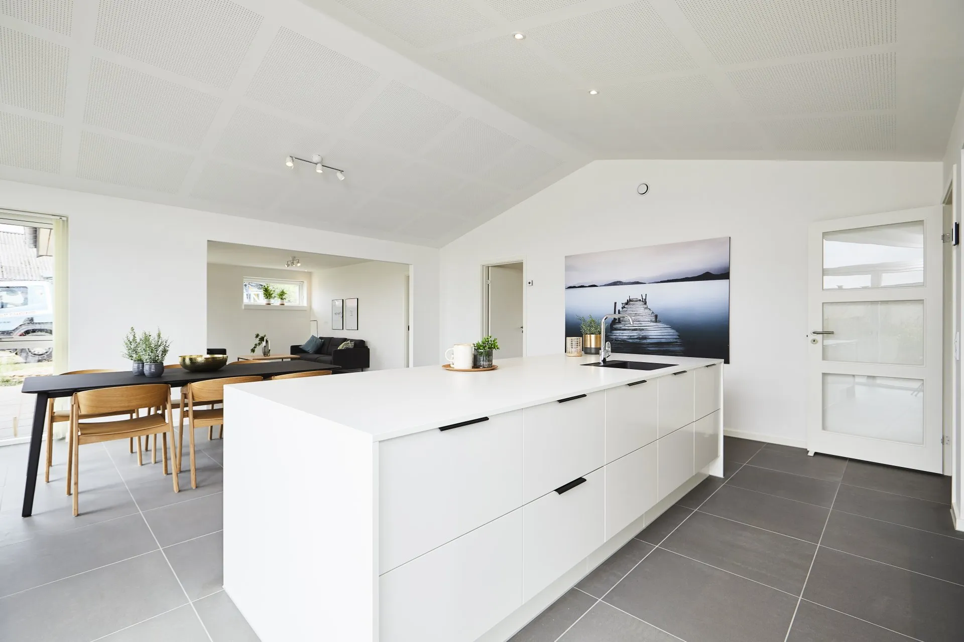 Mursten: White Bonasus. Klinker: Center Urban Grey. Gulv: Hybel 65.
