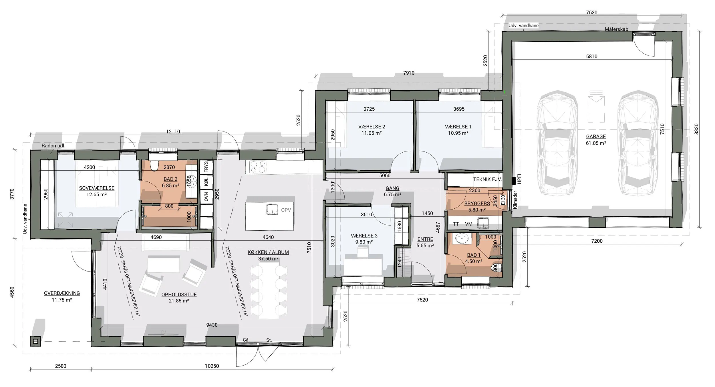 Mursten: Cassis Coal. Klinker: Raw City Grey. Gulv: Hybel 82.