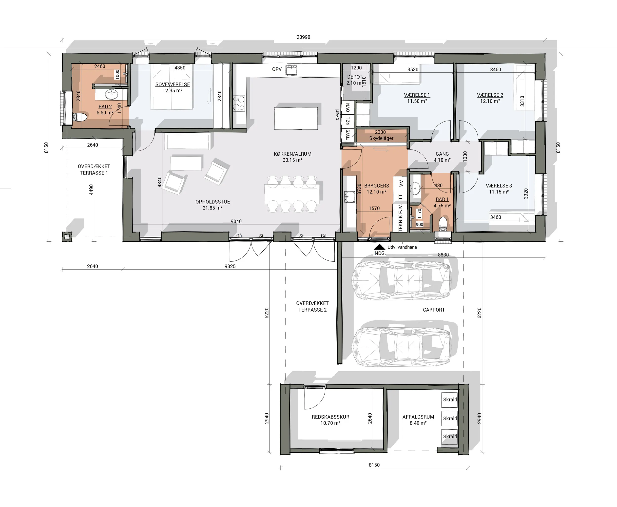 Bolig: 159 m2. Carport: 60 m2.
