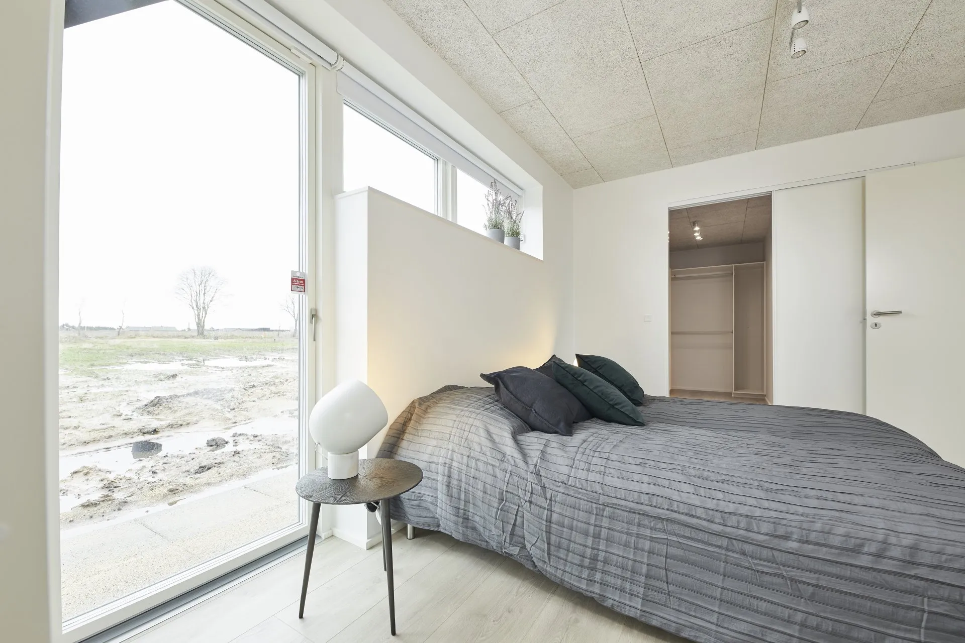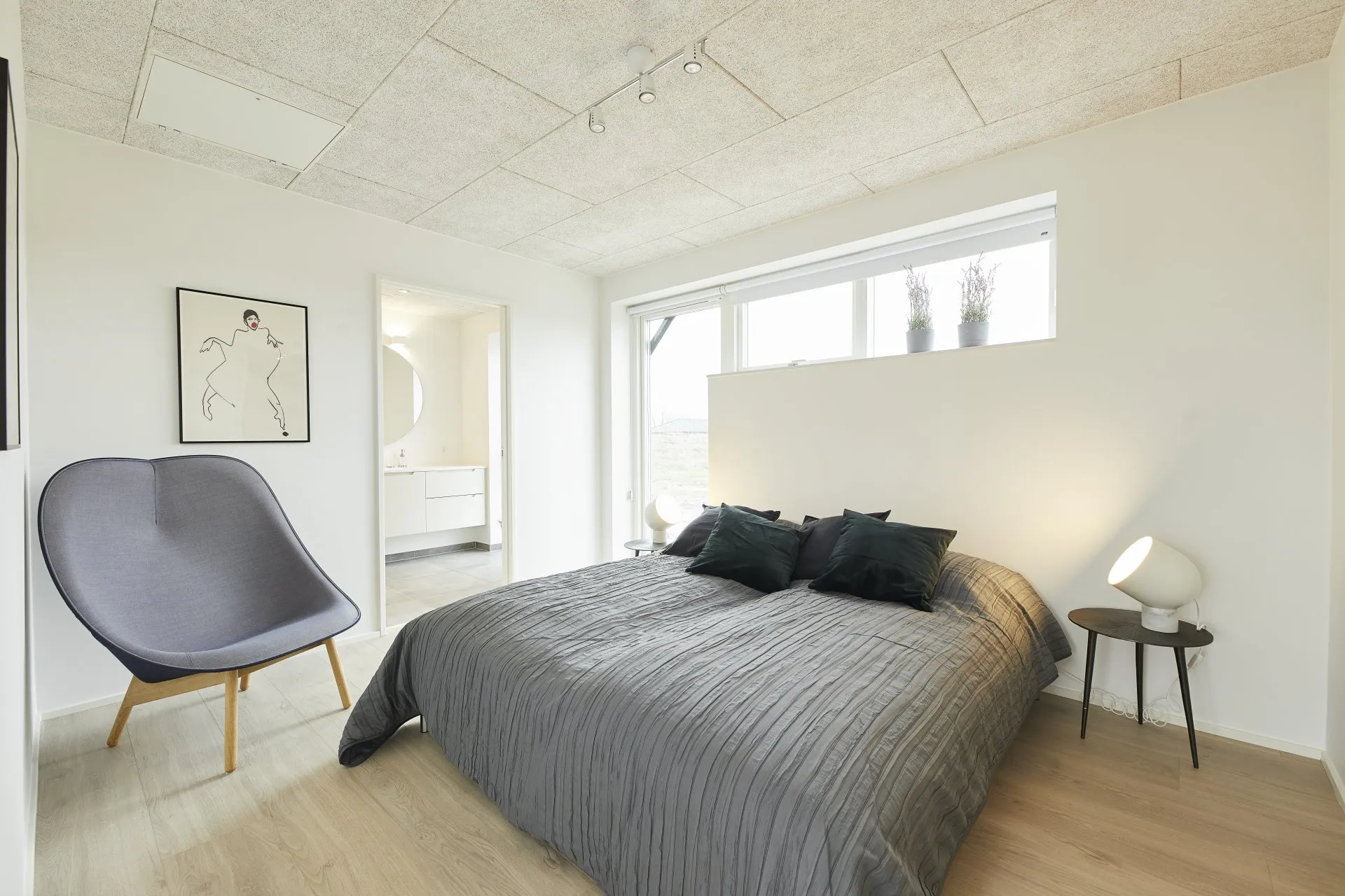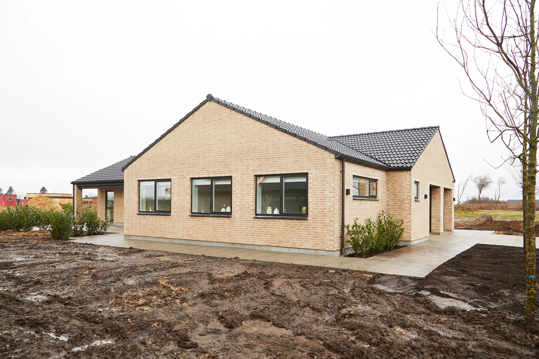 Forskudt vinkelhus med saddeltag uden udhæng.