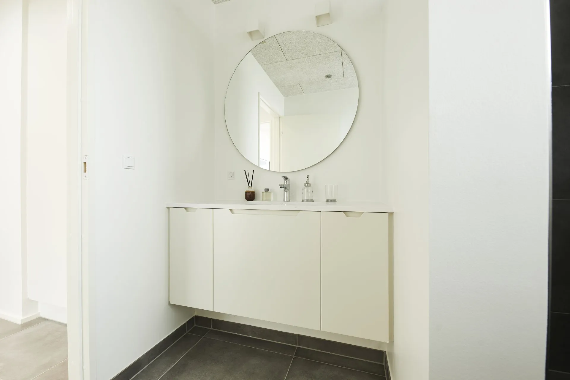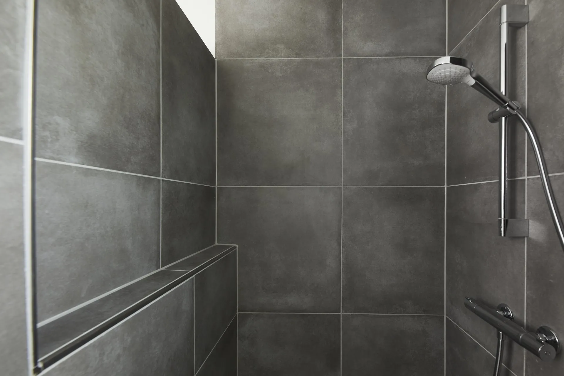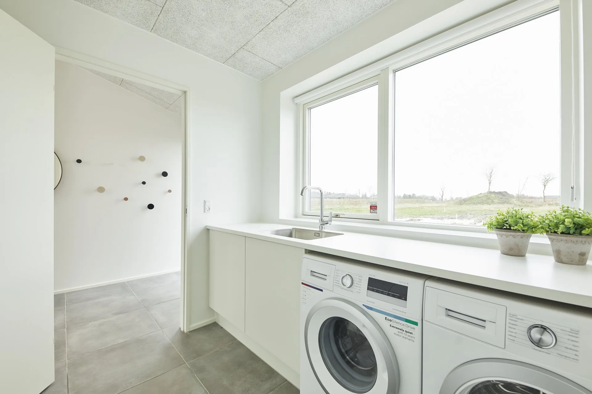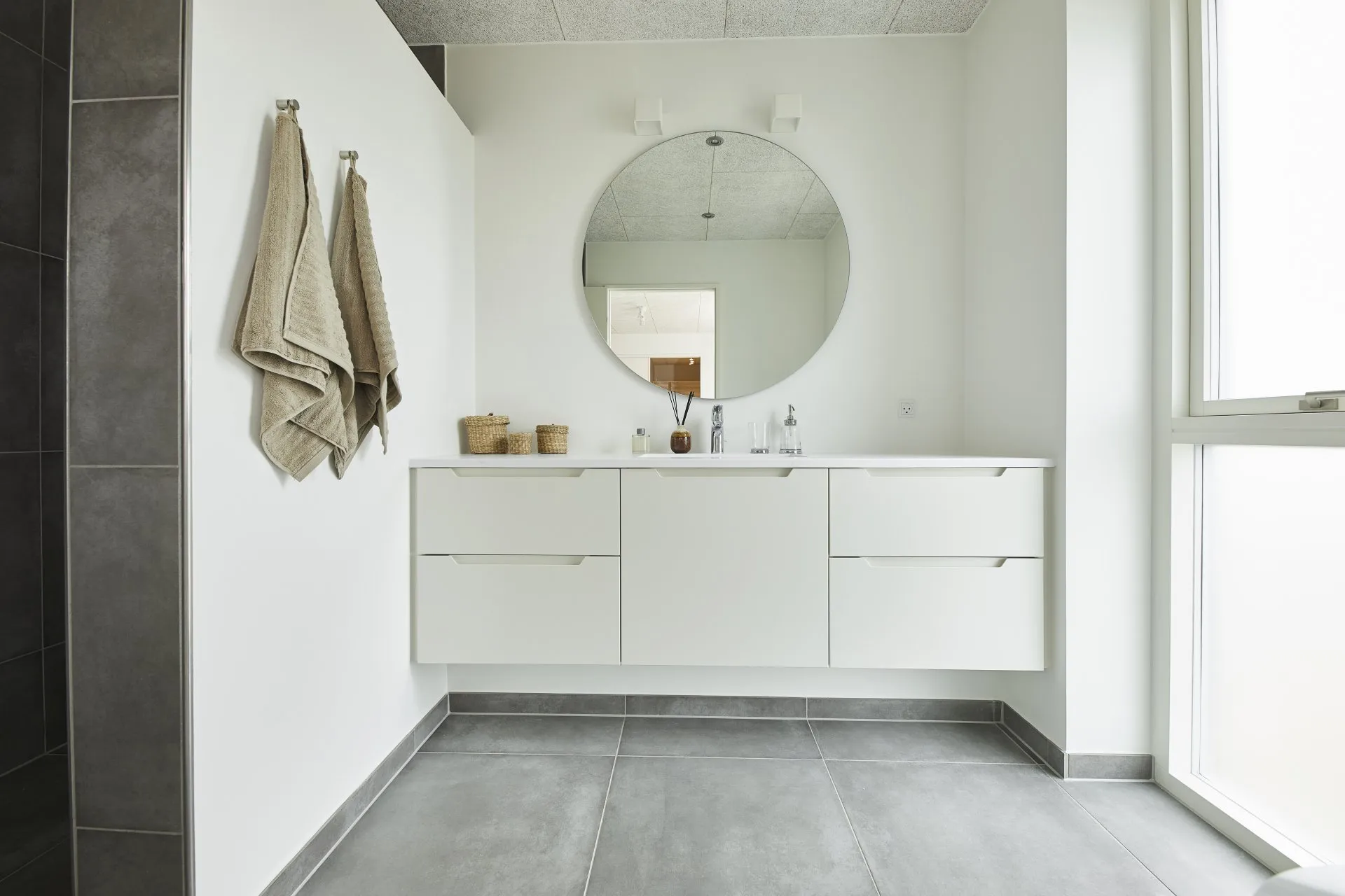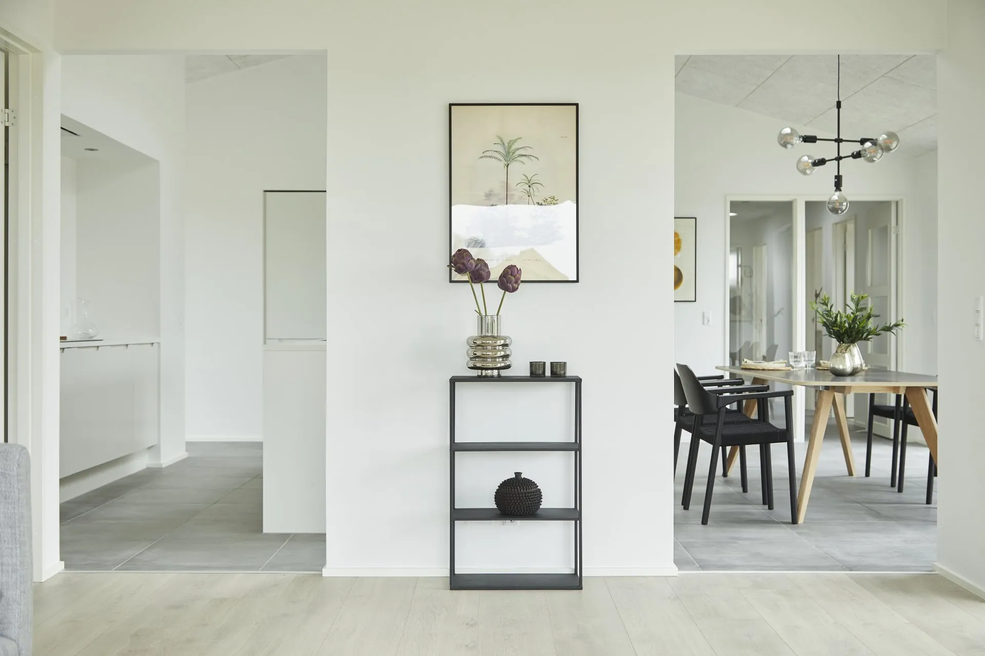 Mursten: Limoux m. grå/hvid fuge. Klinker: V&B Section Antracit. Gulv: Hybel 88.