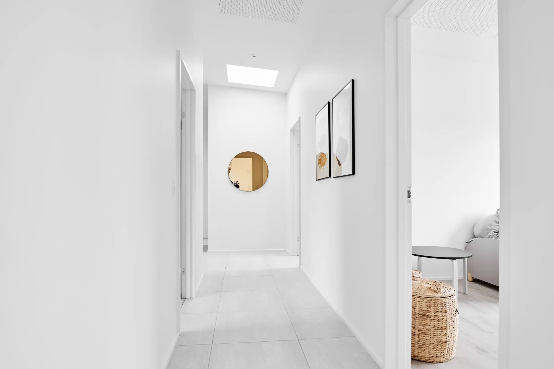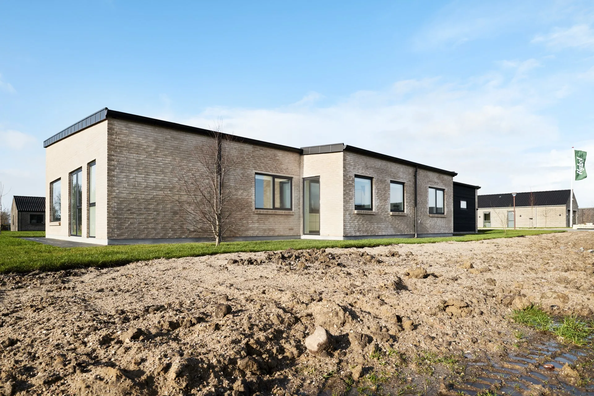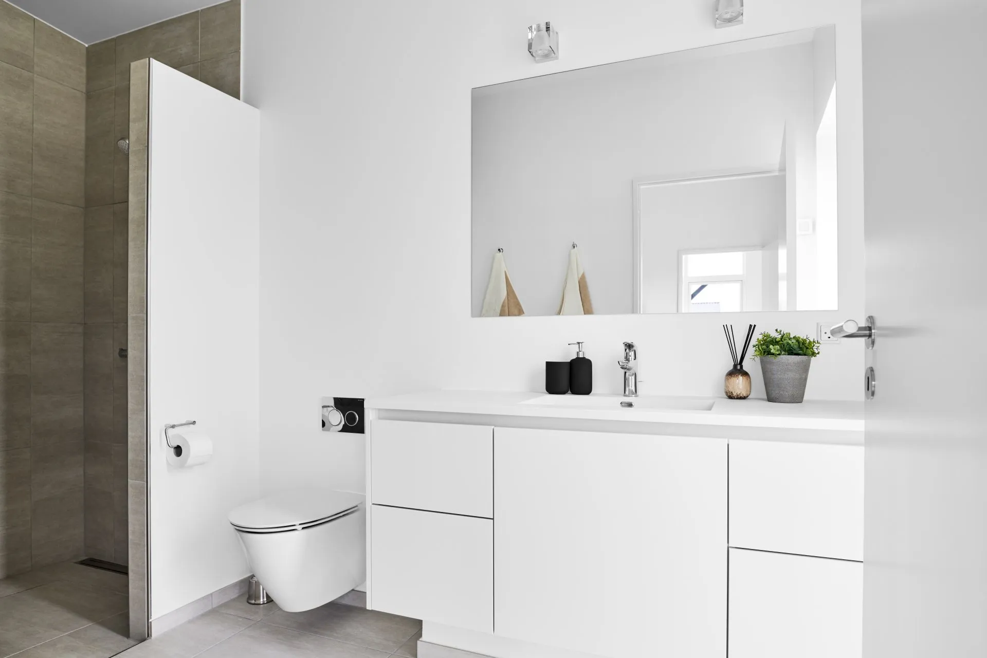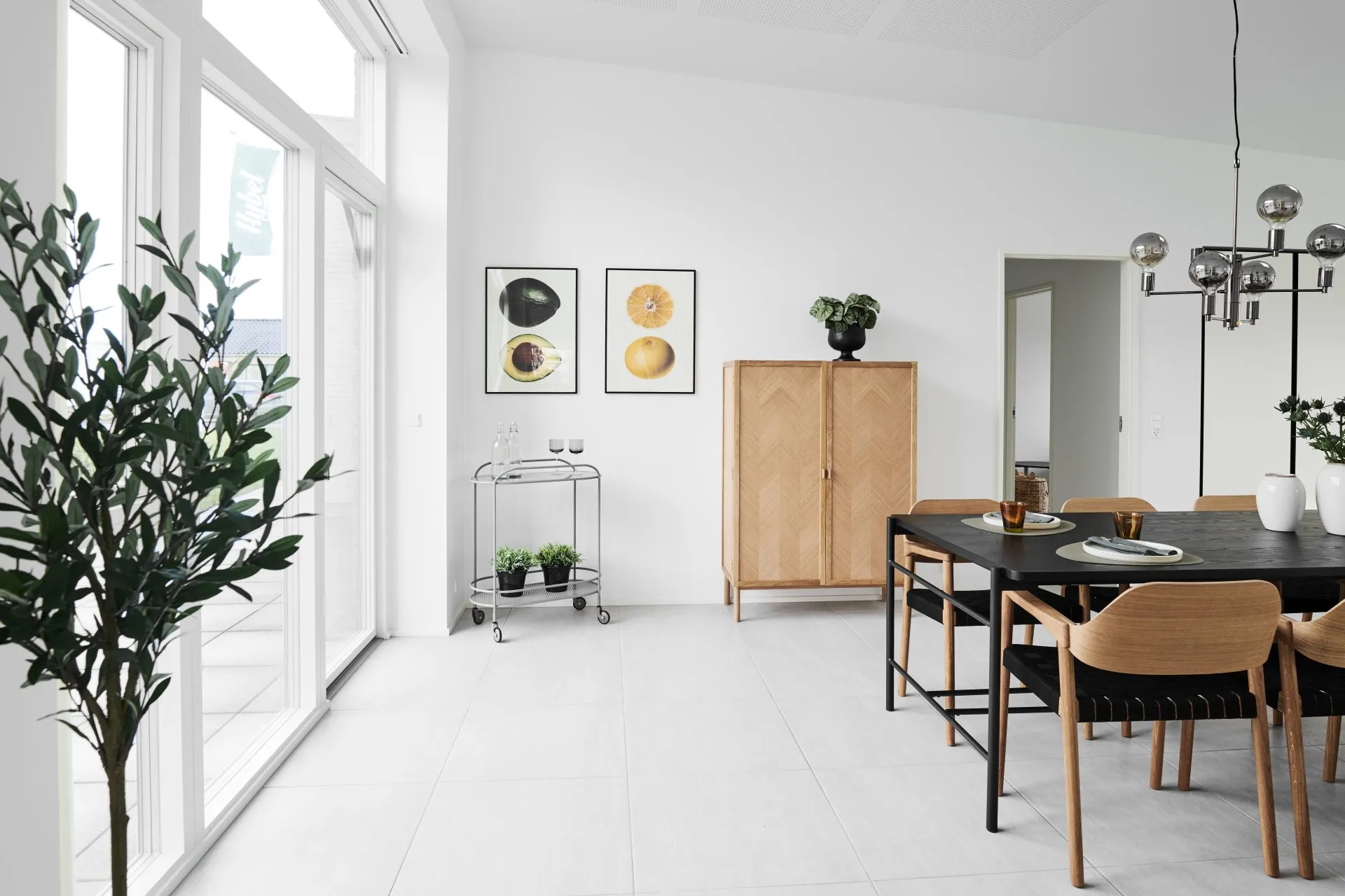 Mursten: Cassis med grå/hvid fuge. Klinke: Raw Urban White. Gulv: Hybel 90.