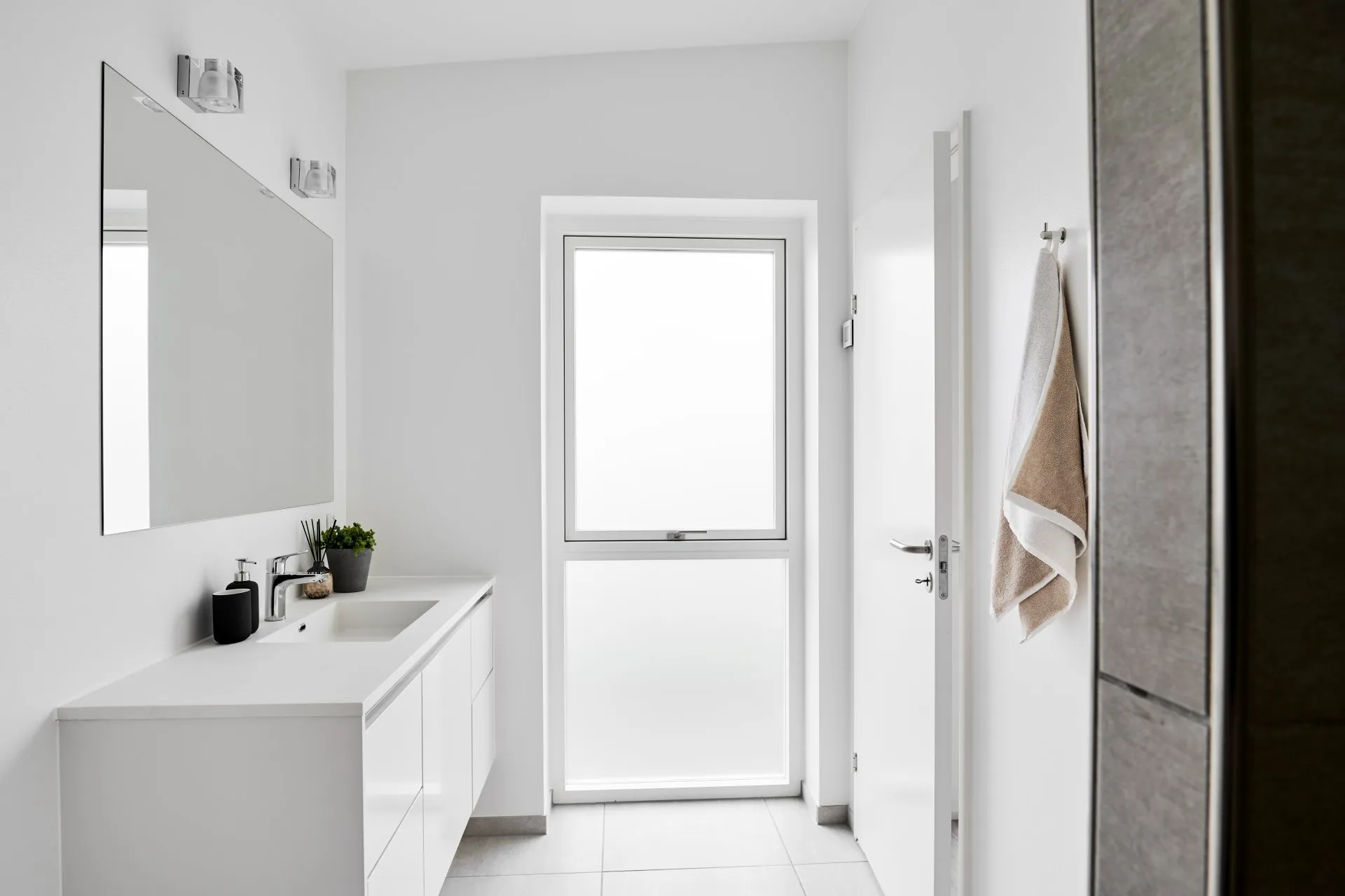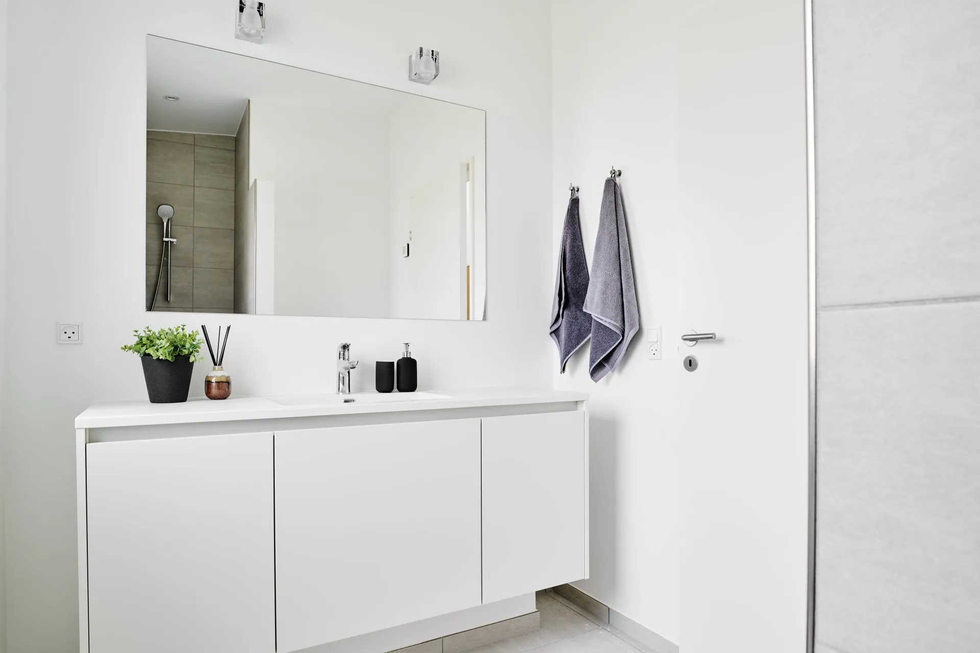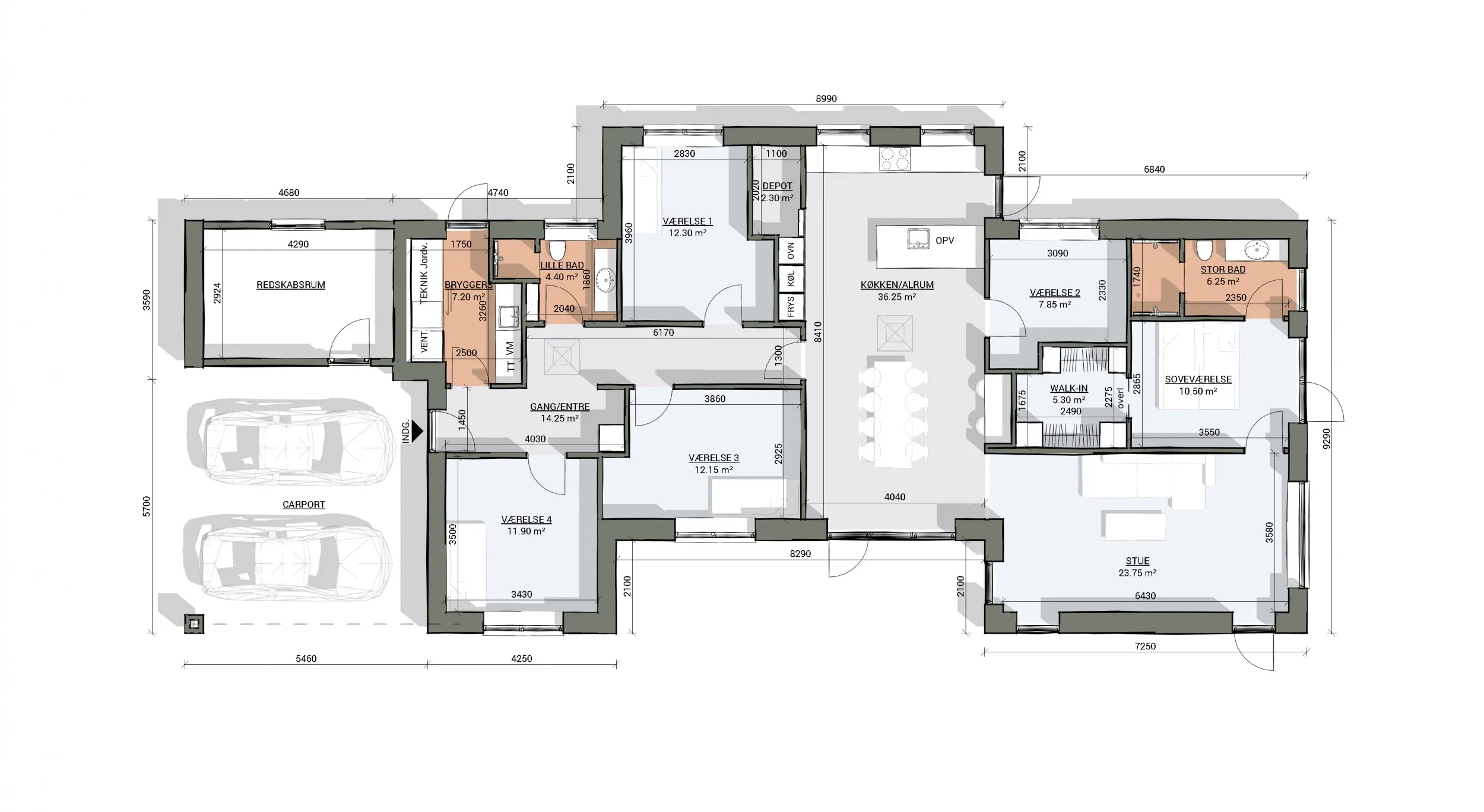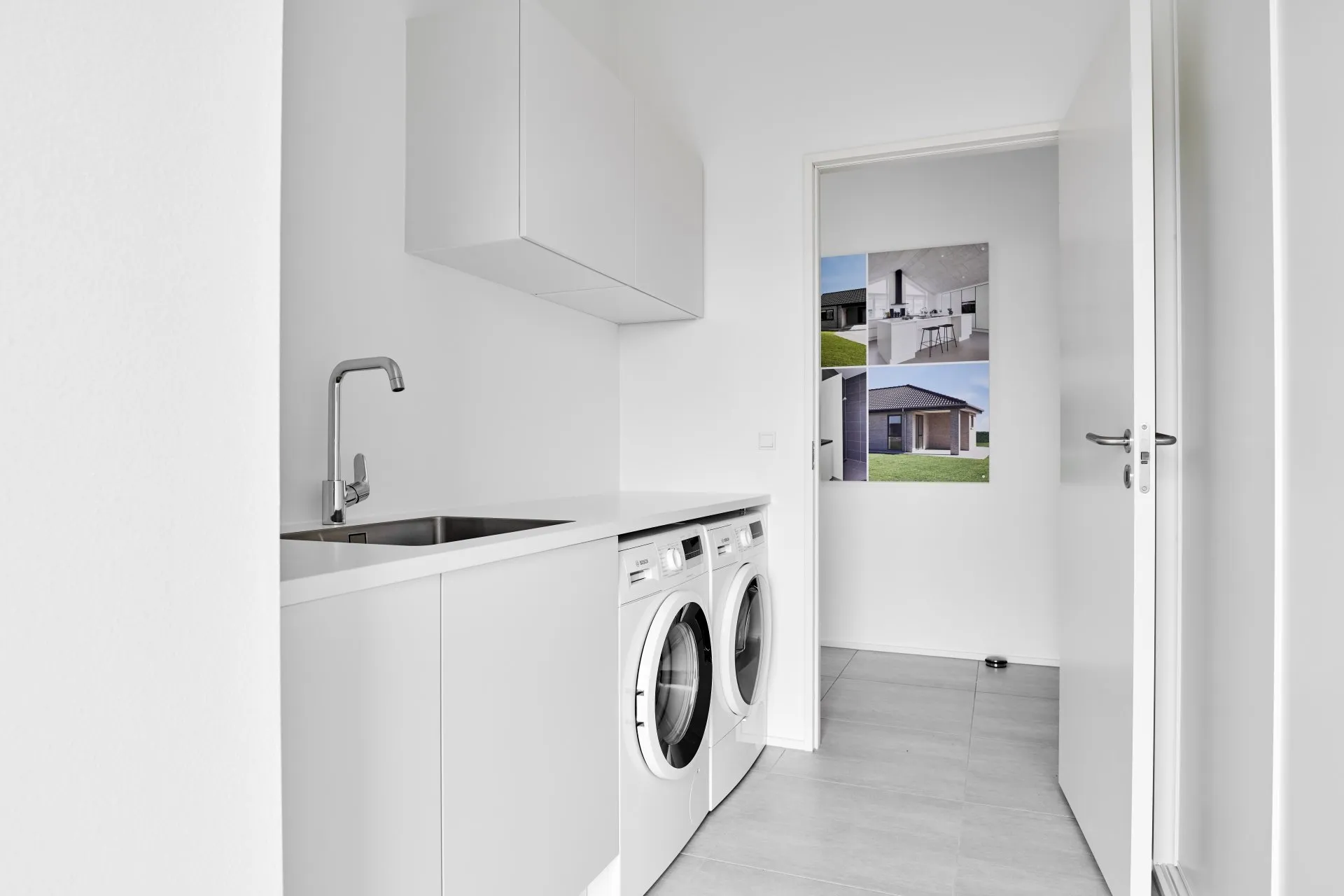Mursten: Cassis med grå/hvid fuge. Klinke: Raw Urban White. Gulv: Hybel 90.