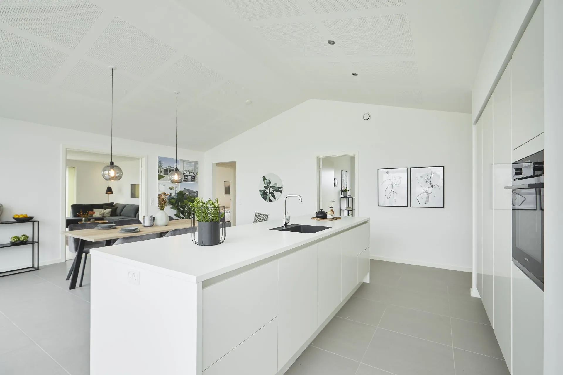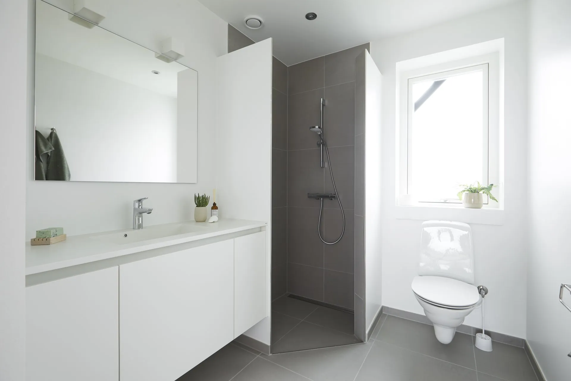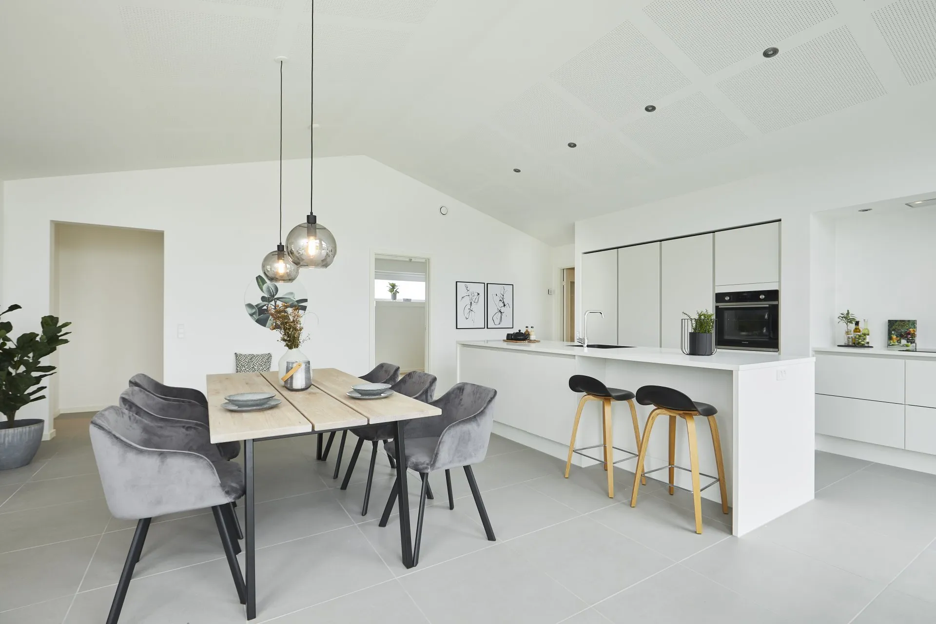 Dobbeltsidet skråloft i køkken/alrum og ekstra stort forældrebad.