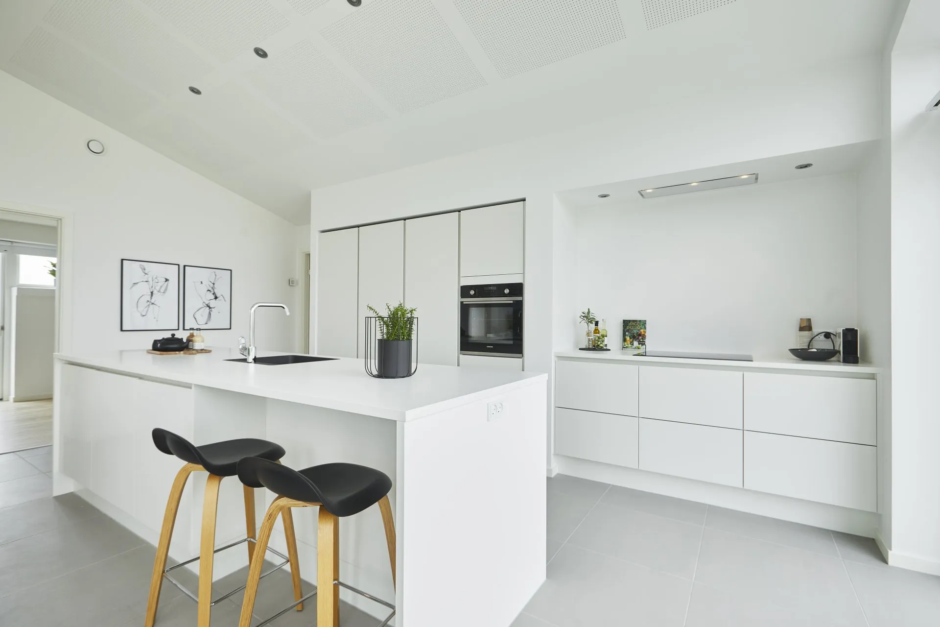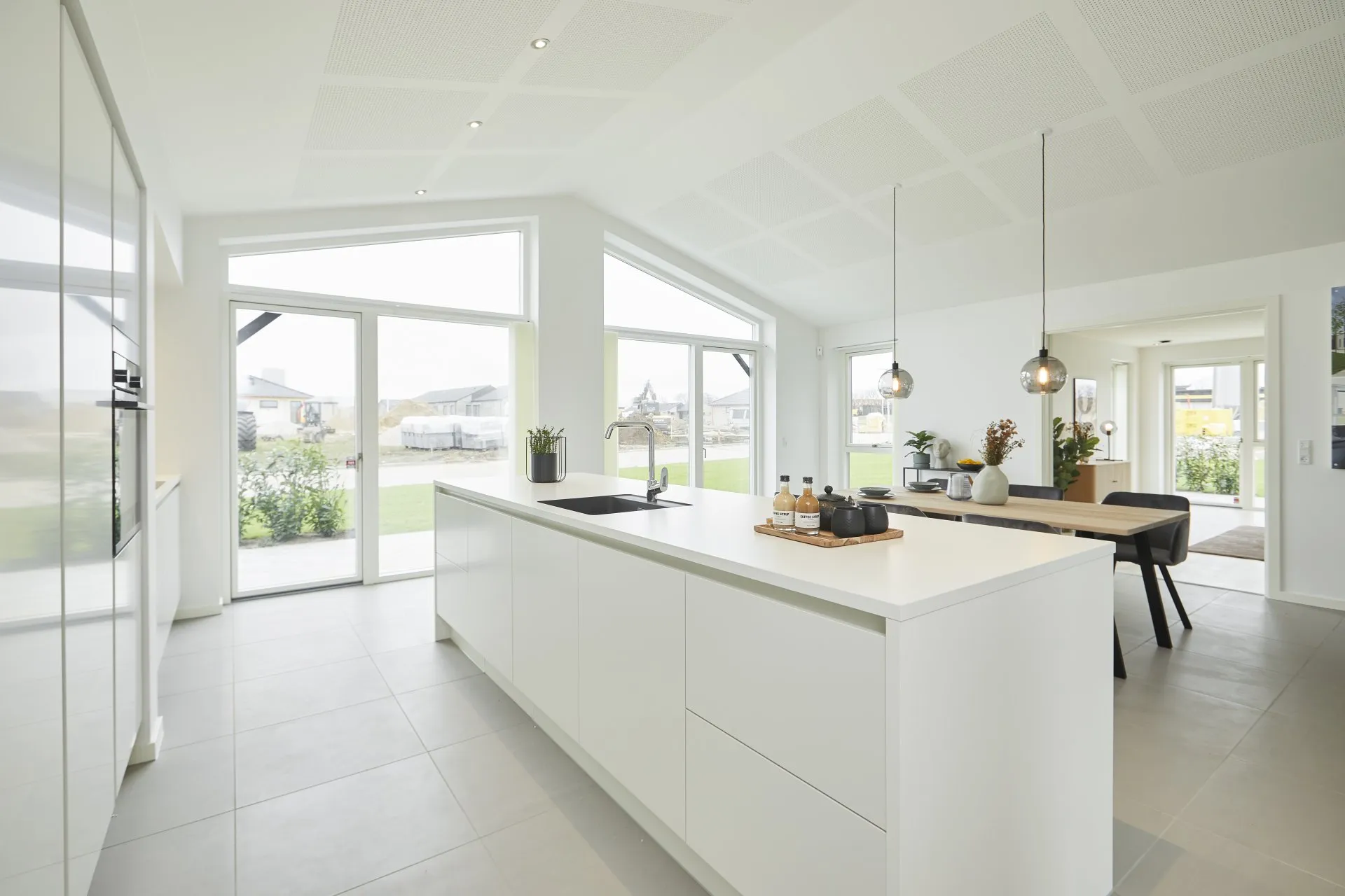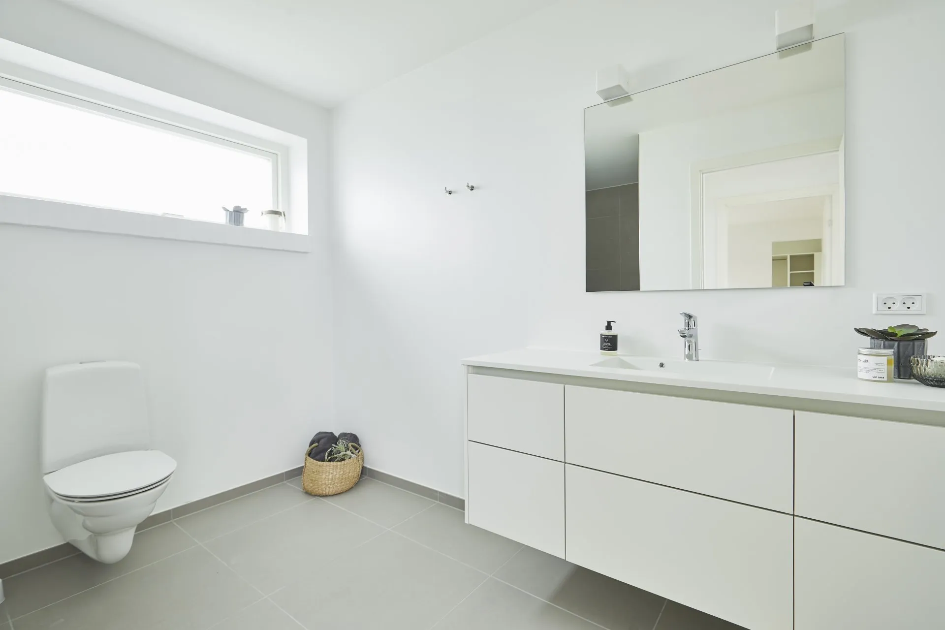 Dobbeltsidet skråloft i køkken/alrum og ekstra stort forældrebad.