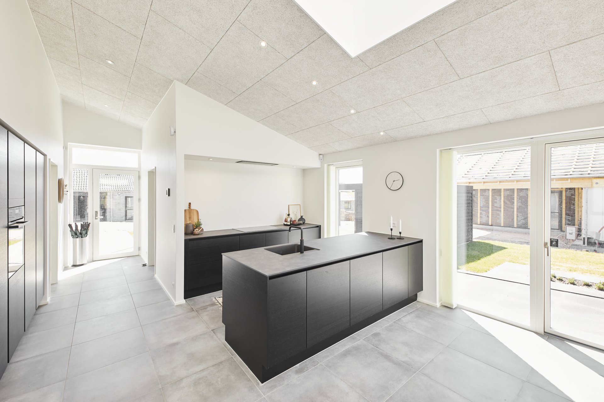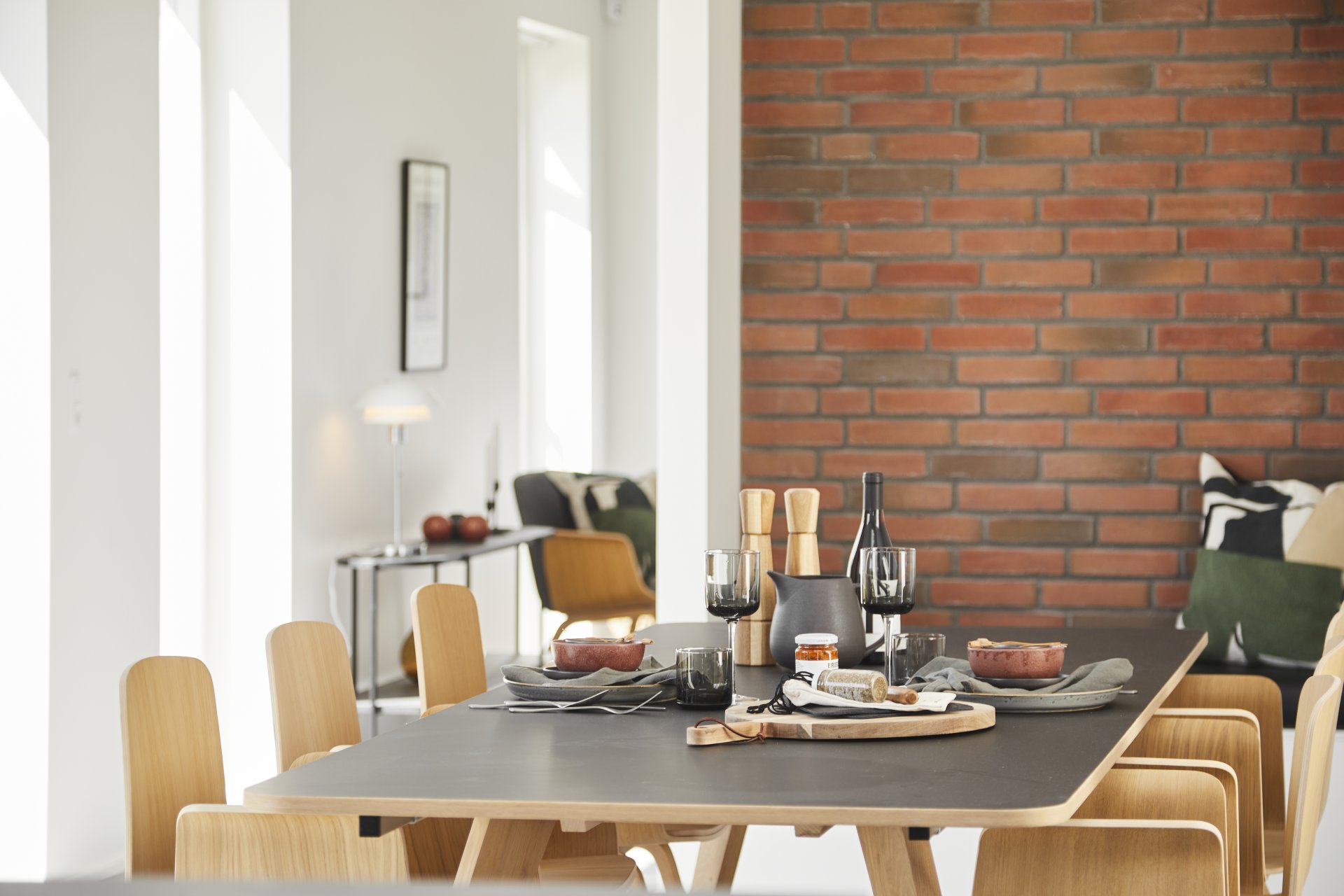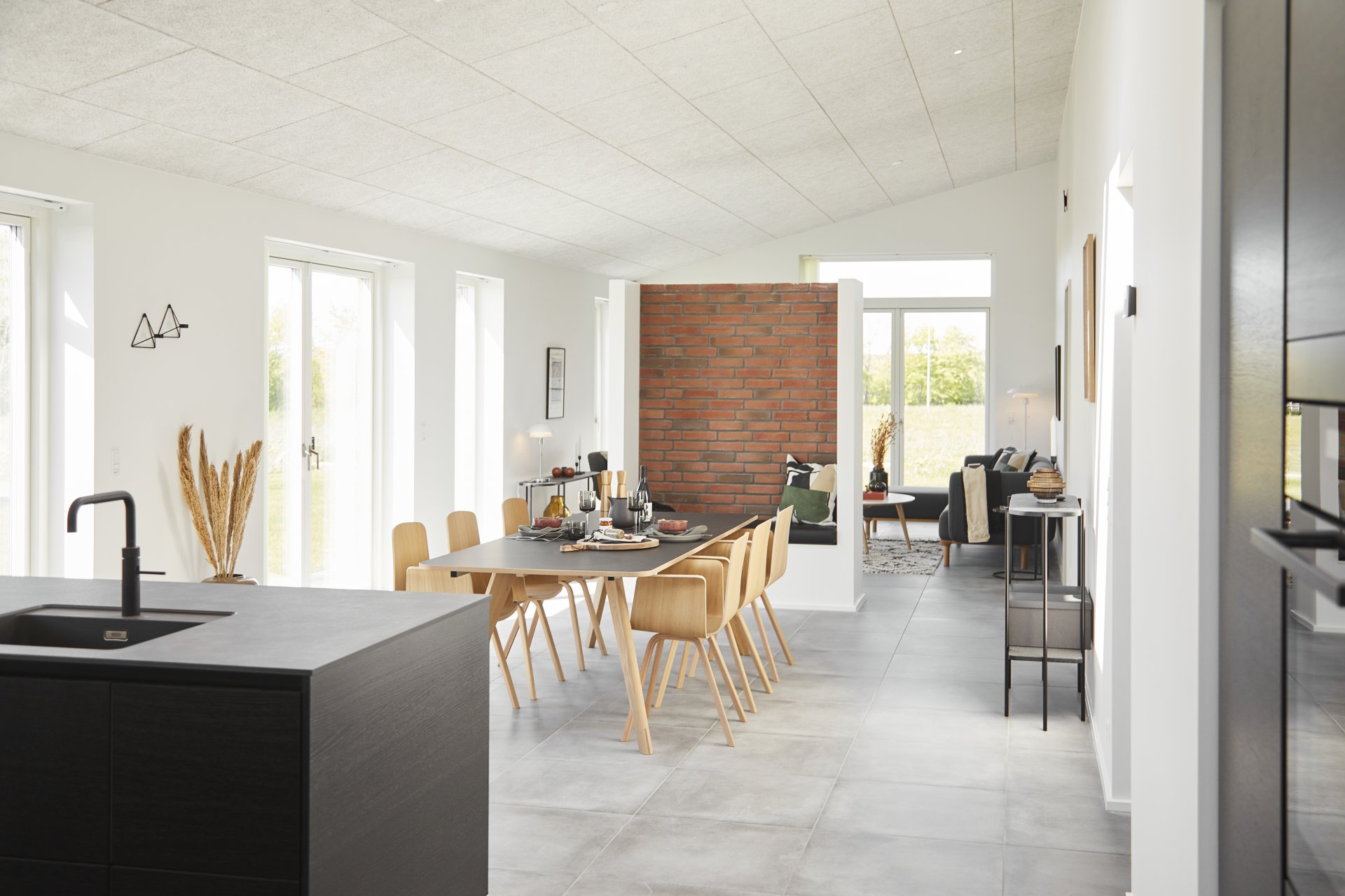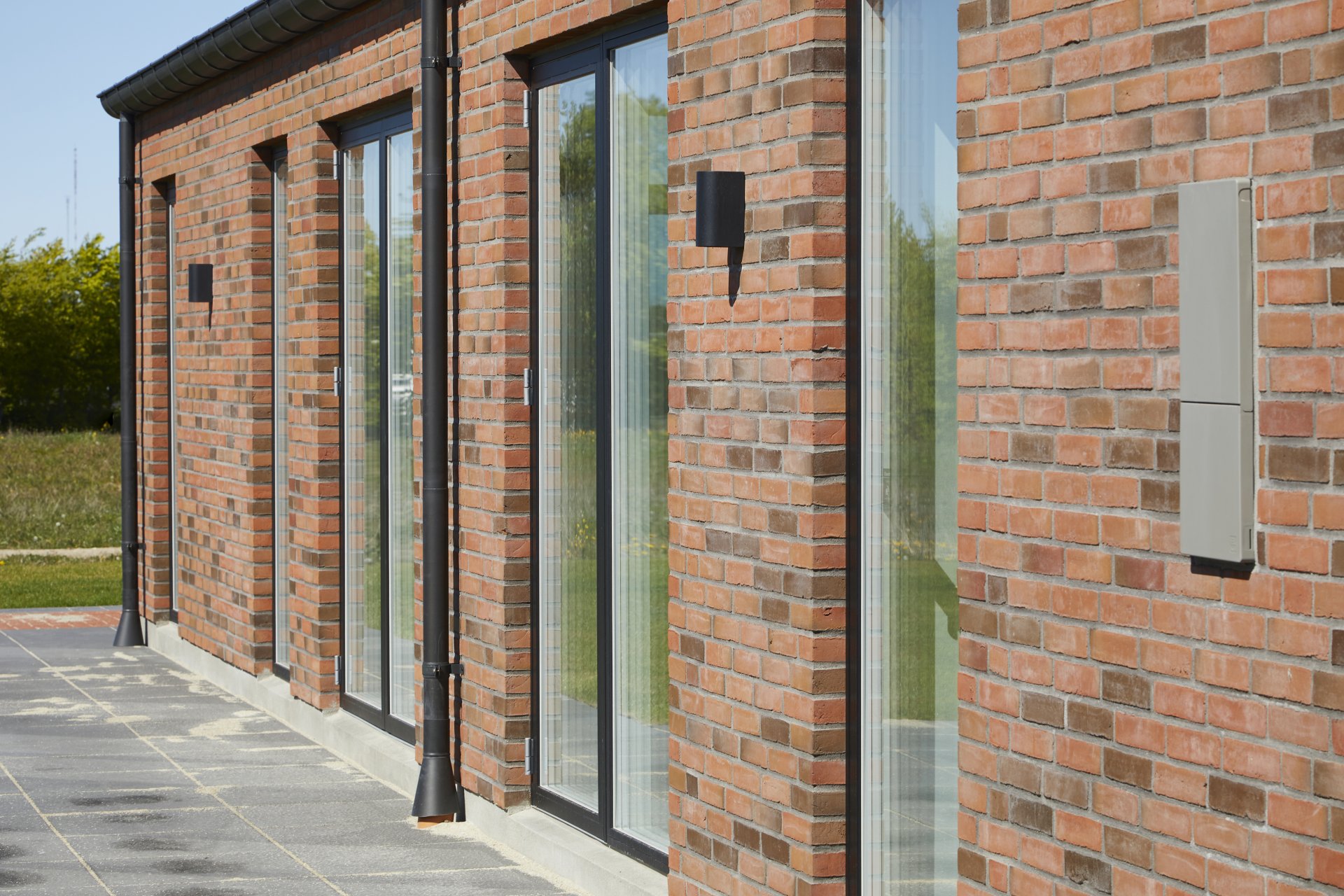 Mursten: Kingwood med antracit fuge. Klinker: Section Antracit. Gulv: Planke 42.