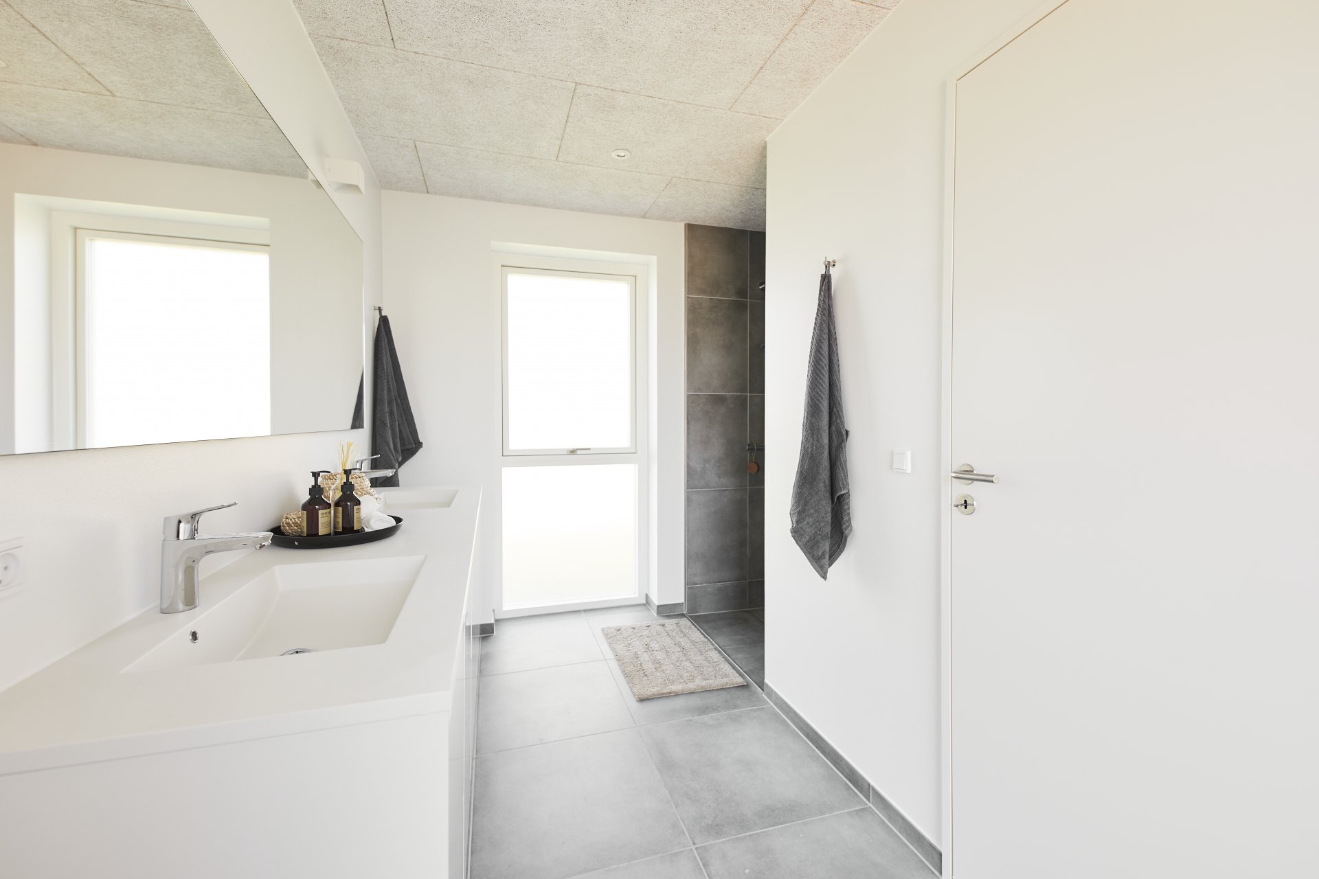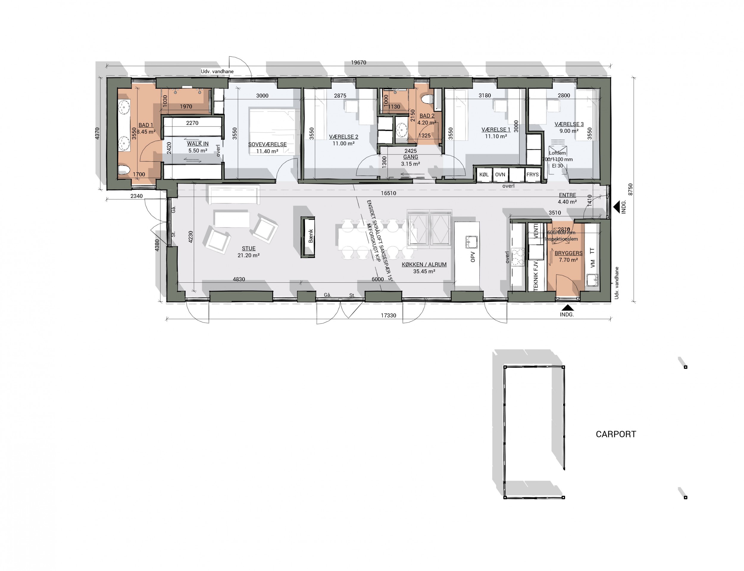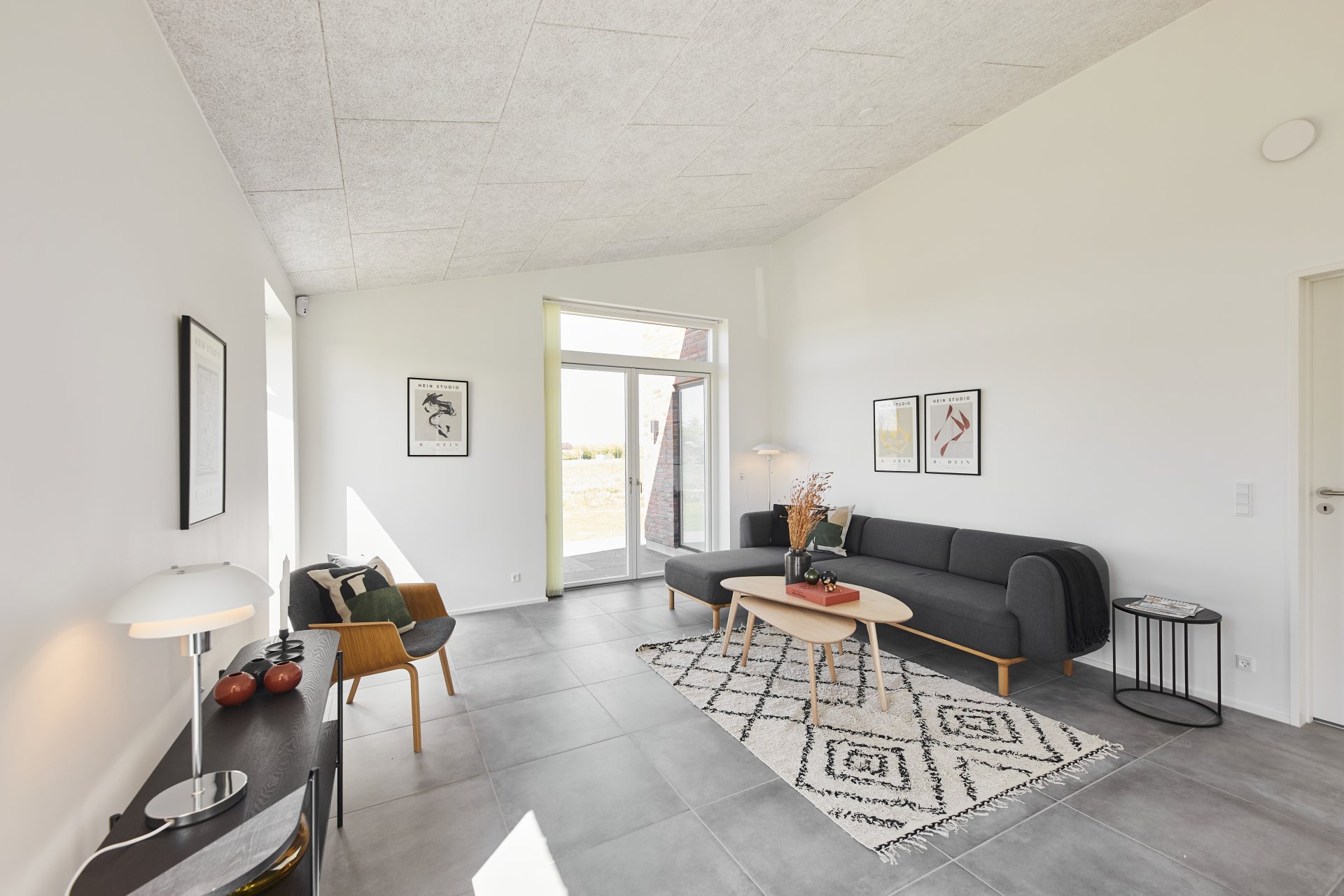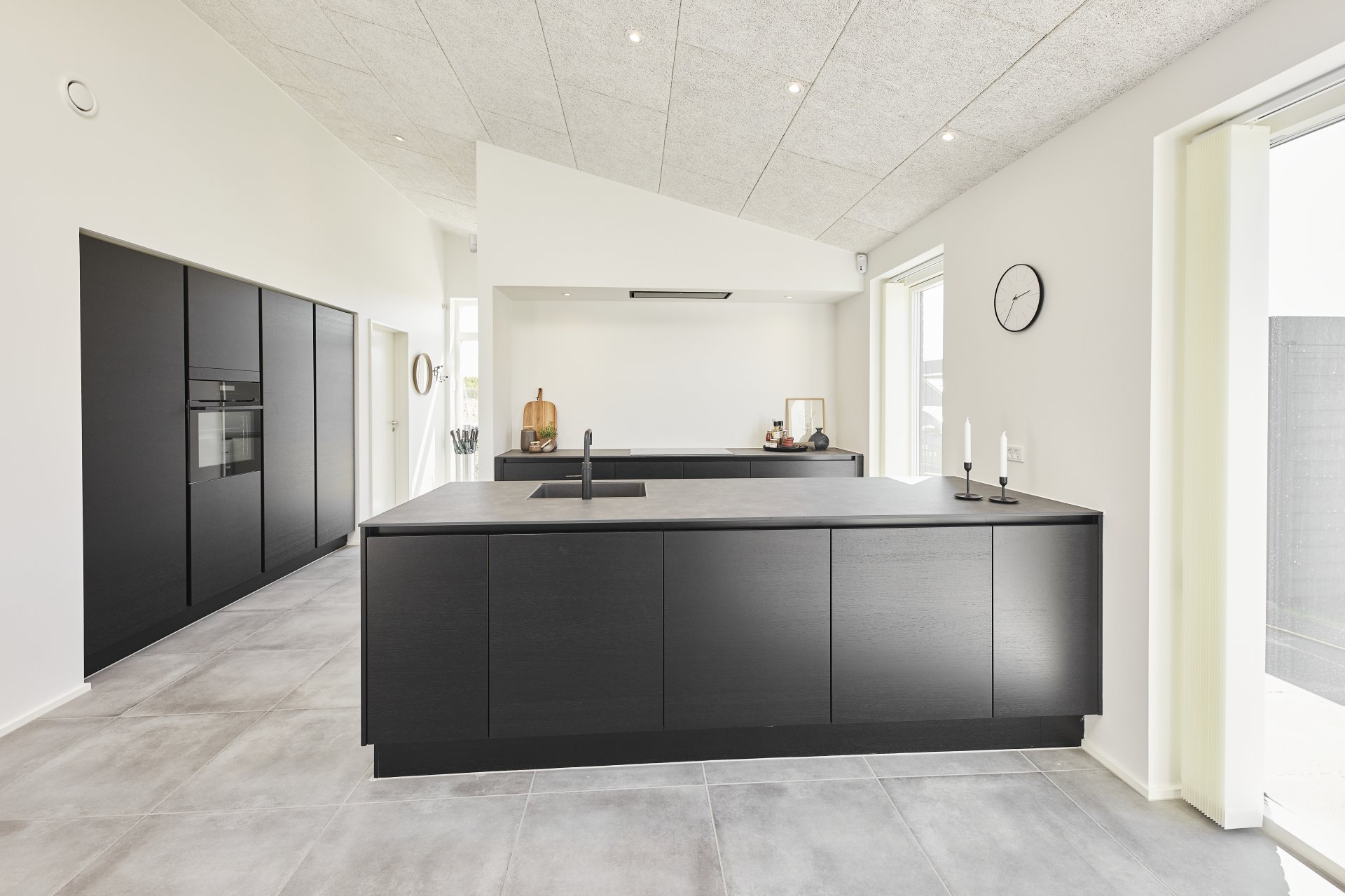 Mursten: Kingwood med antracit fuge. Klinker: Section Antracit. Gulv: Planke 42.
