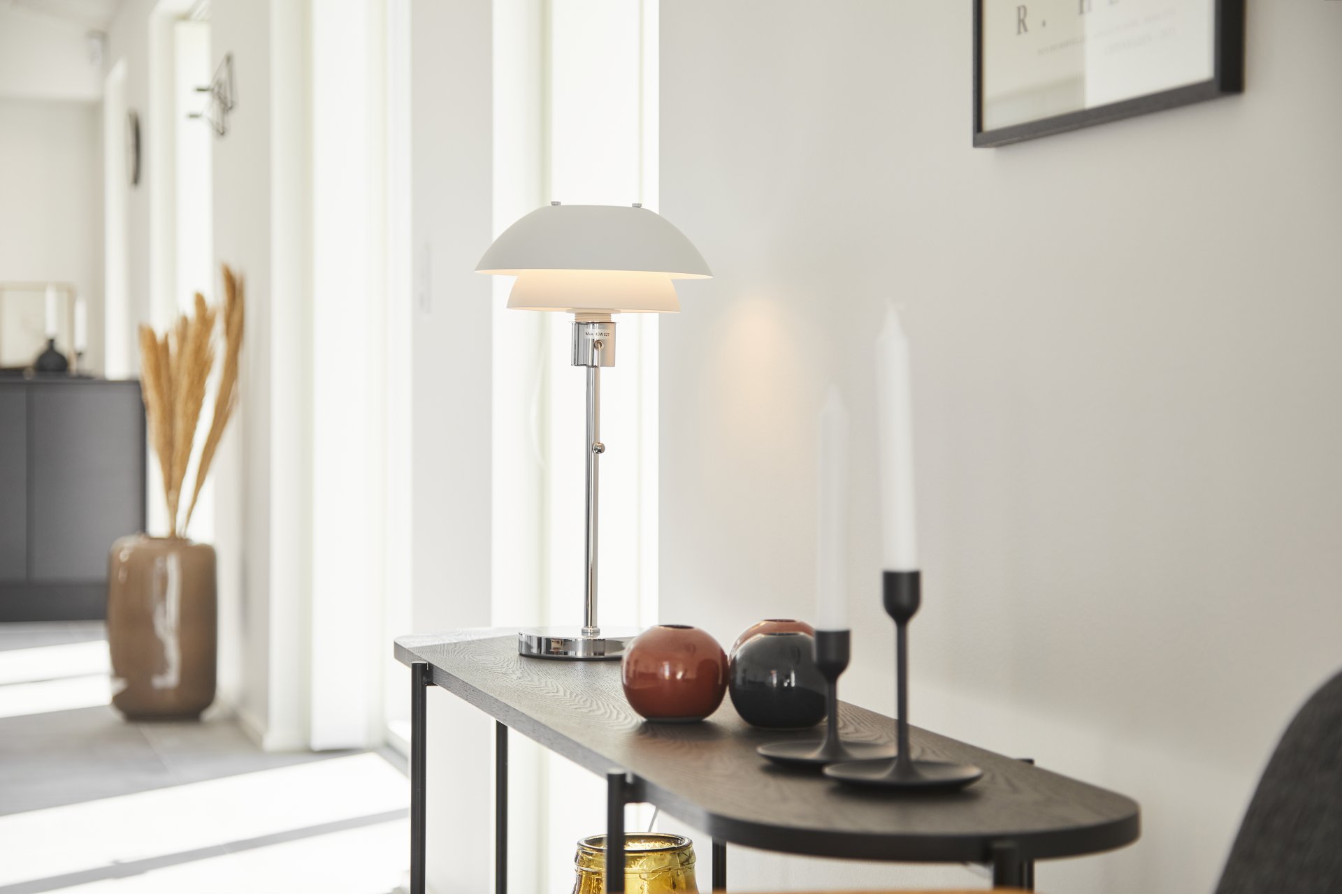 Halvvæg med murstensbeklædning og bænk som adskiller stue og Køkken/alrum.