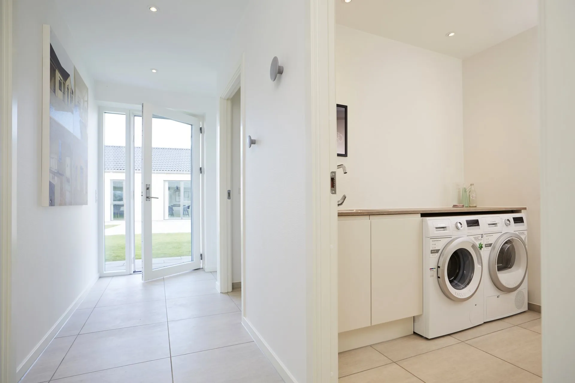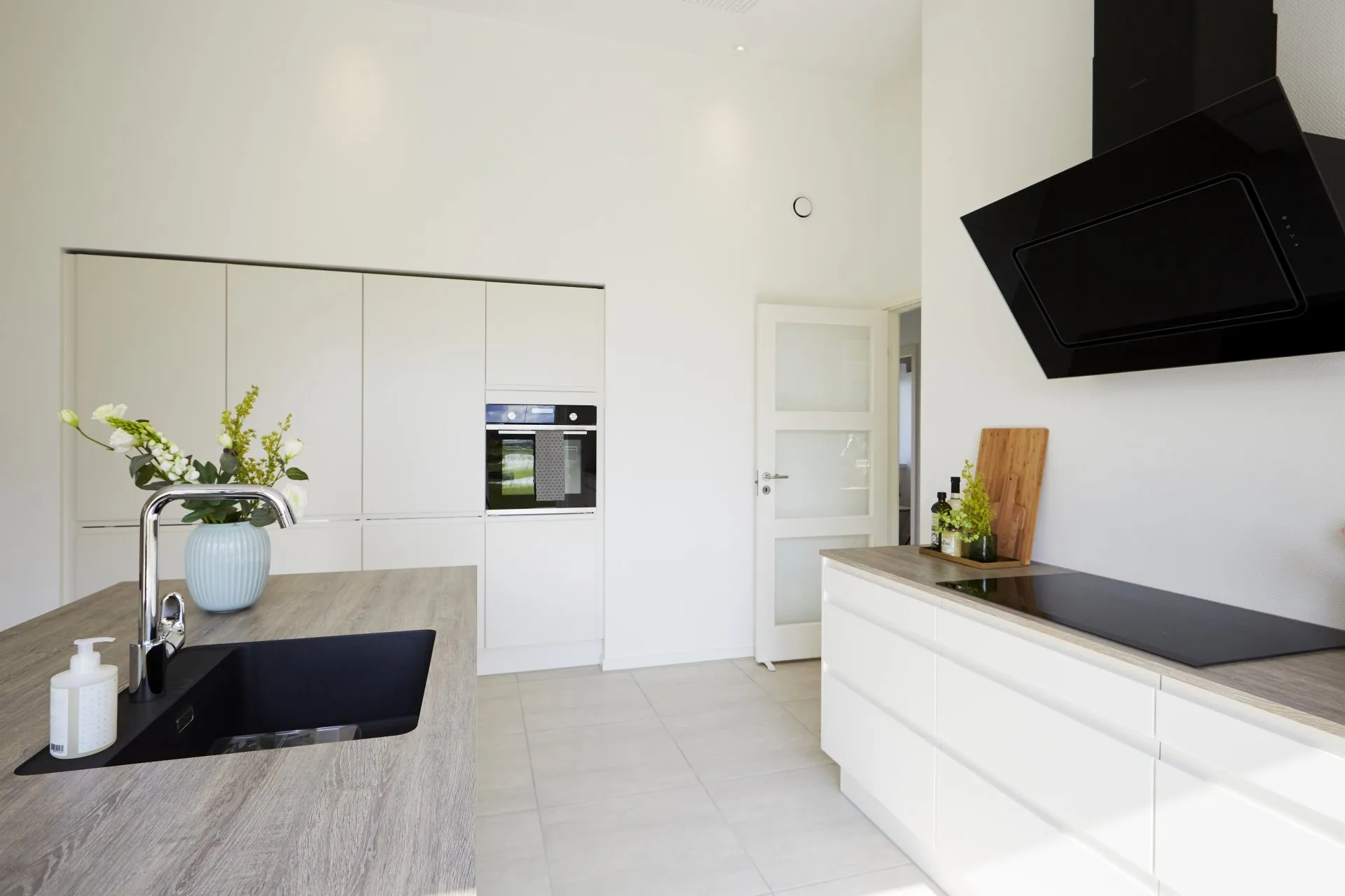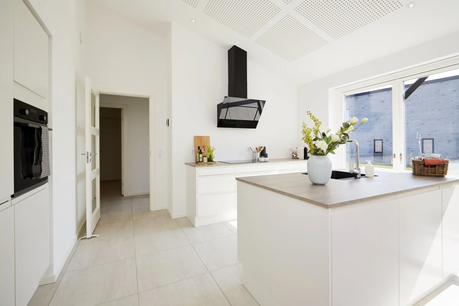 Mursten: Moskus. Klinker: Center Urban White. Gulv: Hybel 5 og 100-3.