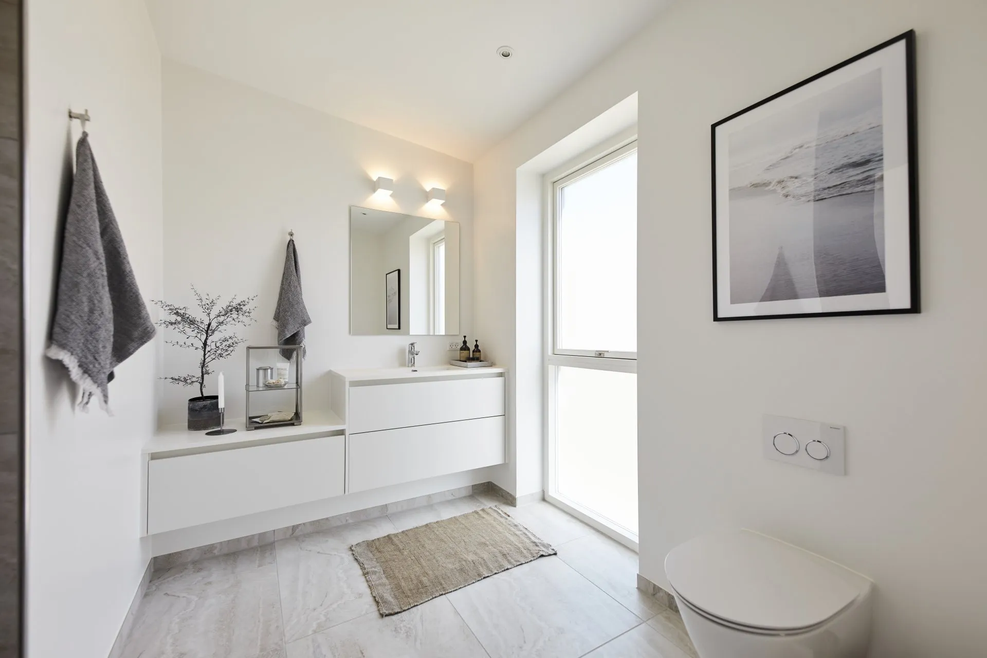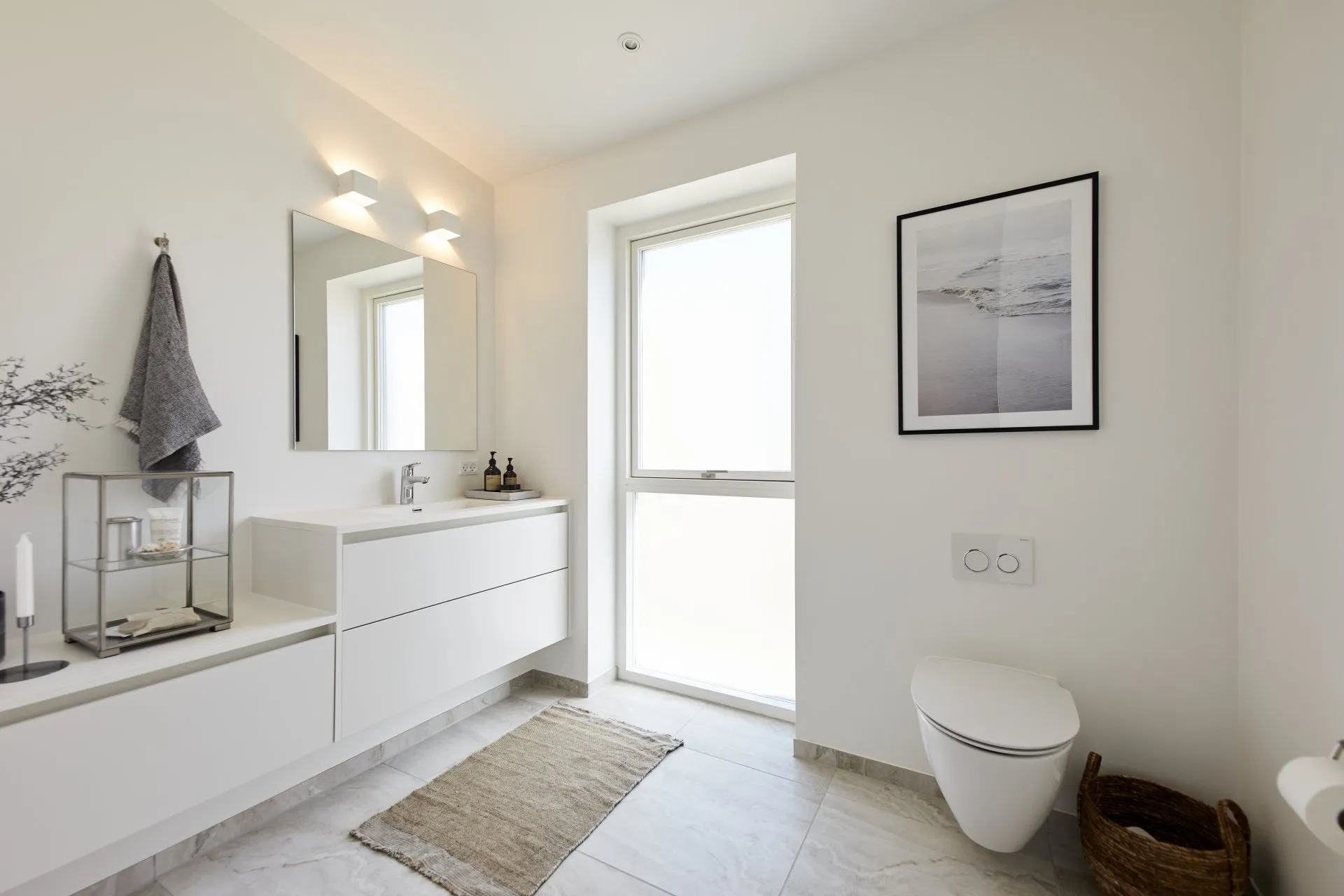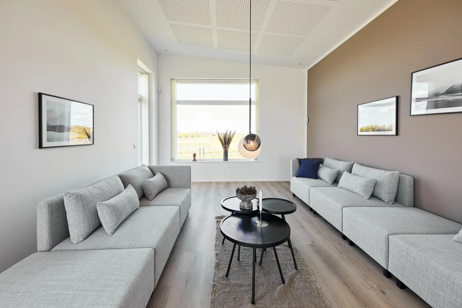 Mursten: Silver Grey. Klinker: RAW Travertine Lys Beige. Gulv: Hybel 68