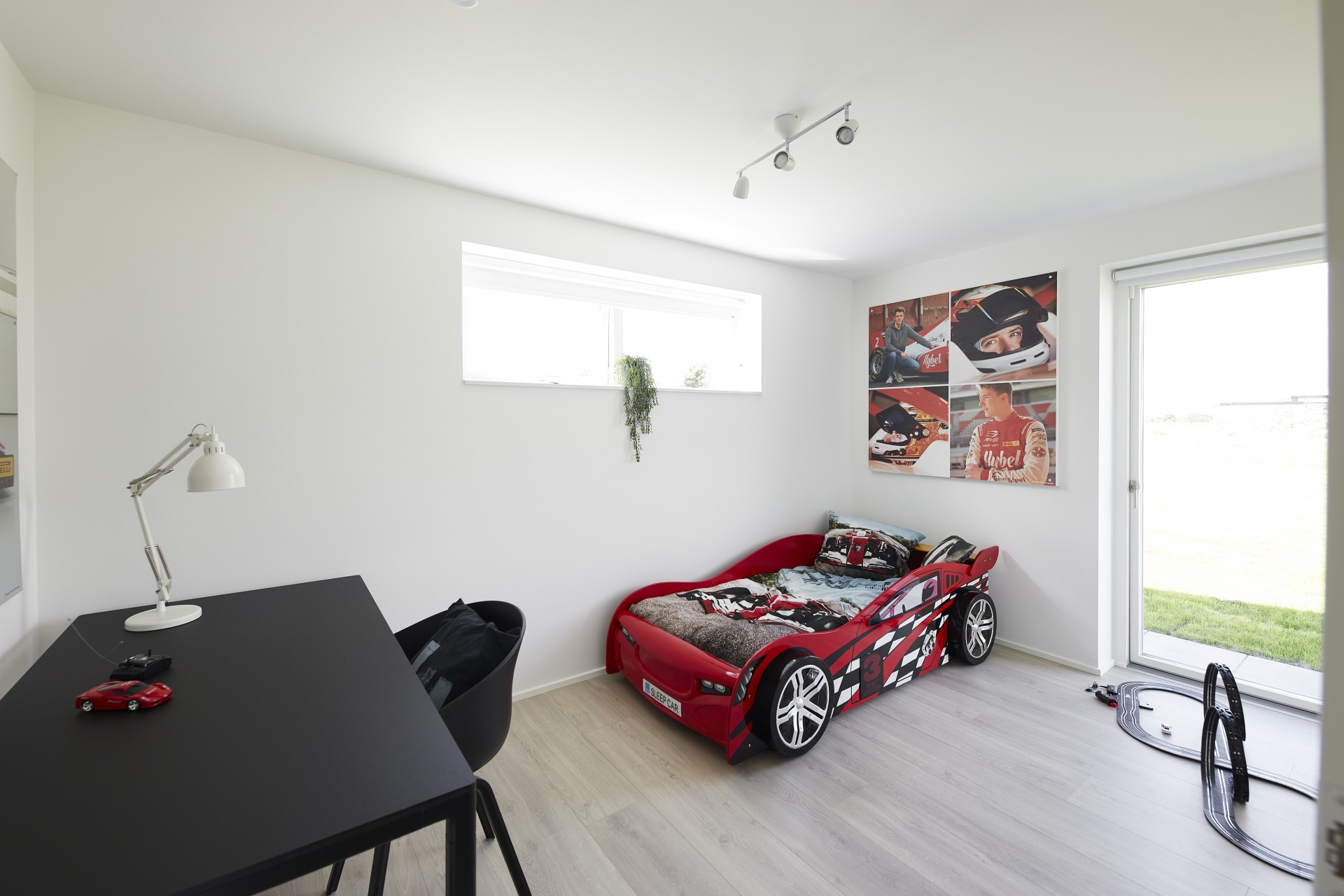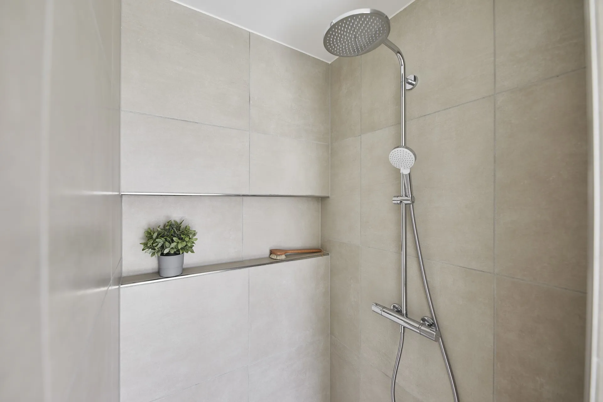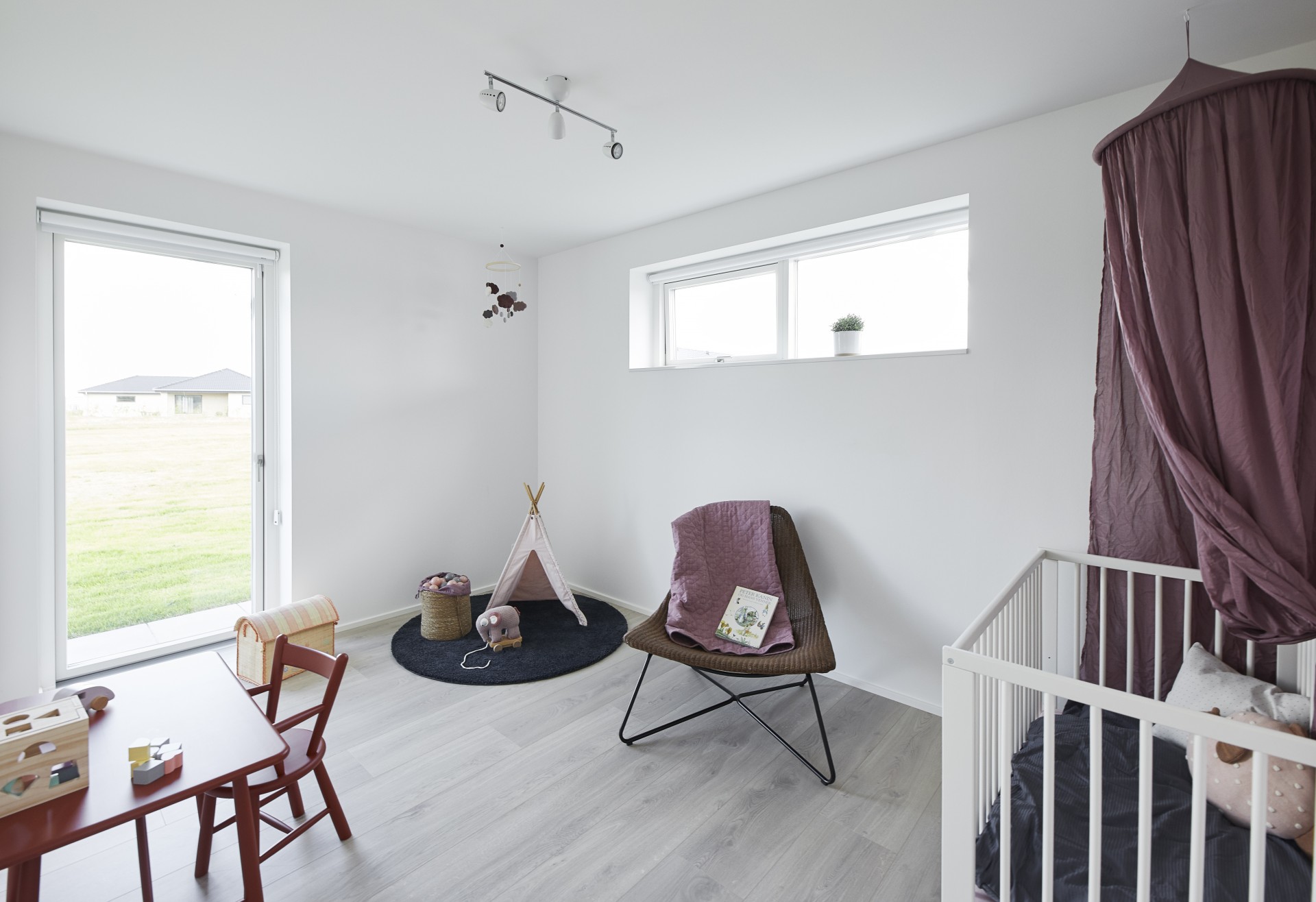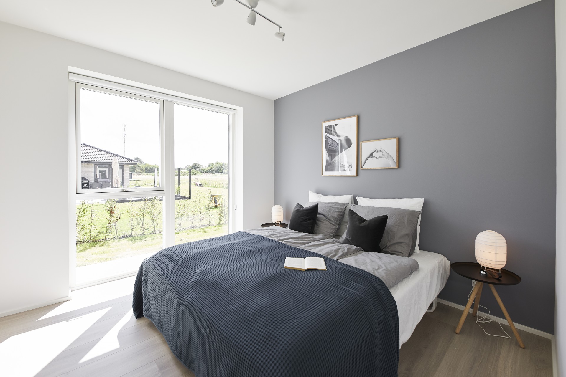 Mursten: Cassis m. grå/hvid fuge. Klinker: Ragno Sound Off White. Gulv: Laminat 88