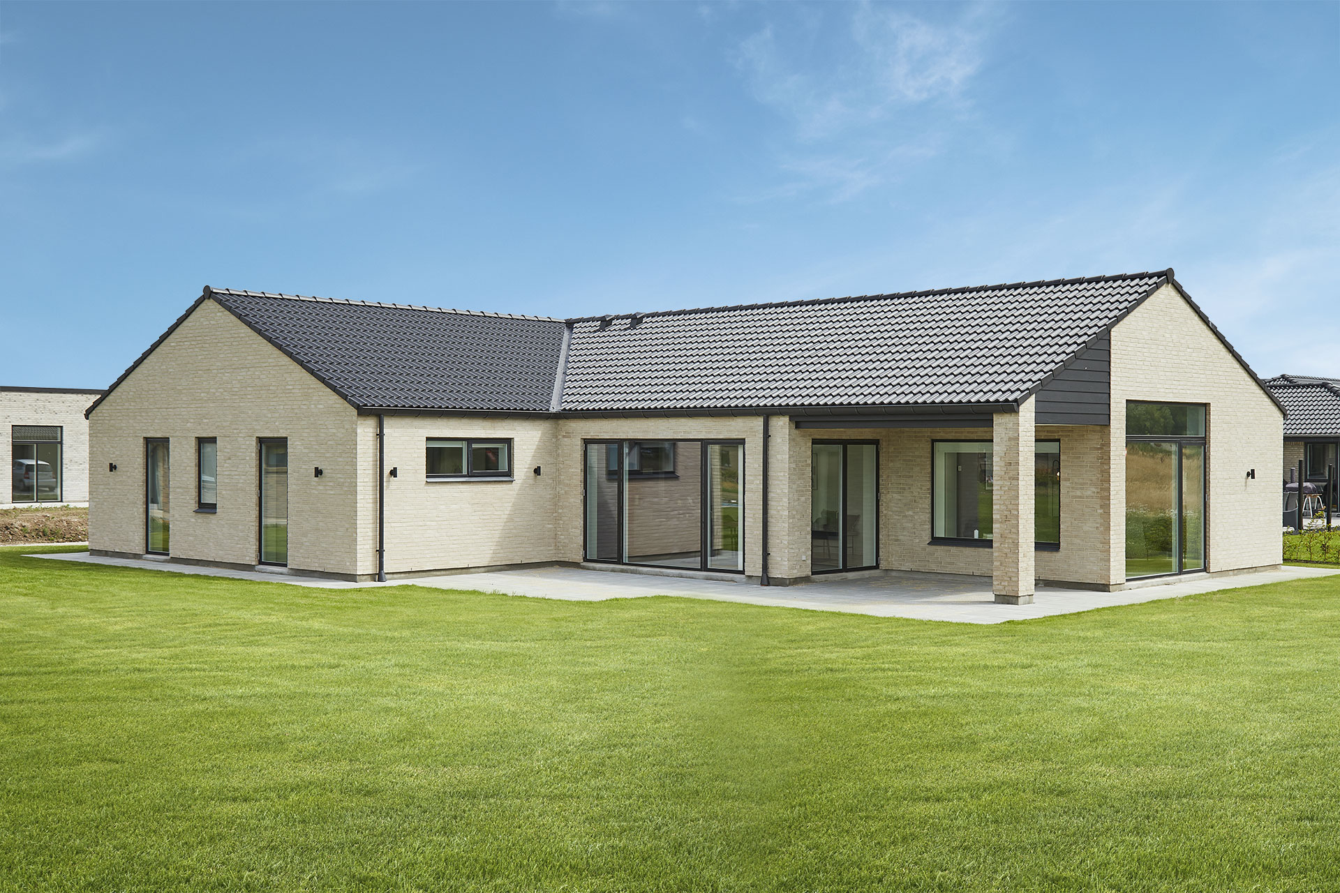 Forskudt vinkel med saddeltag uden udhæng.