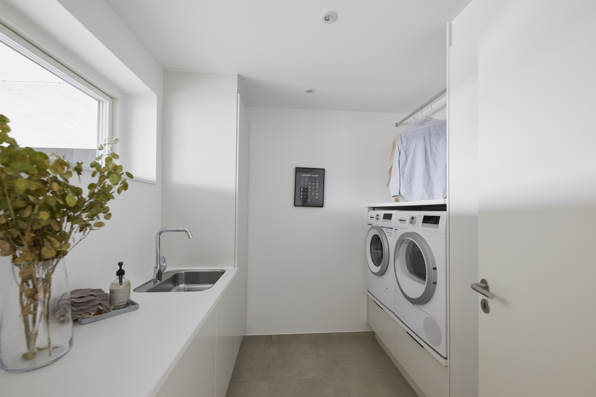Bryggers m. tørreplads, udsigtsvinduer og skabsgang.