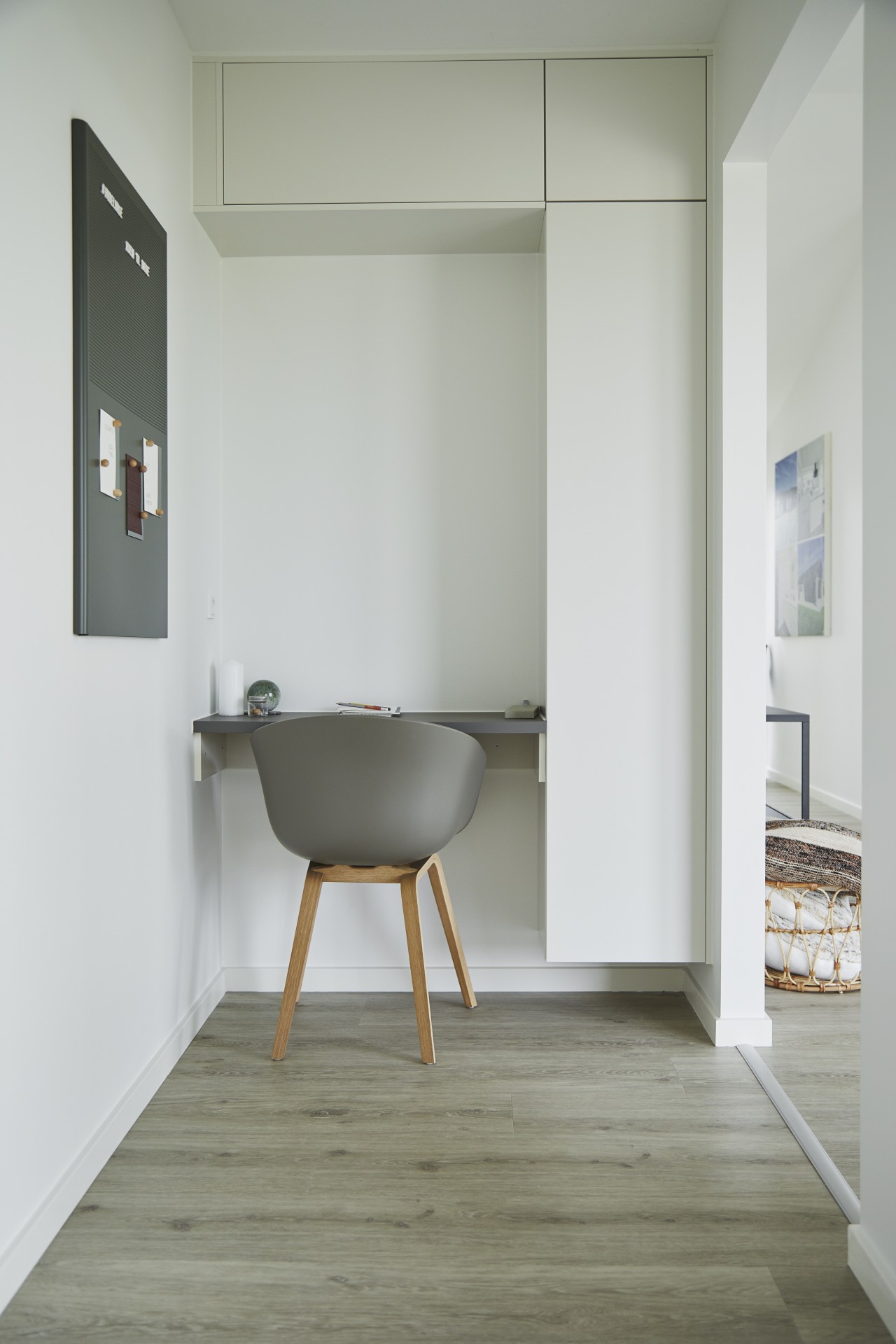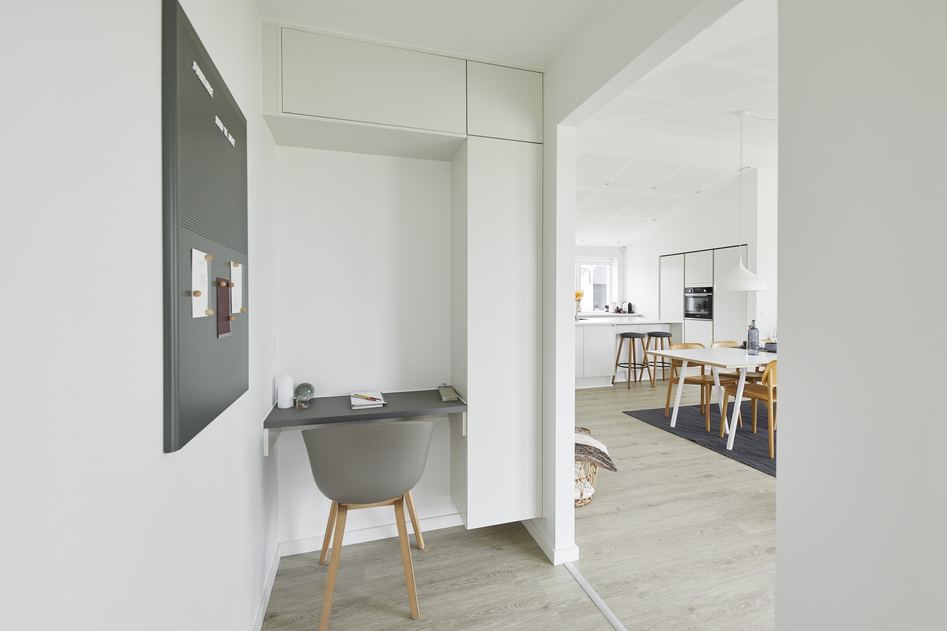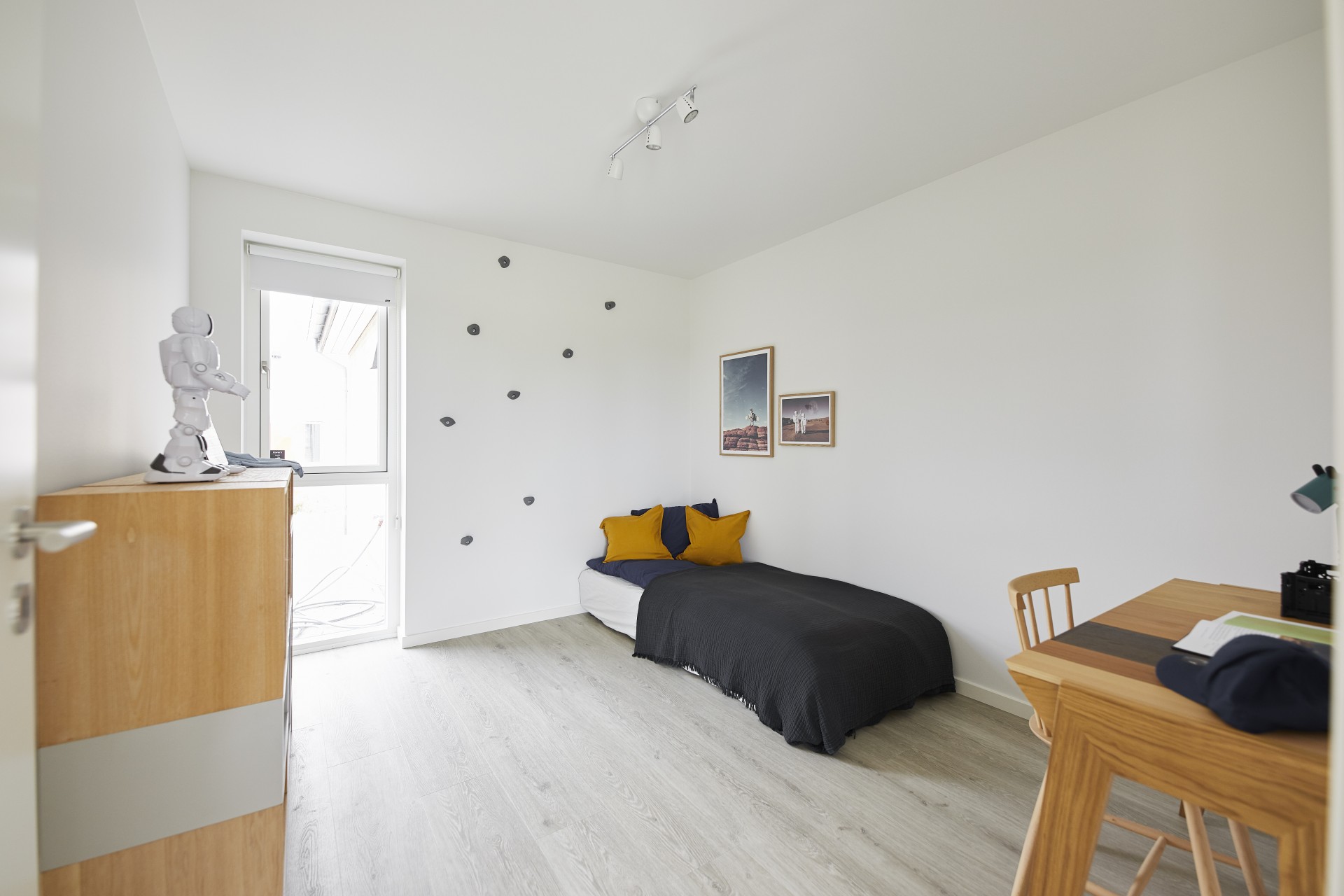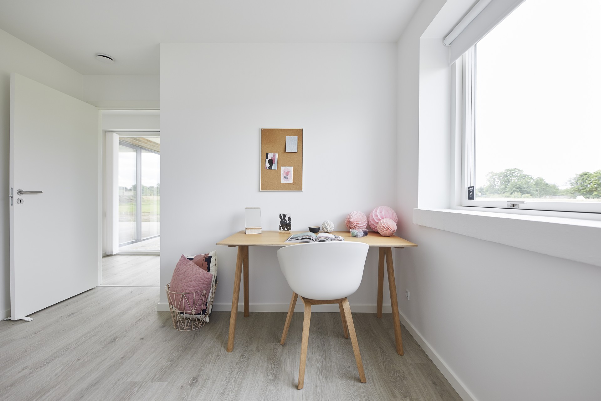 Arbejdsniche, dobbeltsiddet skråloft og halvmur.