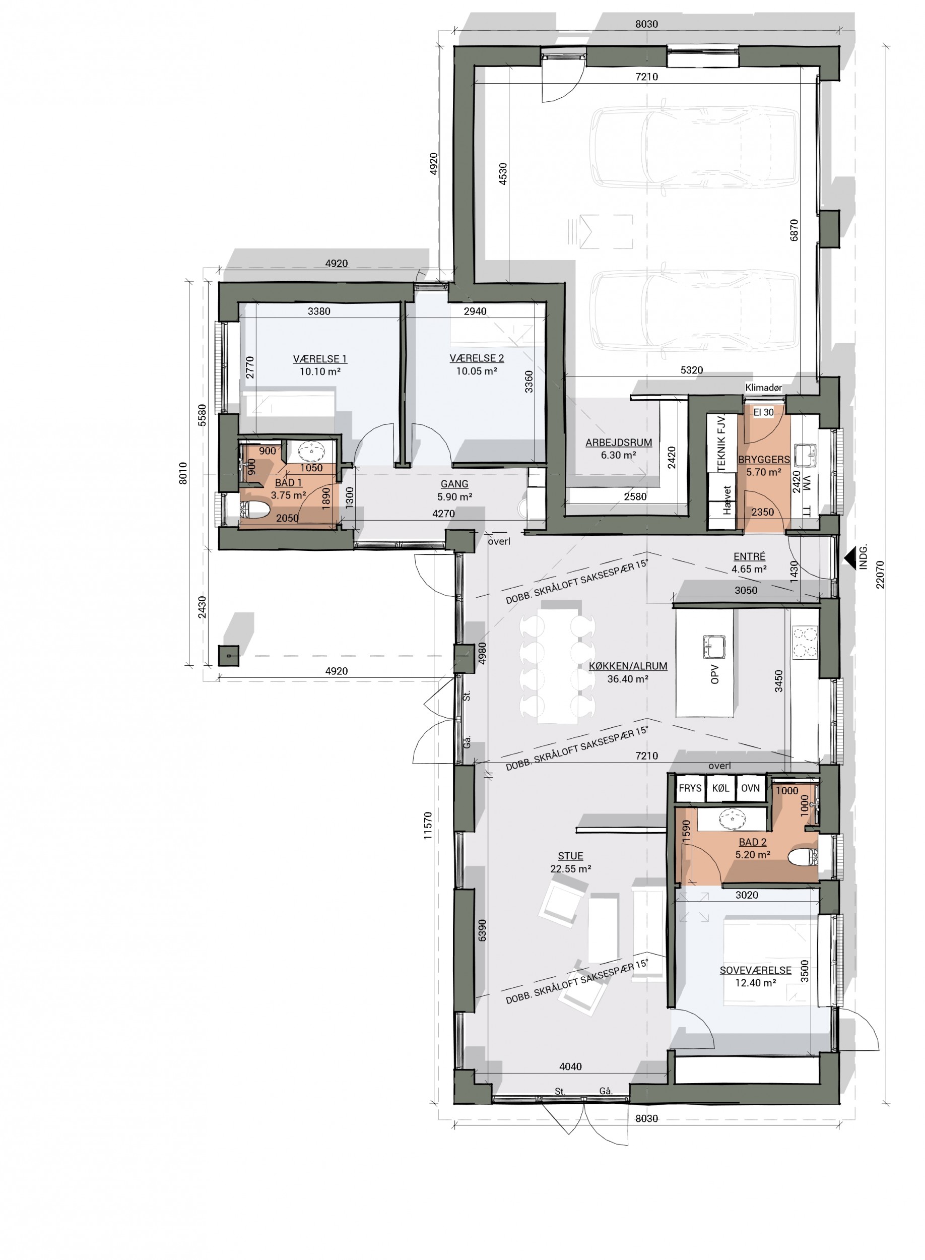 Bolig: 145 m2. Garage: 60 m2.