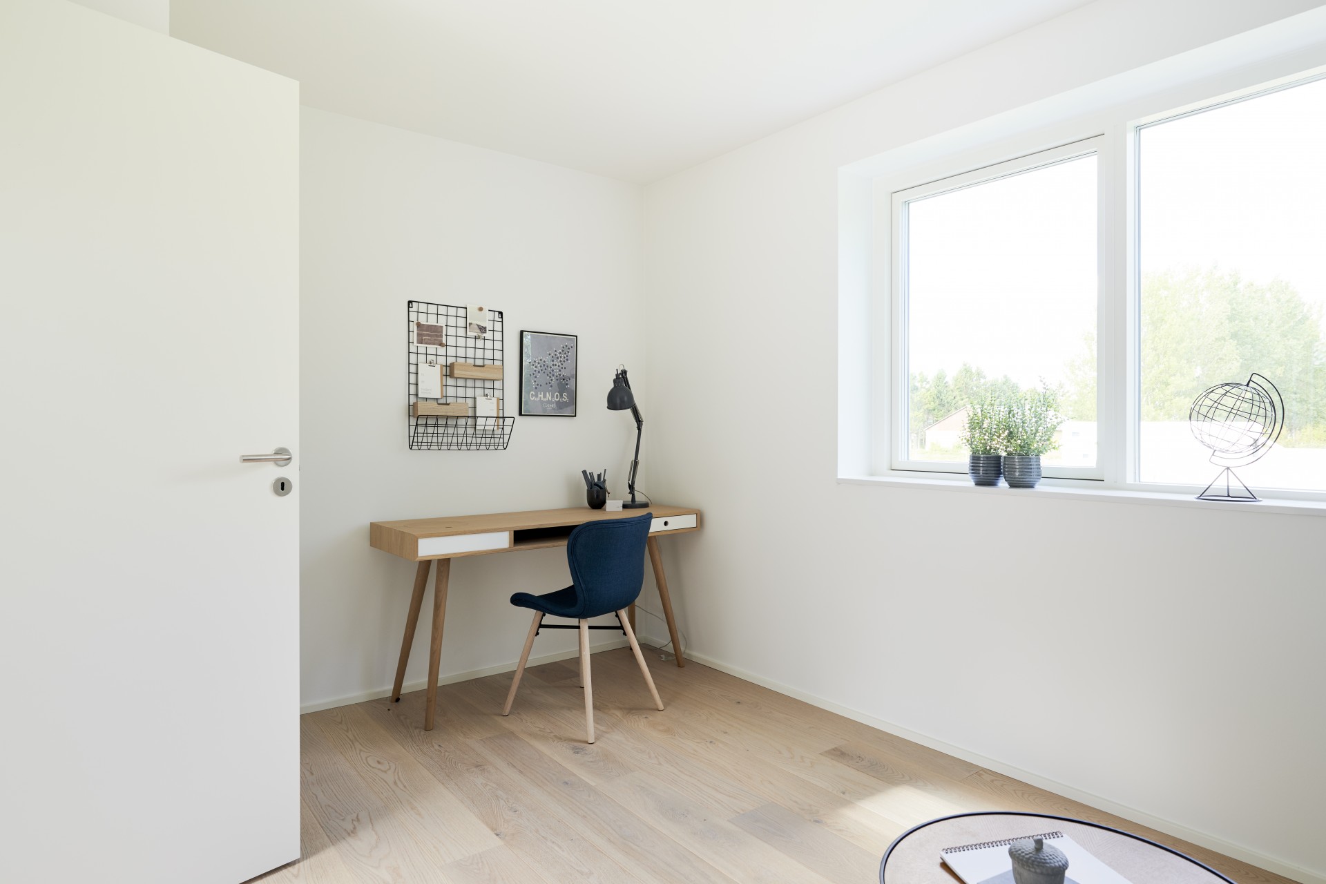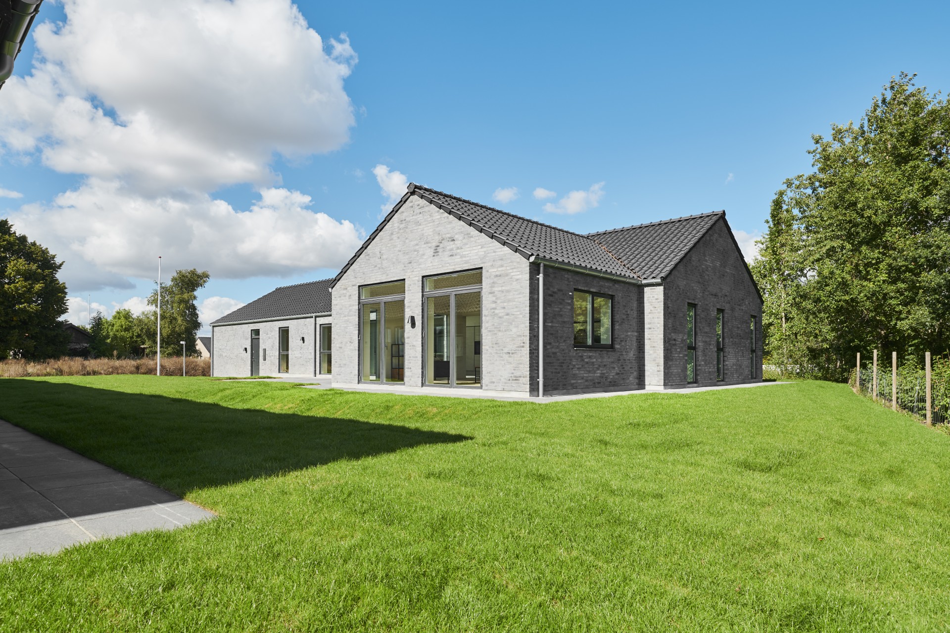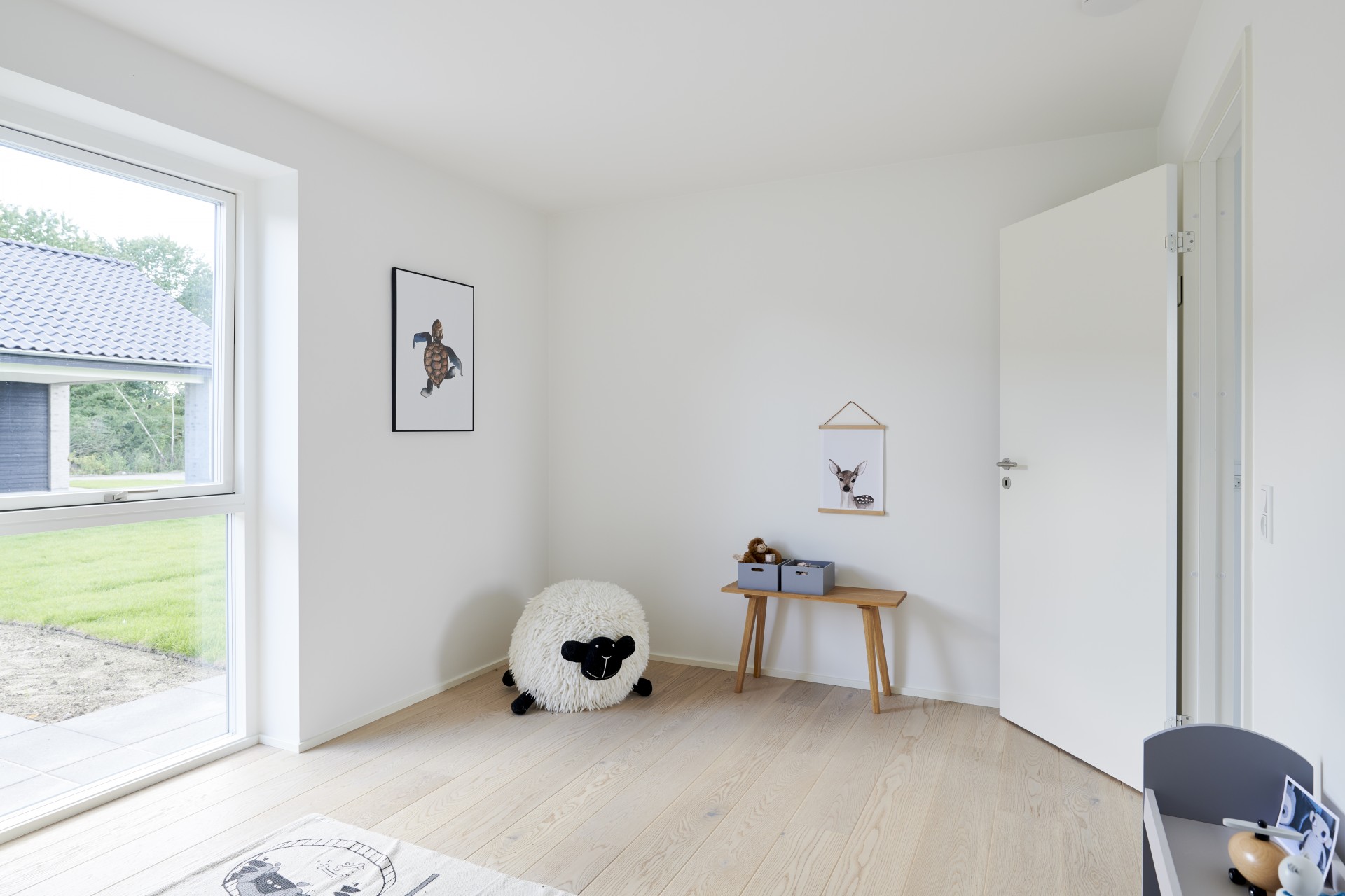 Forskudt vinkelhus med saddeltag uden udhæng.