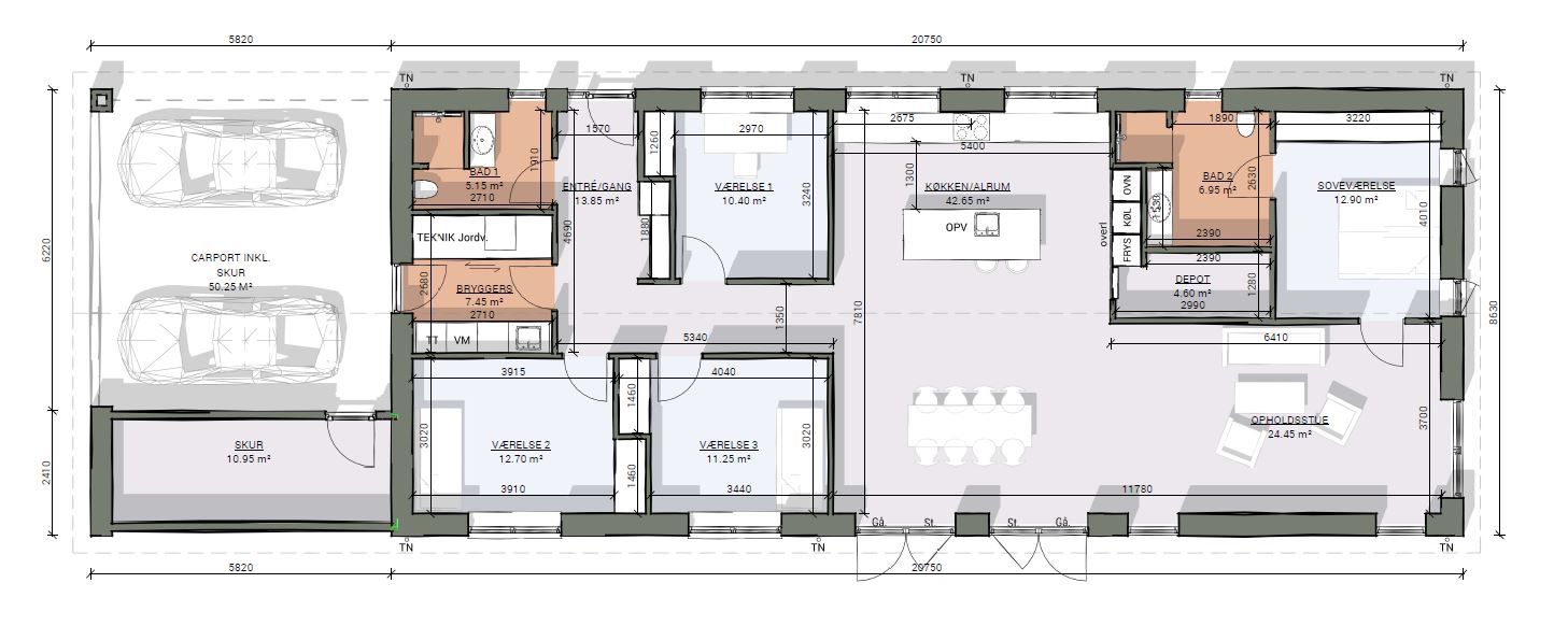 Mursten: Sisteron. Klinker: Raw Urban Antracit. Gulv: Hybel 90