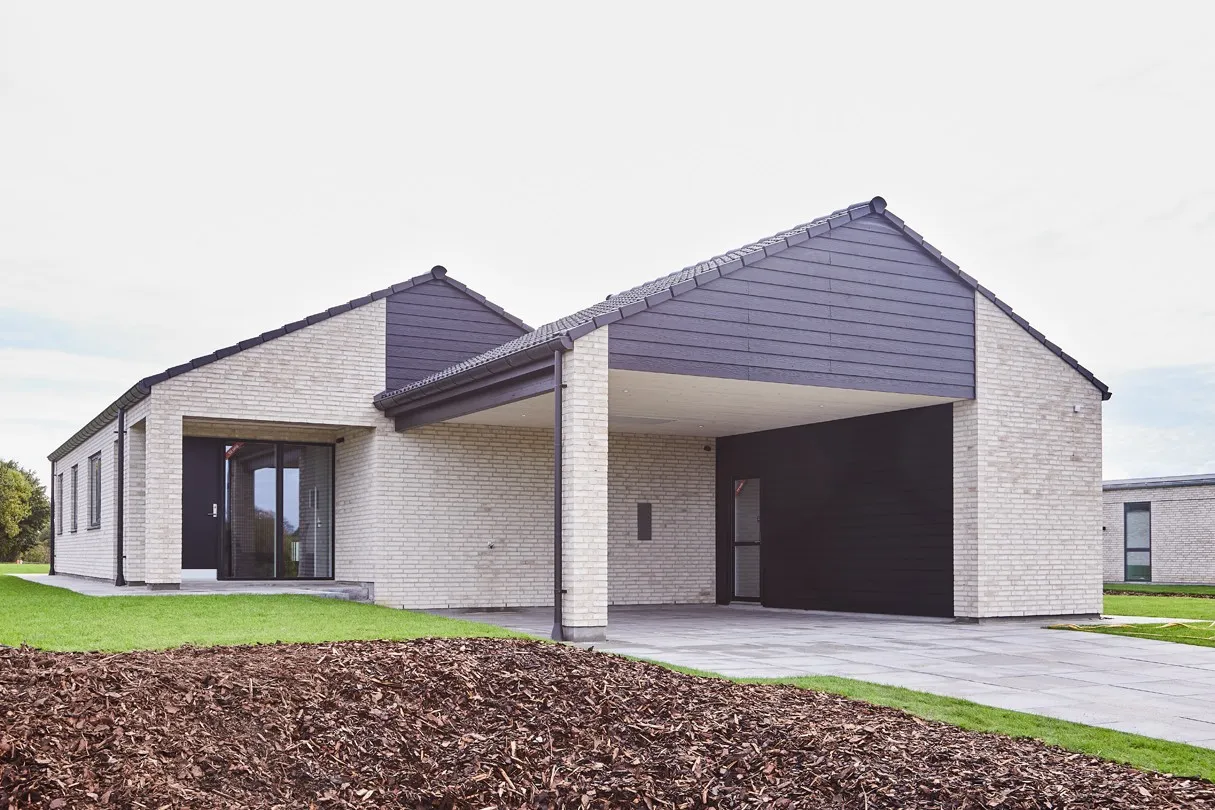 Mursten: Mercur m. grå/hvid fuge. Klinker: Tabor Perla. Gulv: Hybel 67