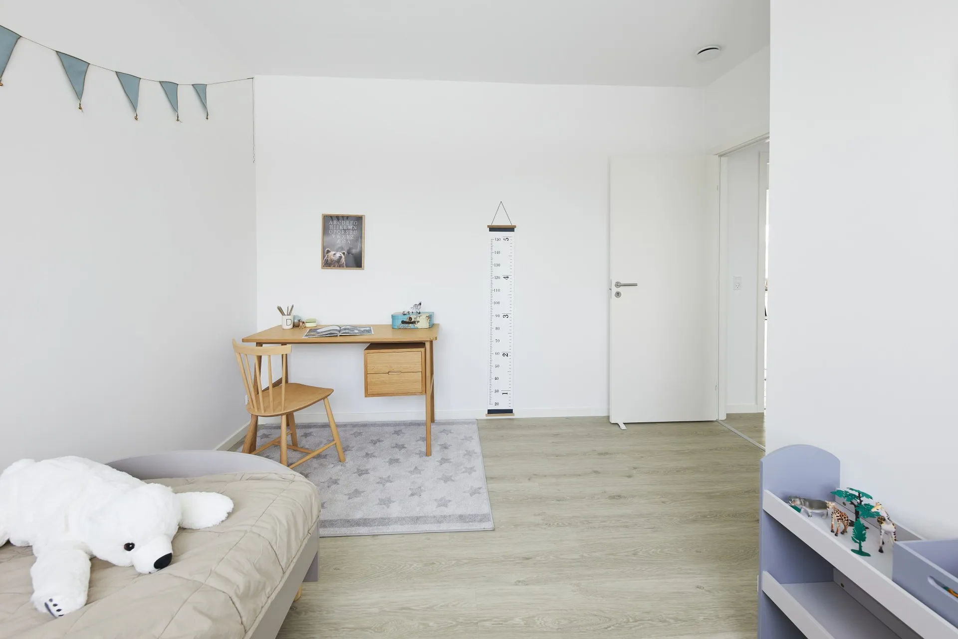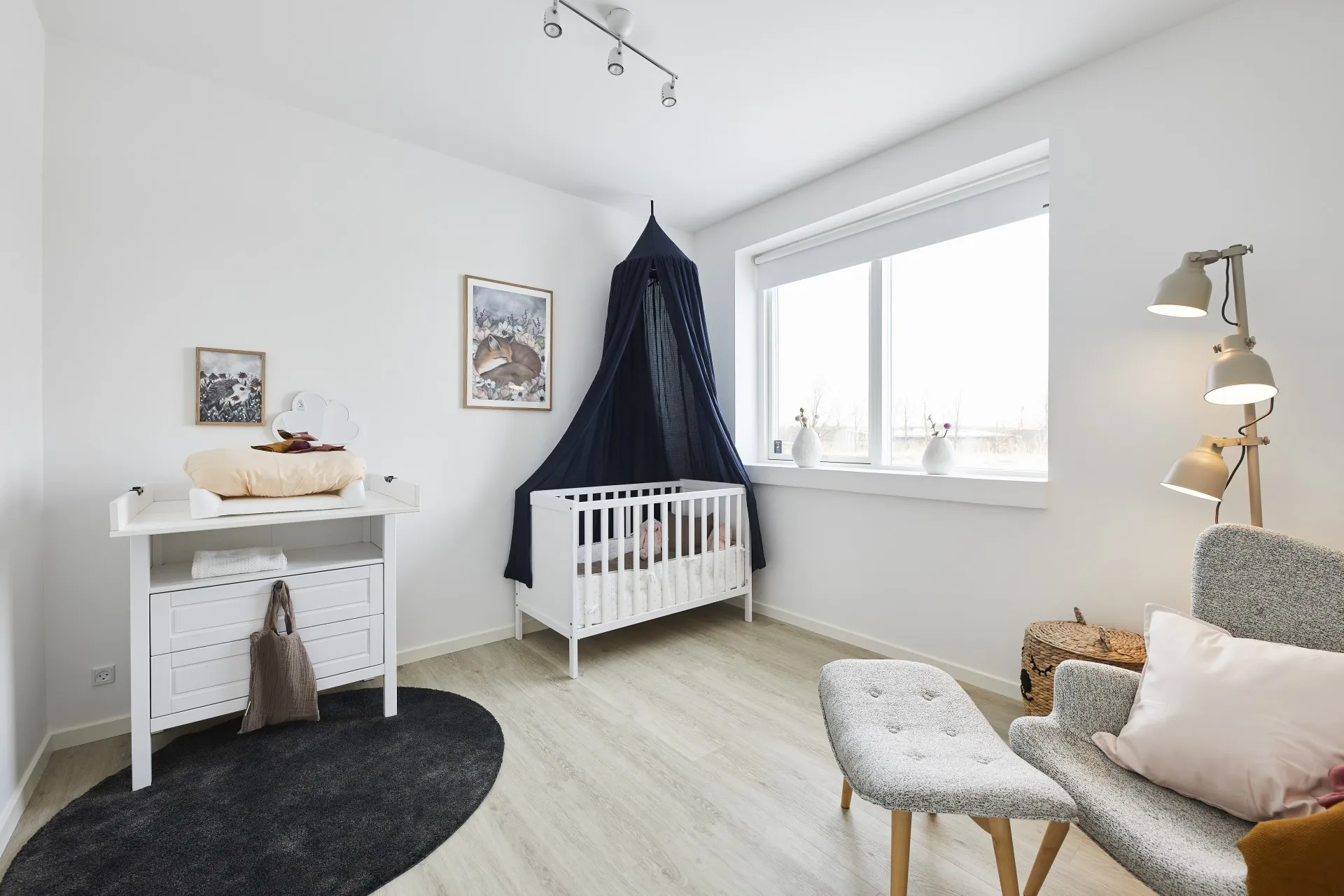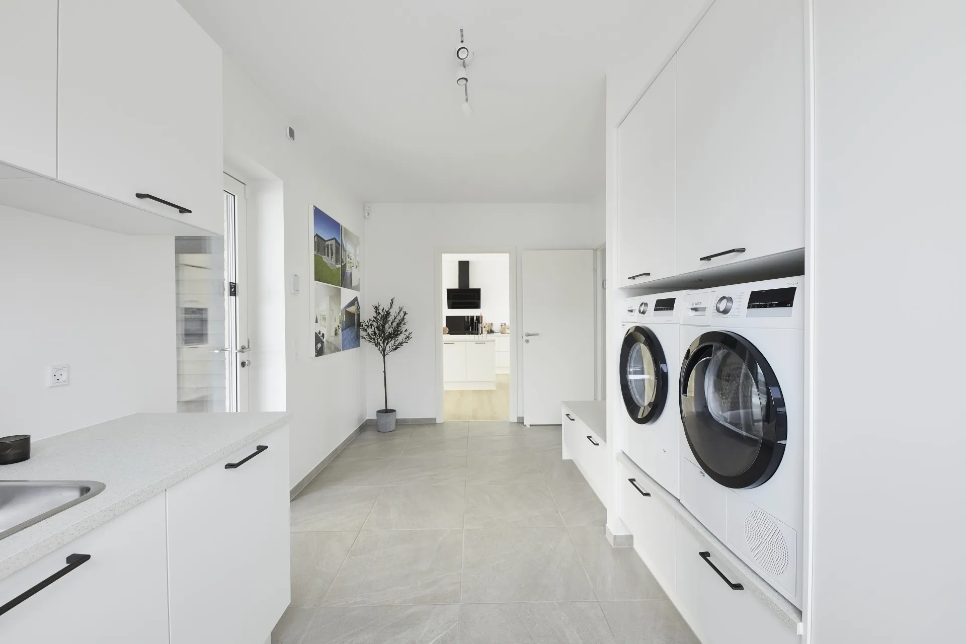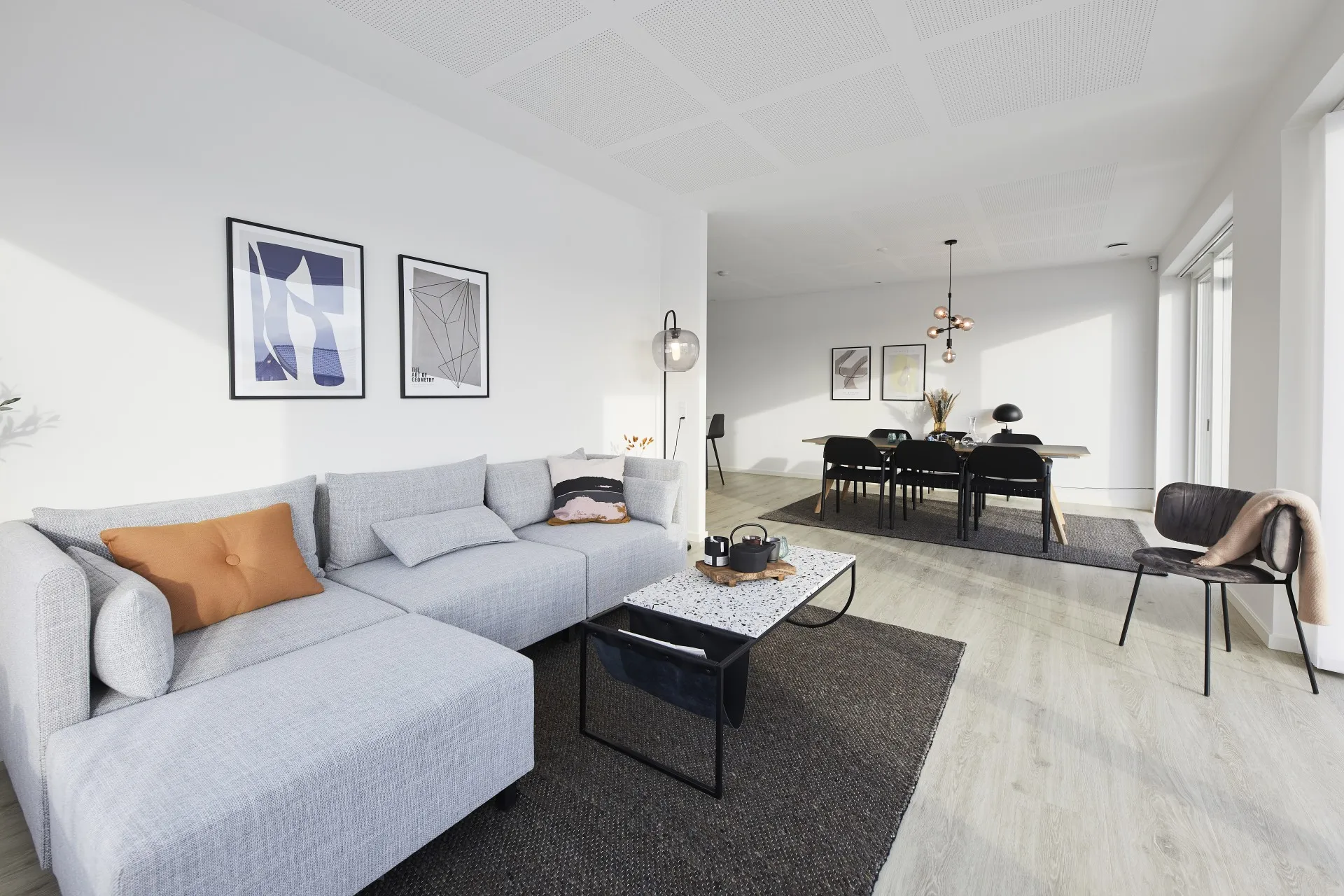 Mursten: Limoux med grå/hvid fuge. Klinker: Atrium Tabor Perla. Gulv: Hybel 90