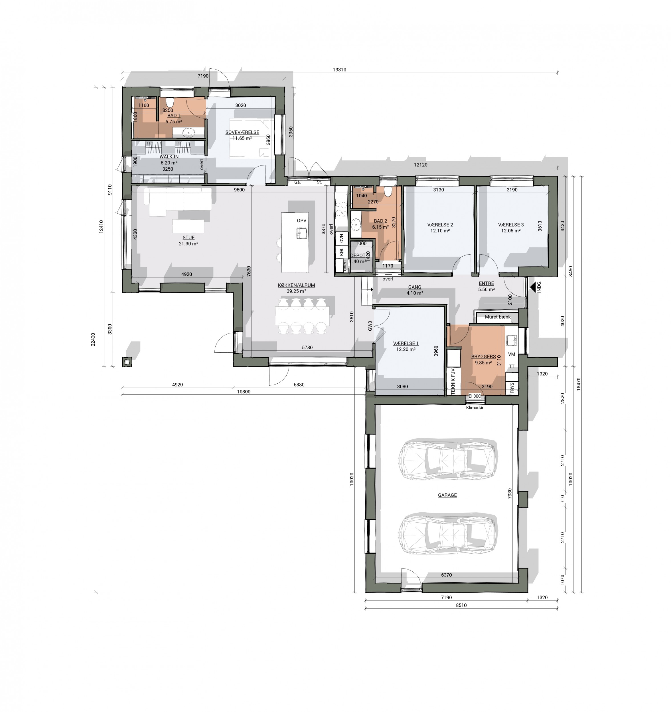 Mursten: Libra. Klinker: Essay Sand. Gulv: Hybel 67