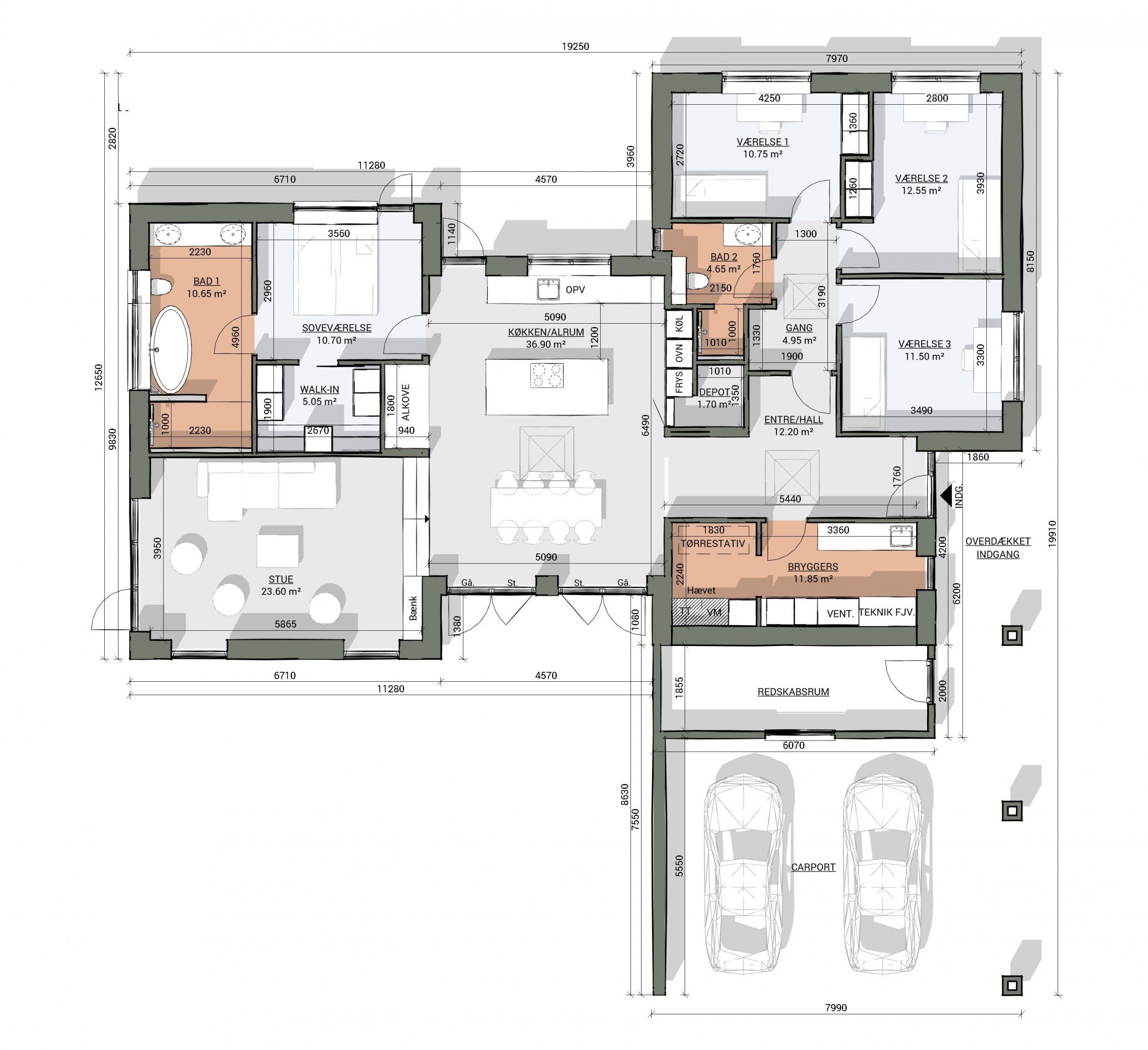 Mursten: Taurus. Klinker: Salem GR. Gulv: Hybel 37