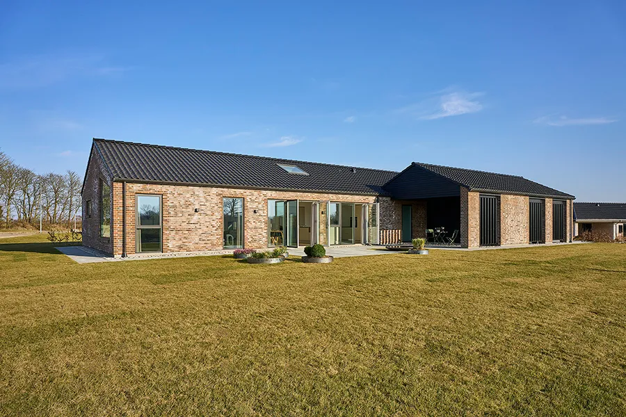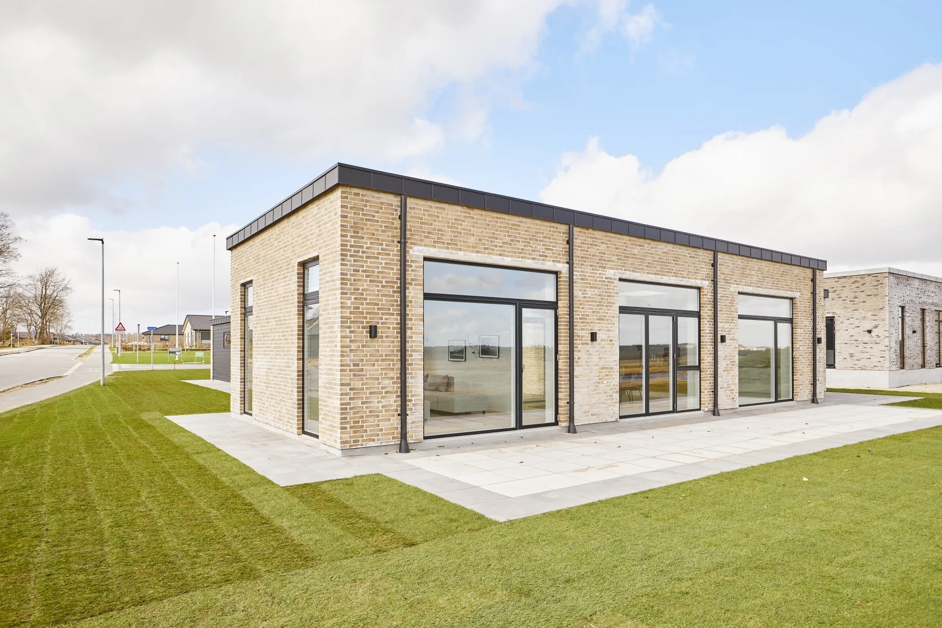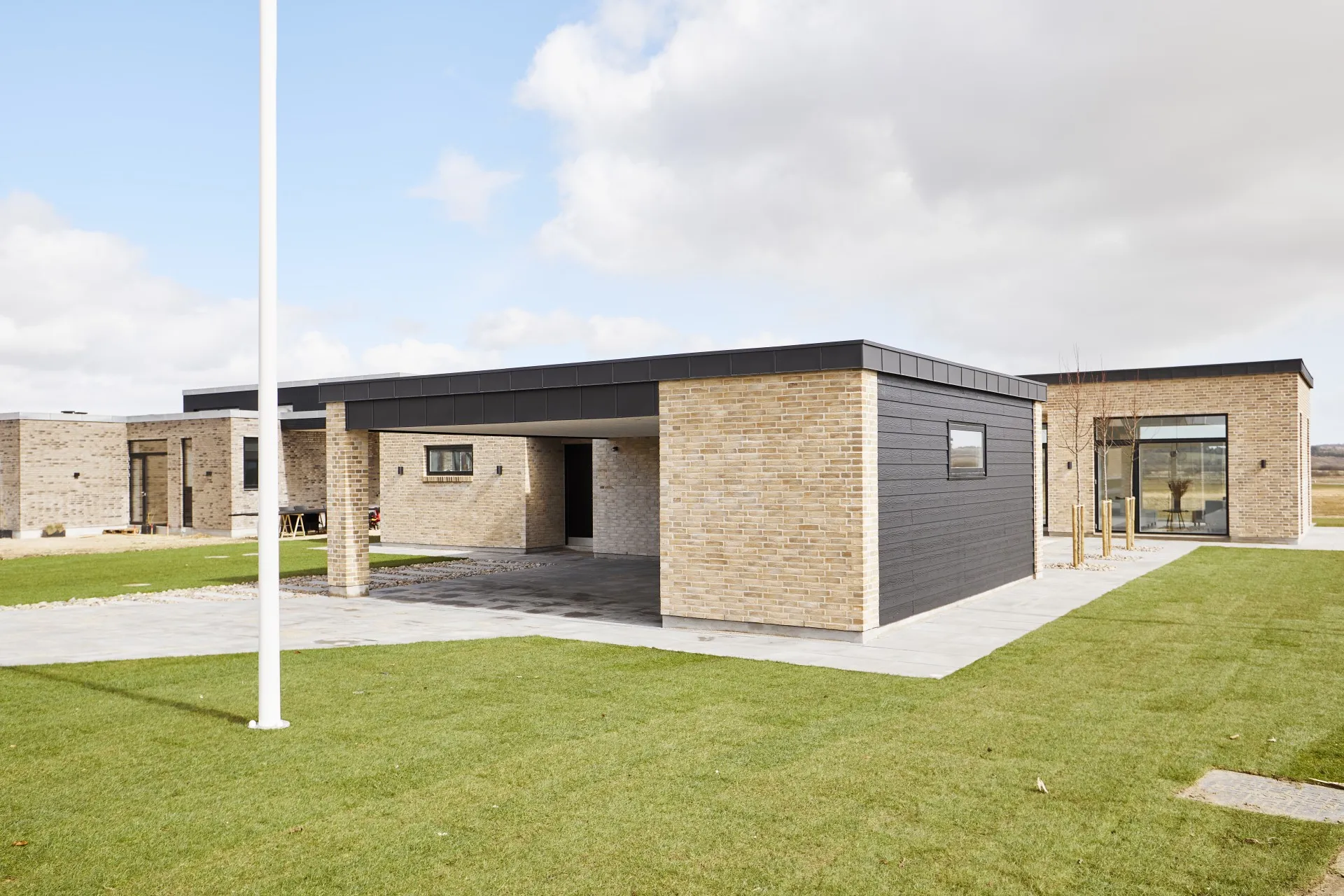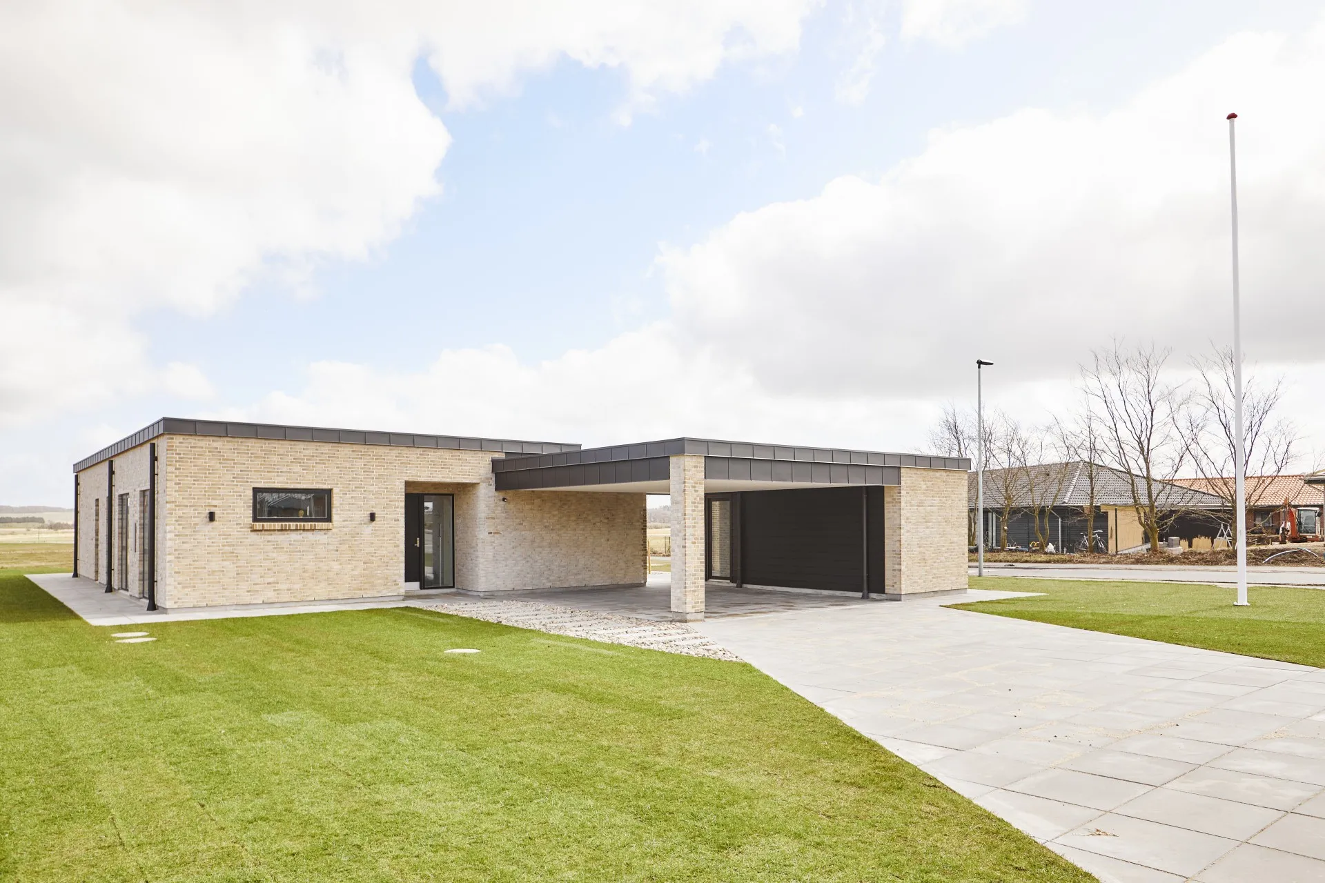 Mursten: Cold Hawaii med grå/hvid fuge. Klinker: Salem Cenzia. Gulv: Midi plank-eg