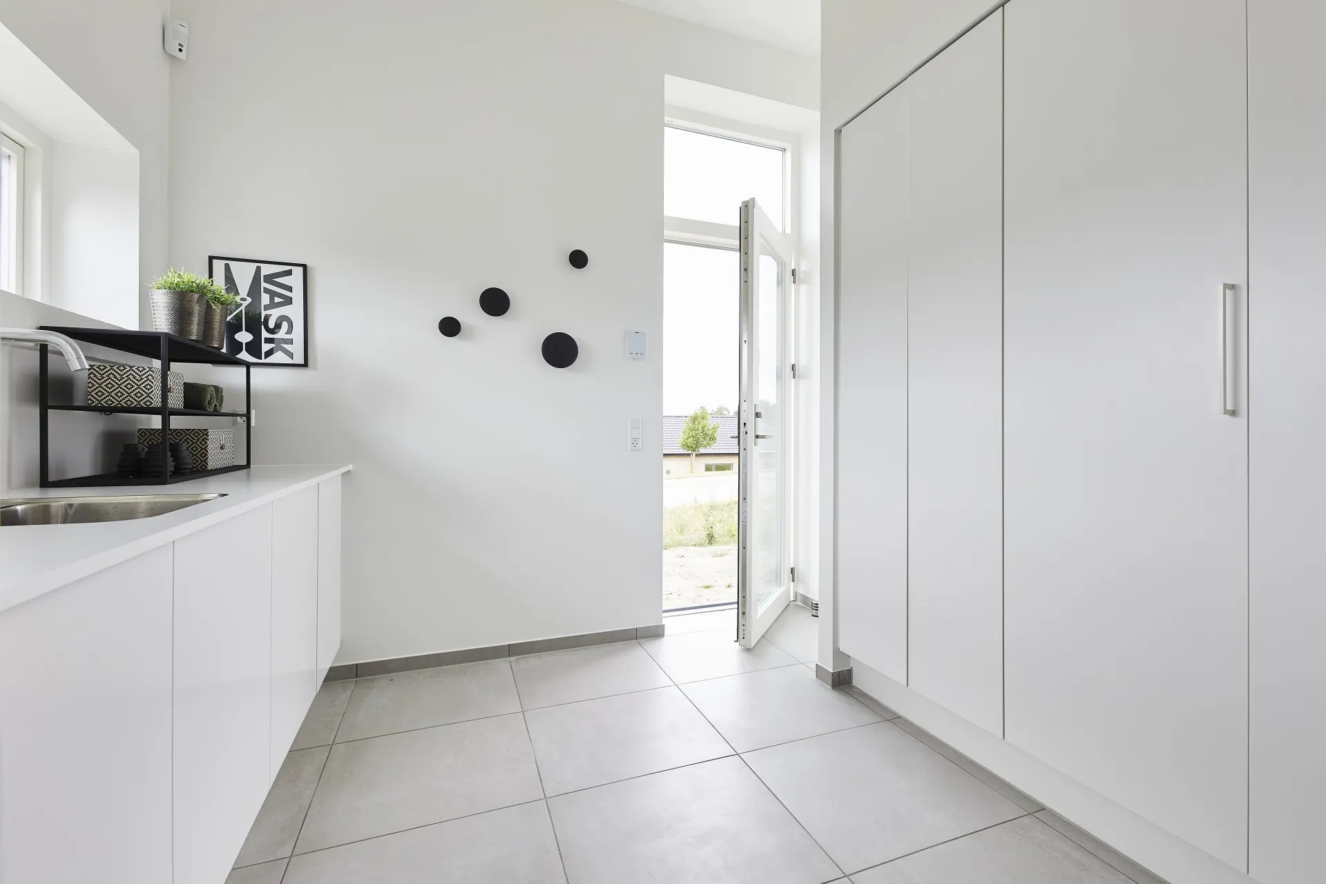 Lyst køkken/alrum, stort bryggers og store vinduespartier