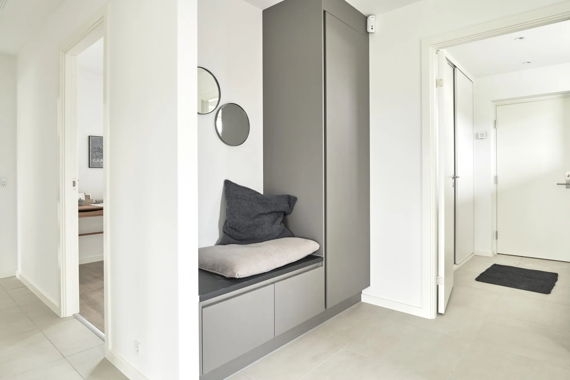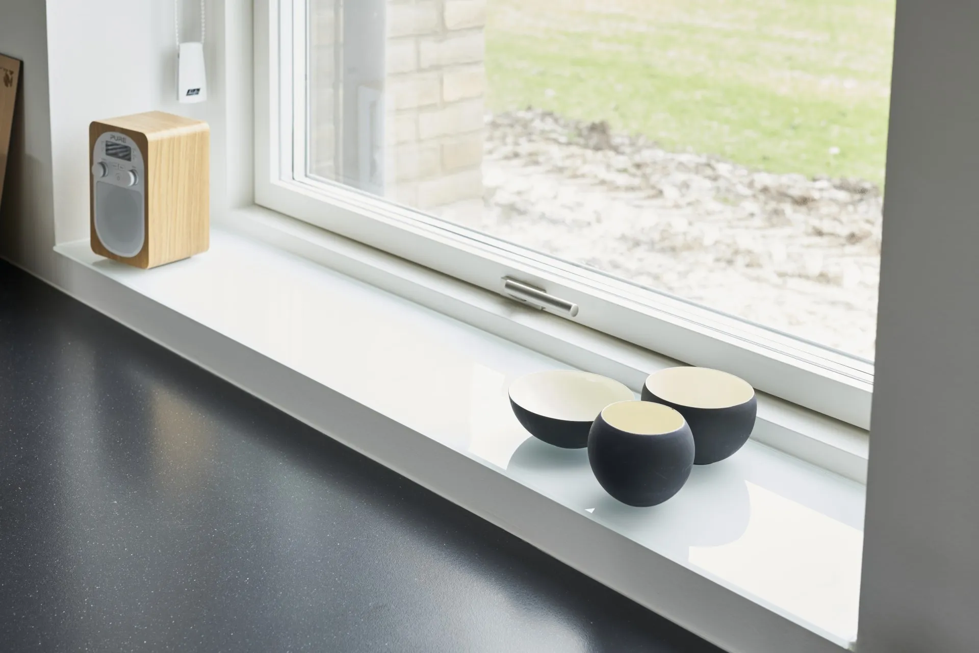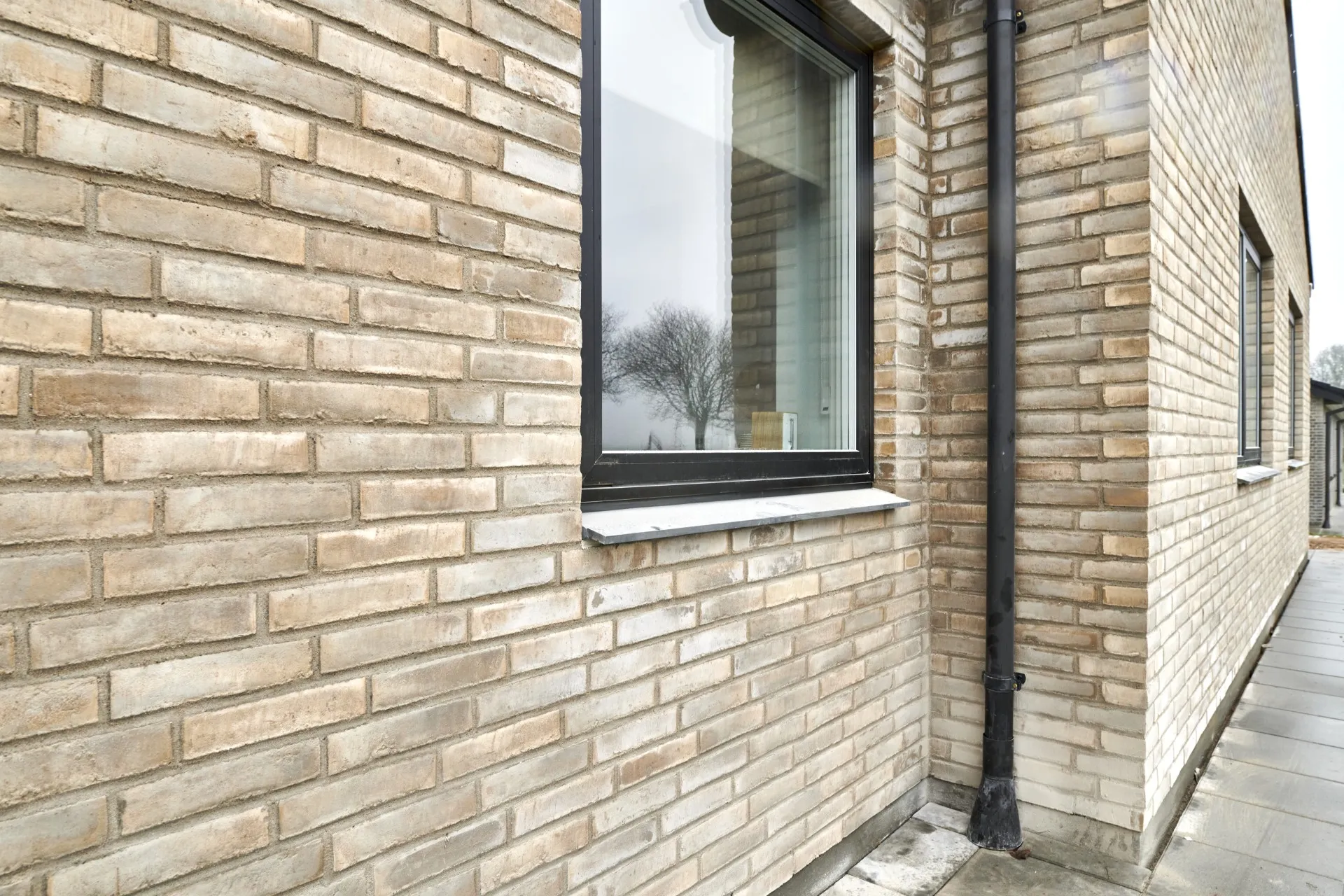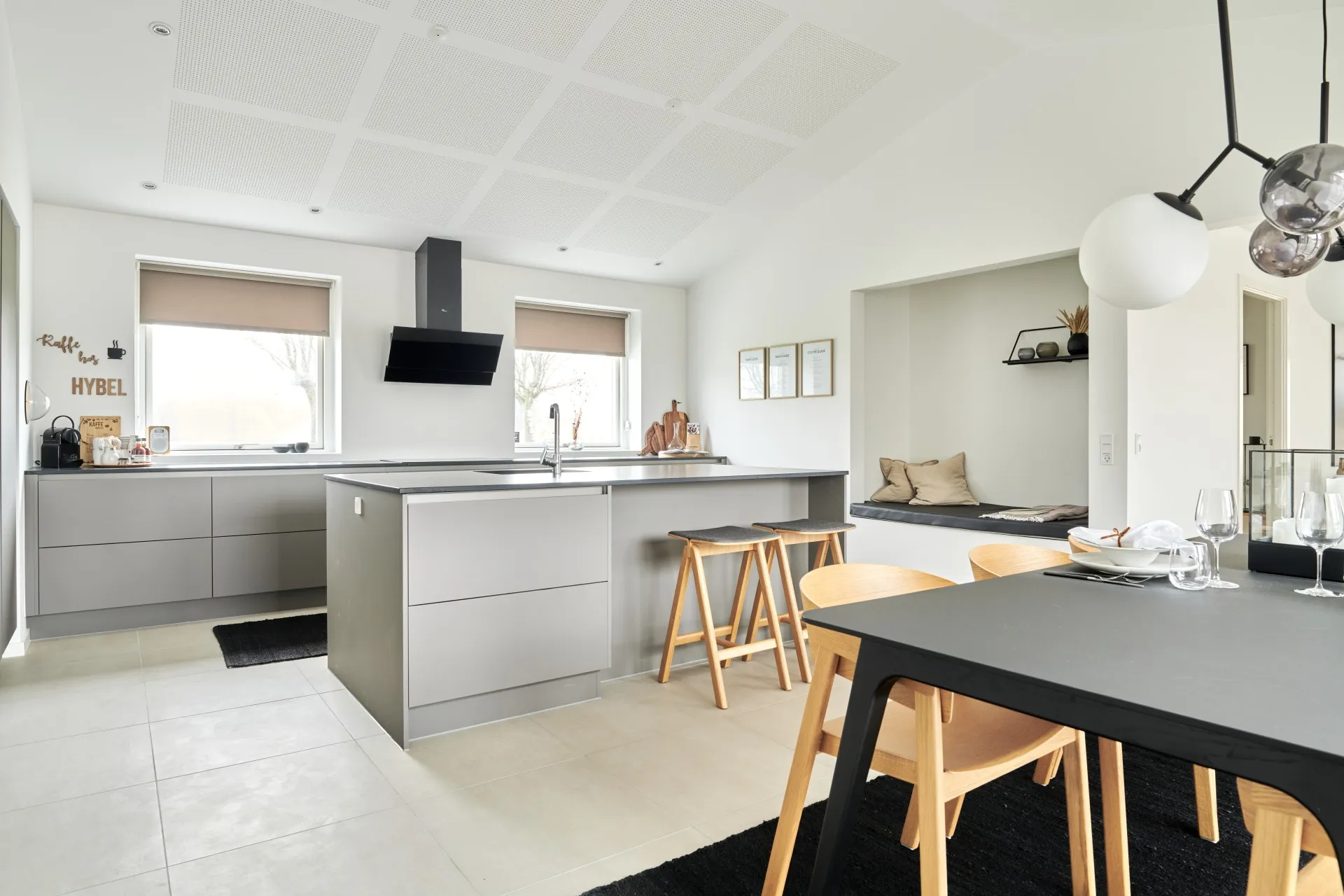 Mursten: Cold Hawaii. Klinker: Essey White. Gulv: Hybel 50