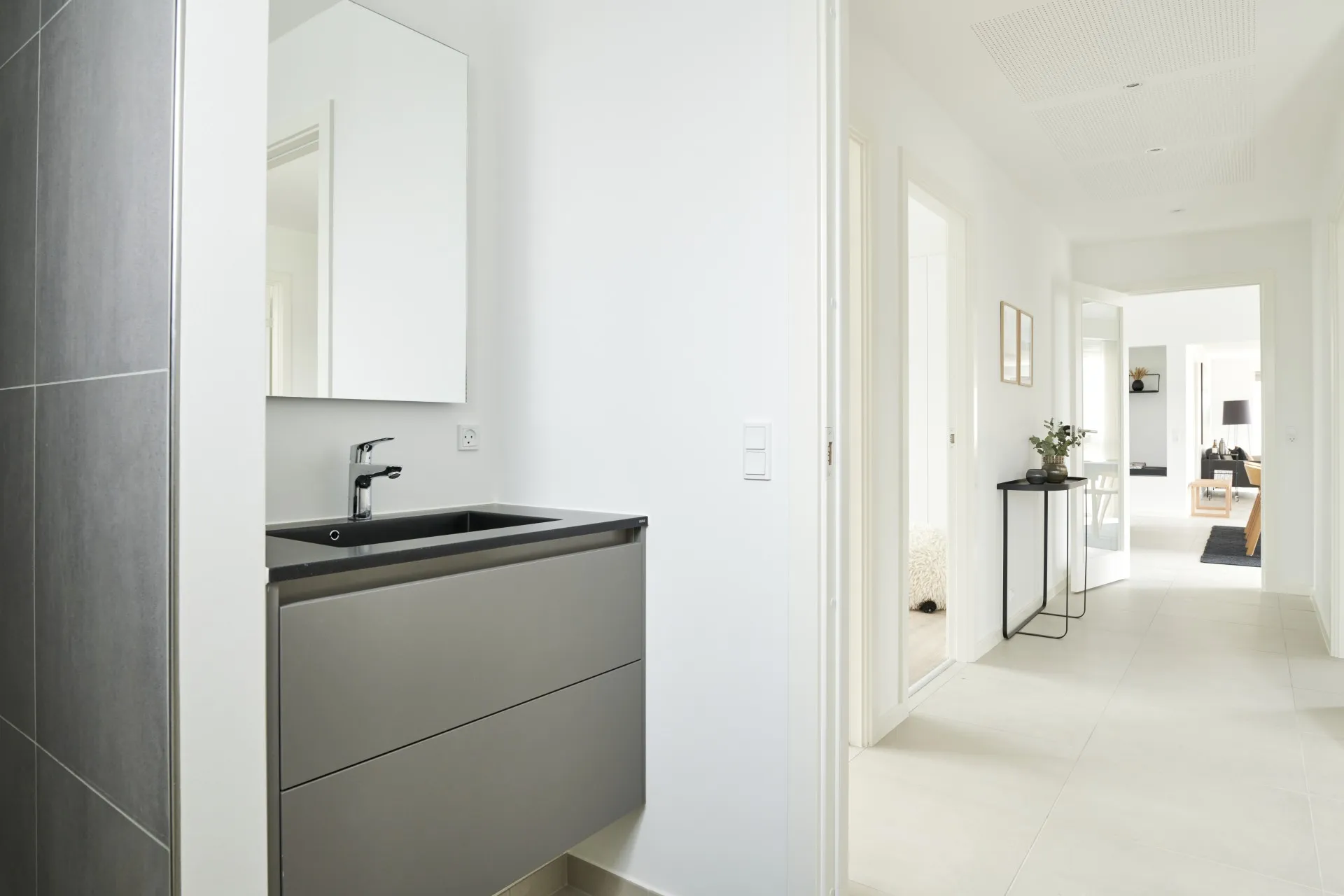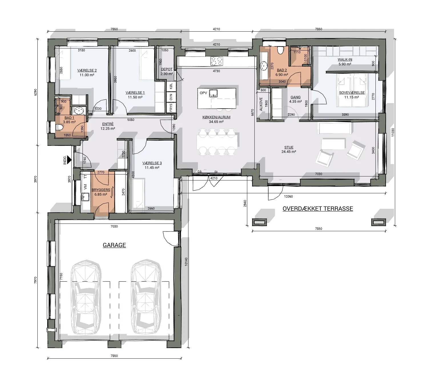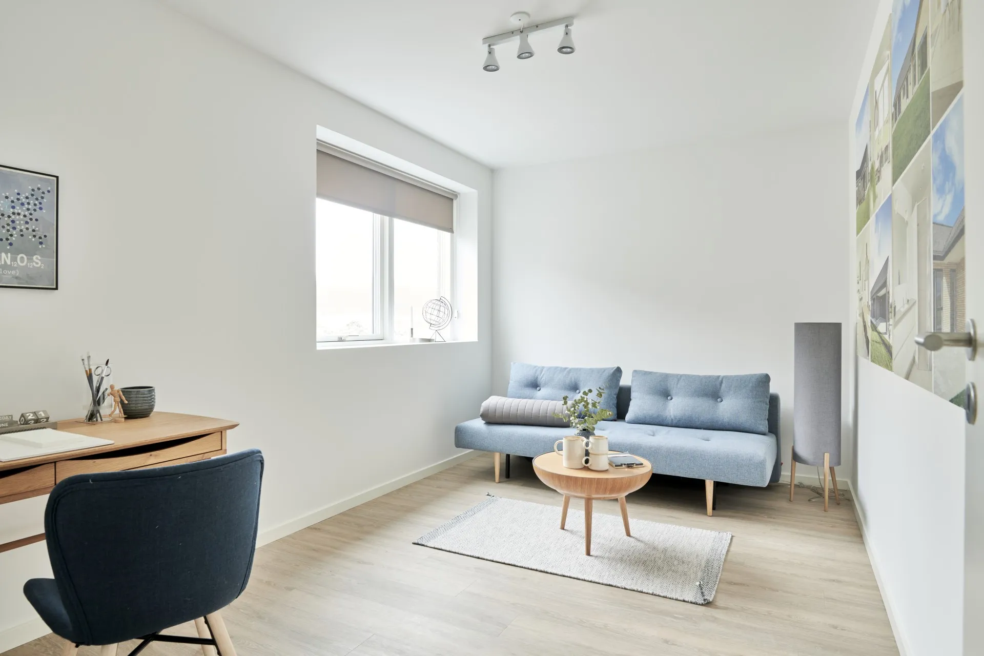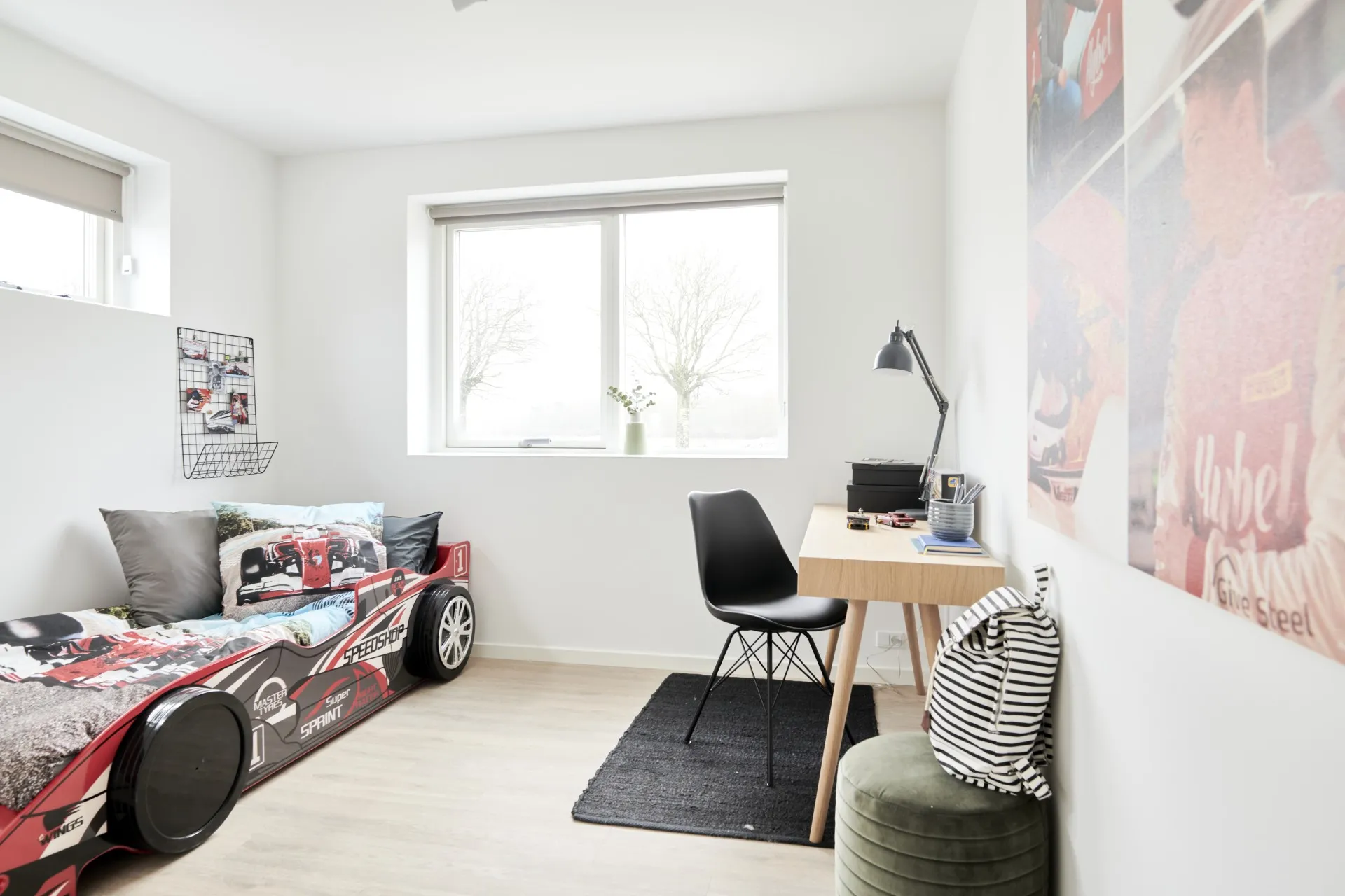 Mursten: Cold Hawaii. Klinker: Essey White. Gulv: Hybel 50
