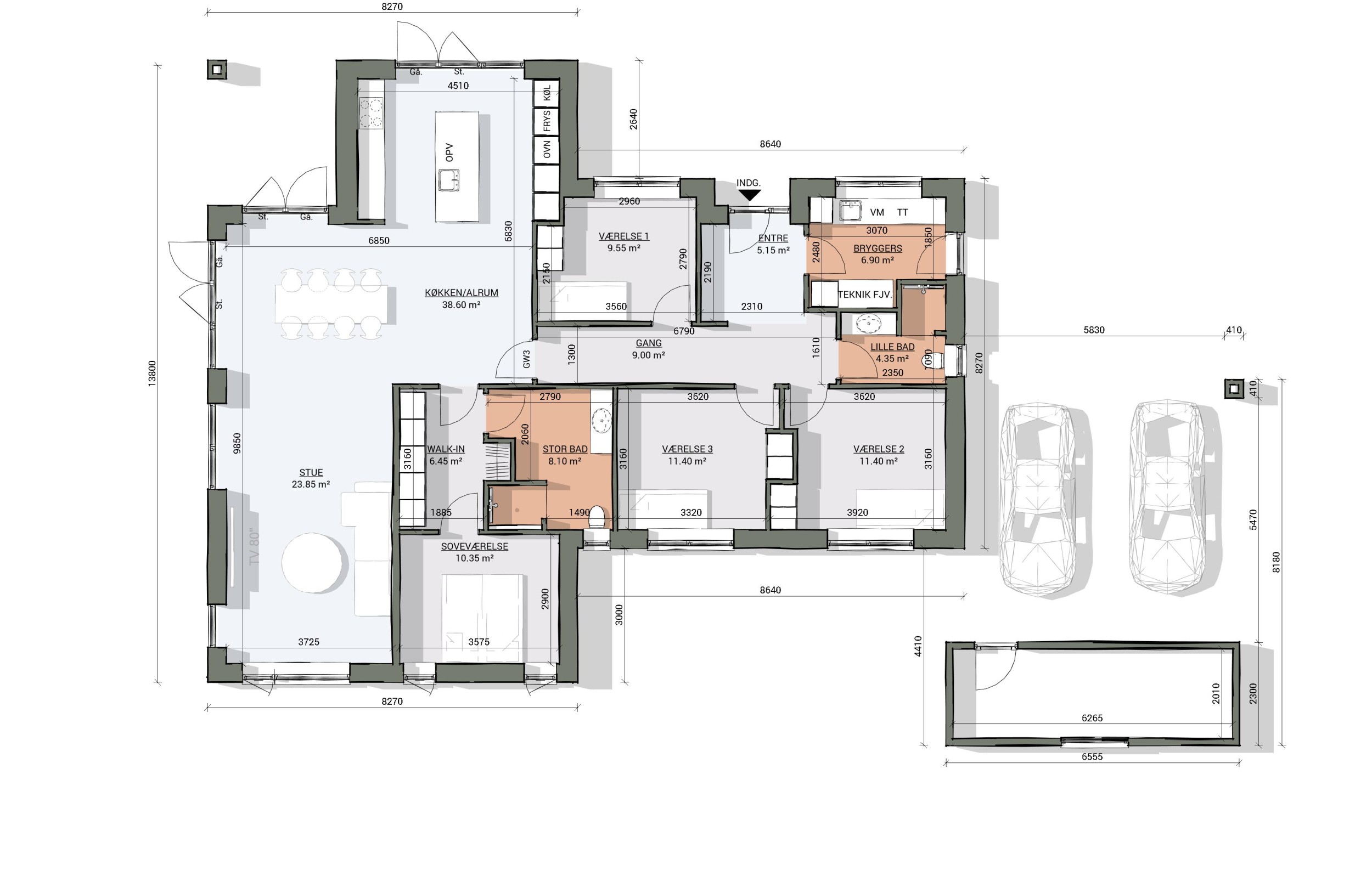 Bolig: 176 m2. Carport: 53 m2.