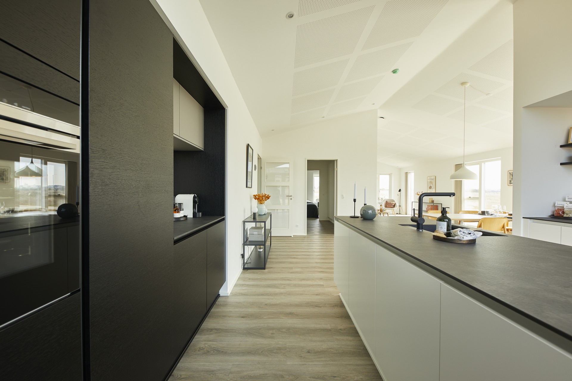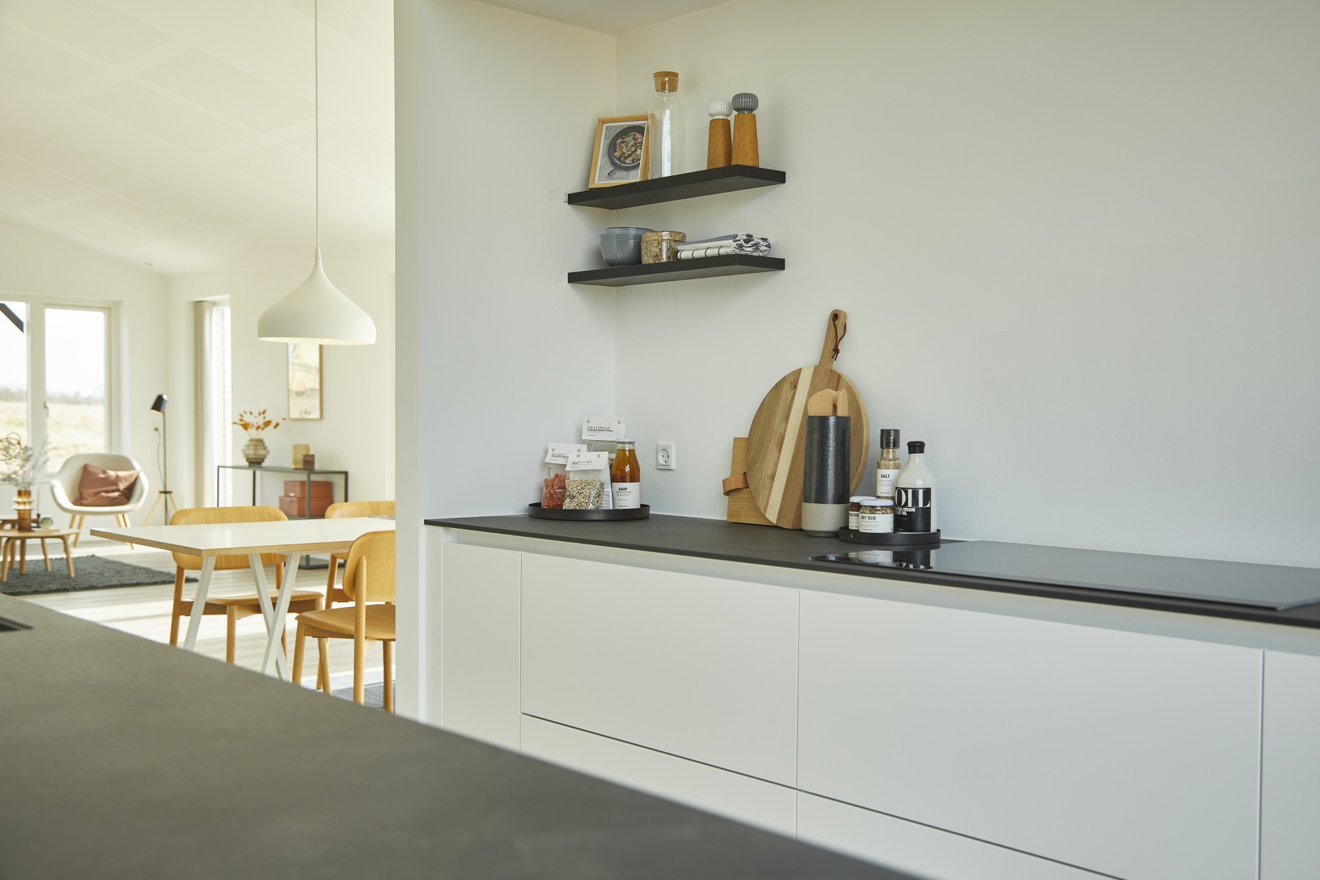 Indbyggede skabe, kaffeniche og overdækket terrasse