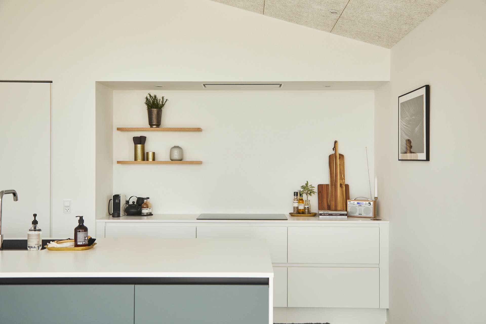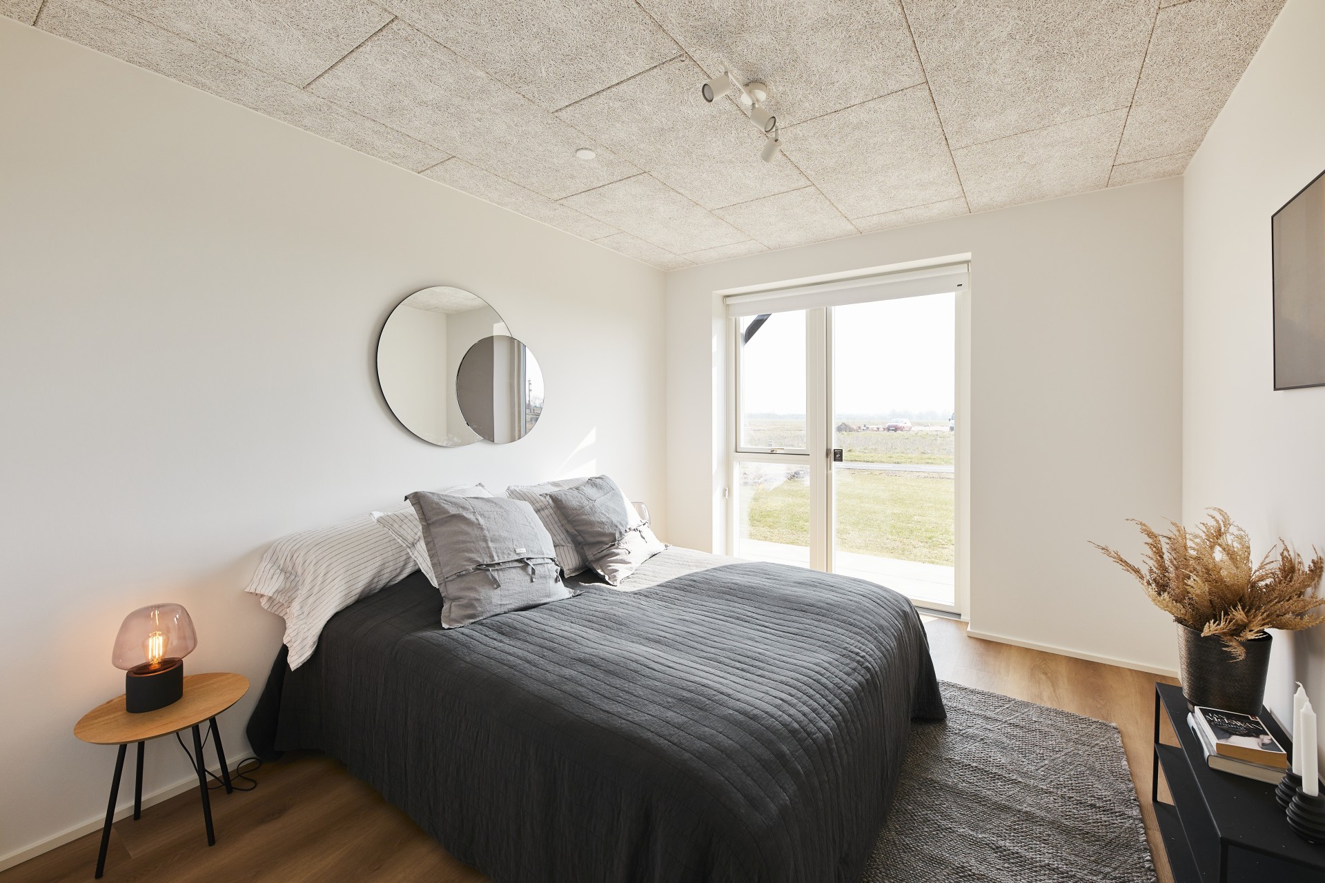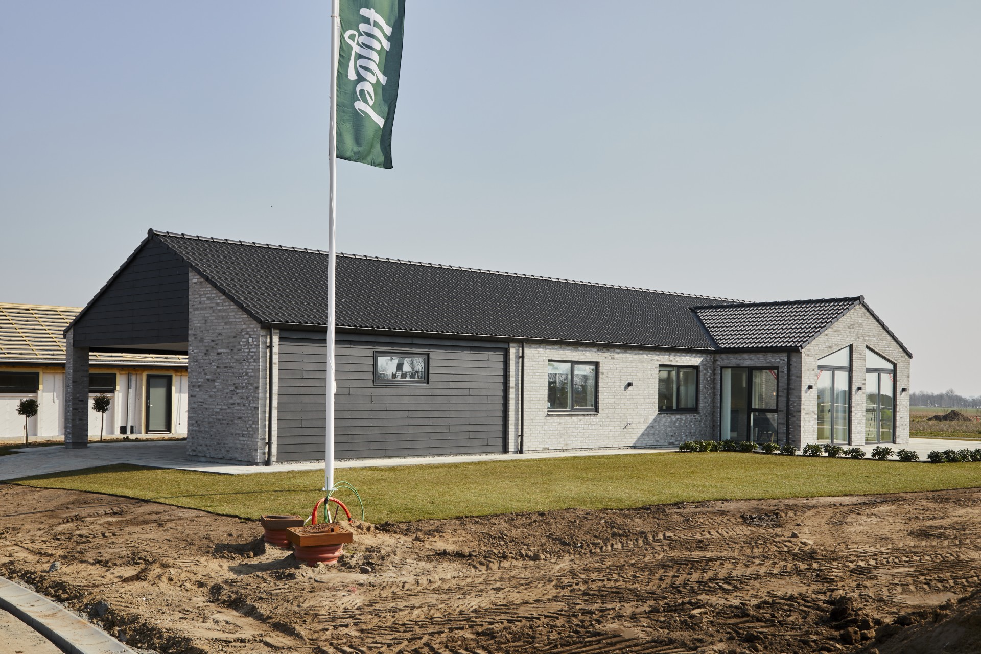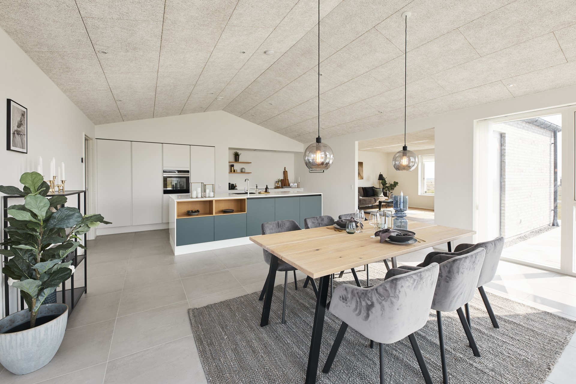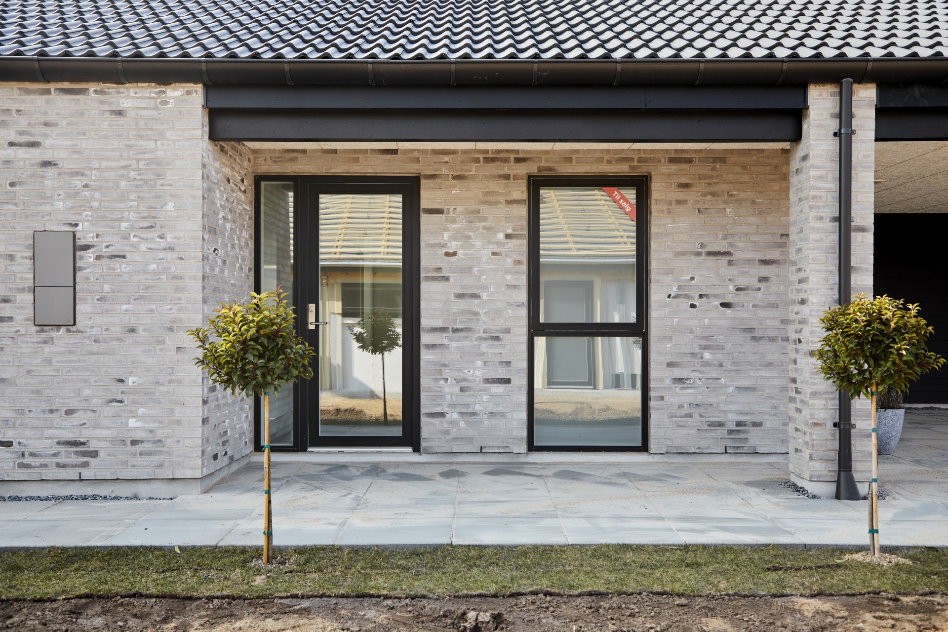 Forskudt vinkelhus med saddeltag uden udhæng.
