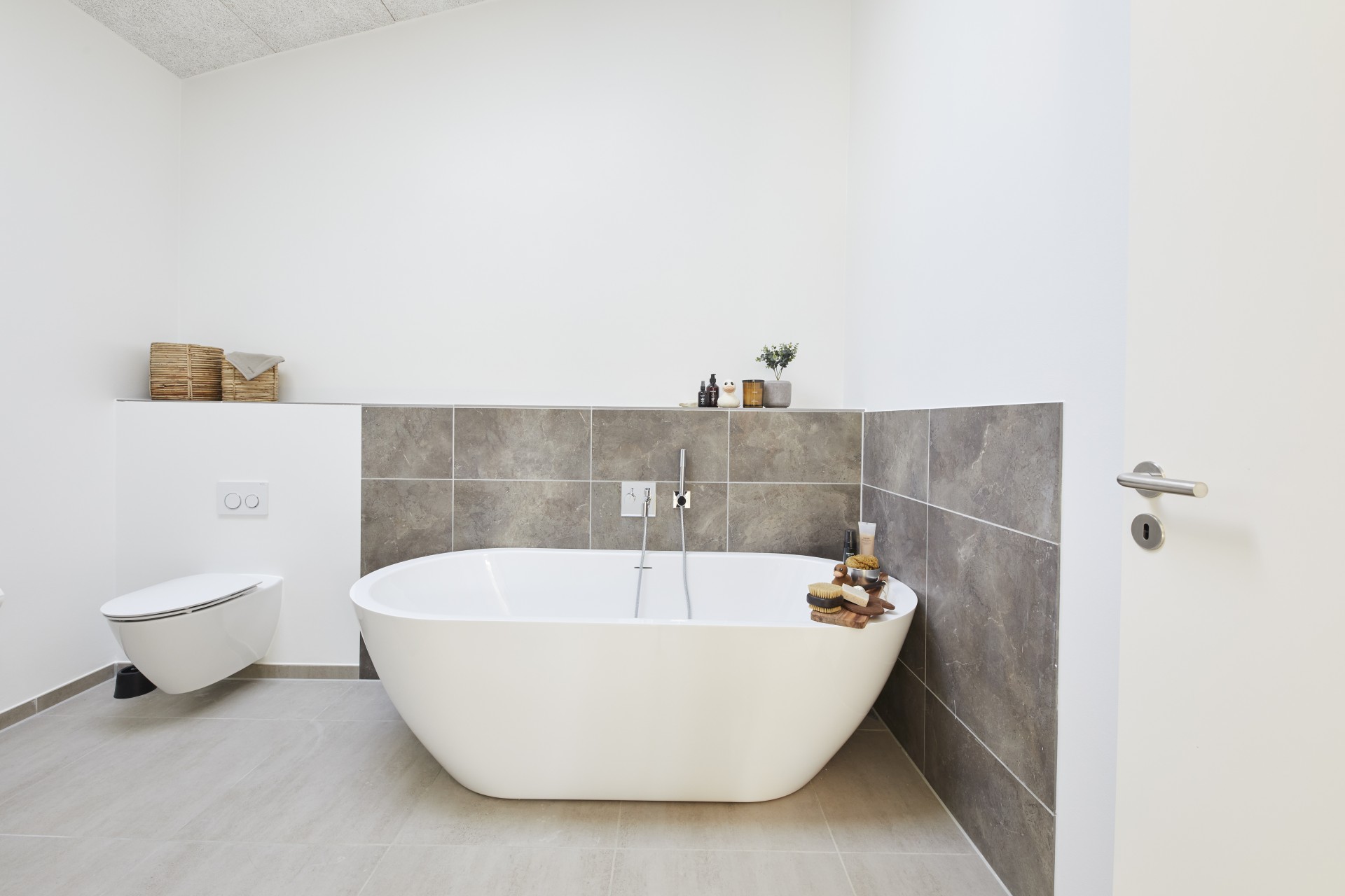 Badekar, siddebænk og overdækket indgang