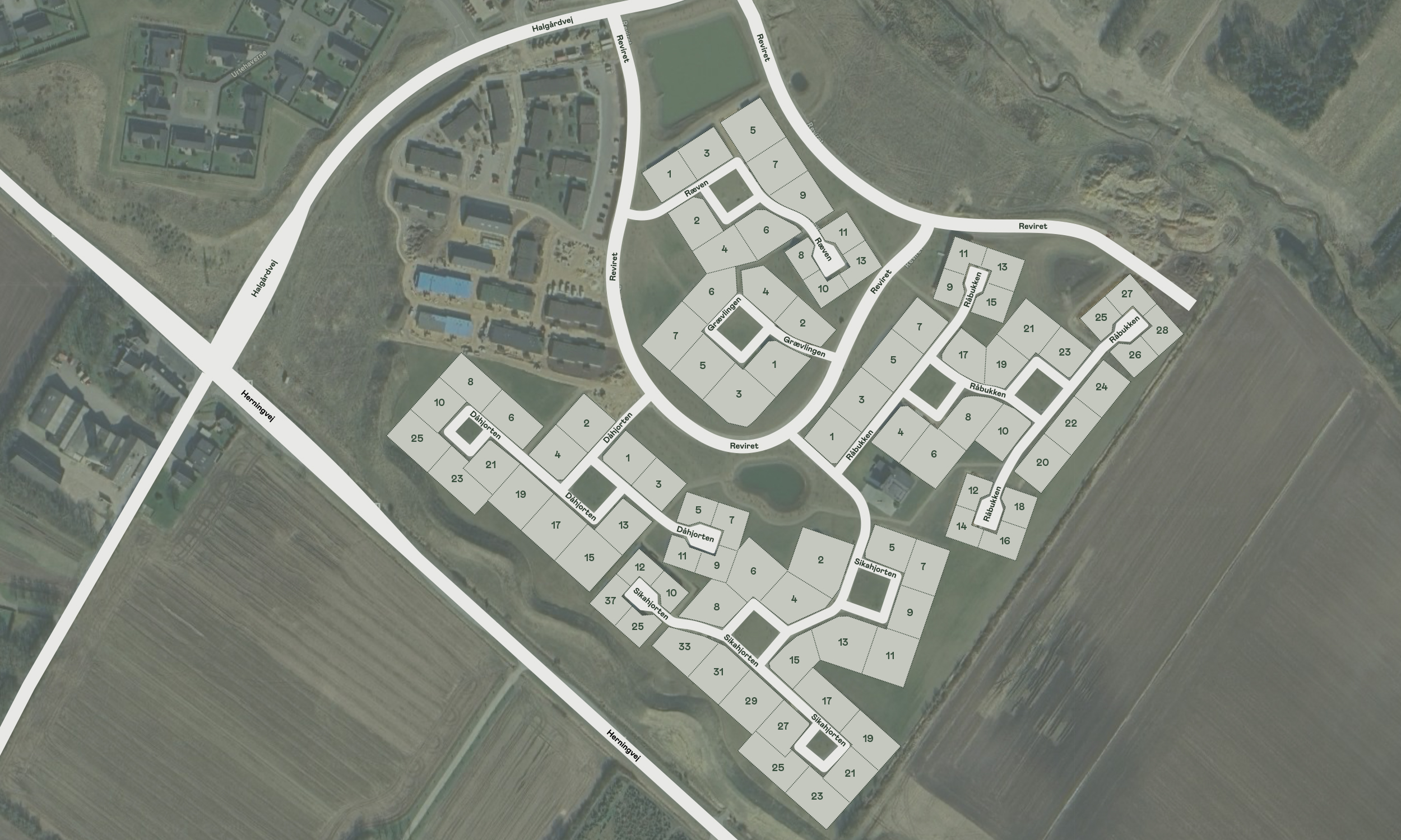 Klik på linket her for at se de enkelte grunde og finde alle relevante oplysninger – herunder salgsopstillinger, priser, boreprøver, lokalplan, udstykningsplan og meget mere. Dertil har I også har mulighed for at se hvilkegrunde er til salg, reserverede og solgte.
