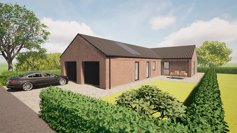 Vinkelhus med dobbelt garage i Støvring