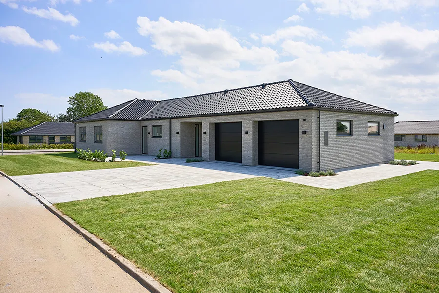 På Lokeshøj 4 ligger dette store vinkelhus med valmtag, hvor der er prioriteret carport og cykelparkering, så familiens transportmidler altid står i læ. Derudover er der, i modsatte ende at carporten, et fint skur med plads til diverse haveredskaber, værktøj og andet.