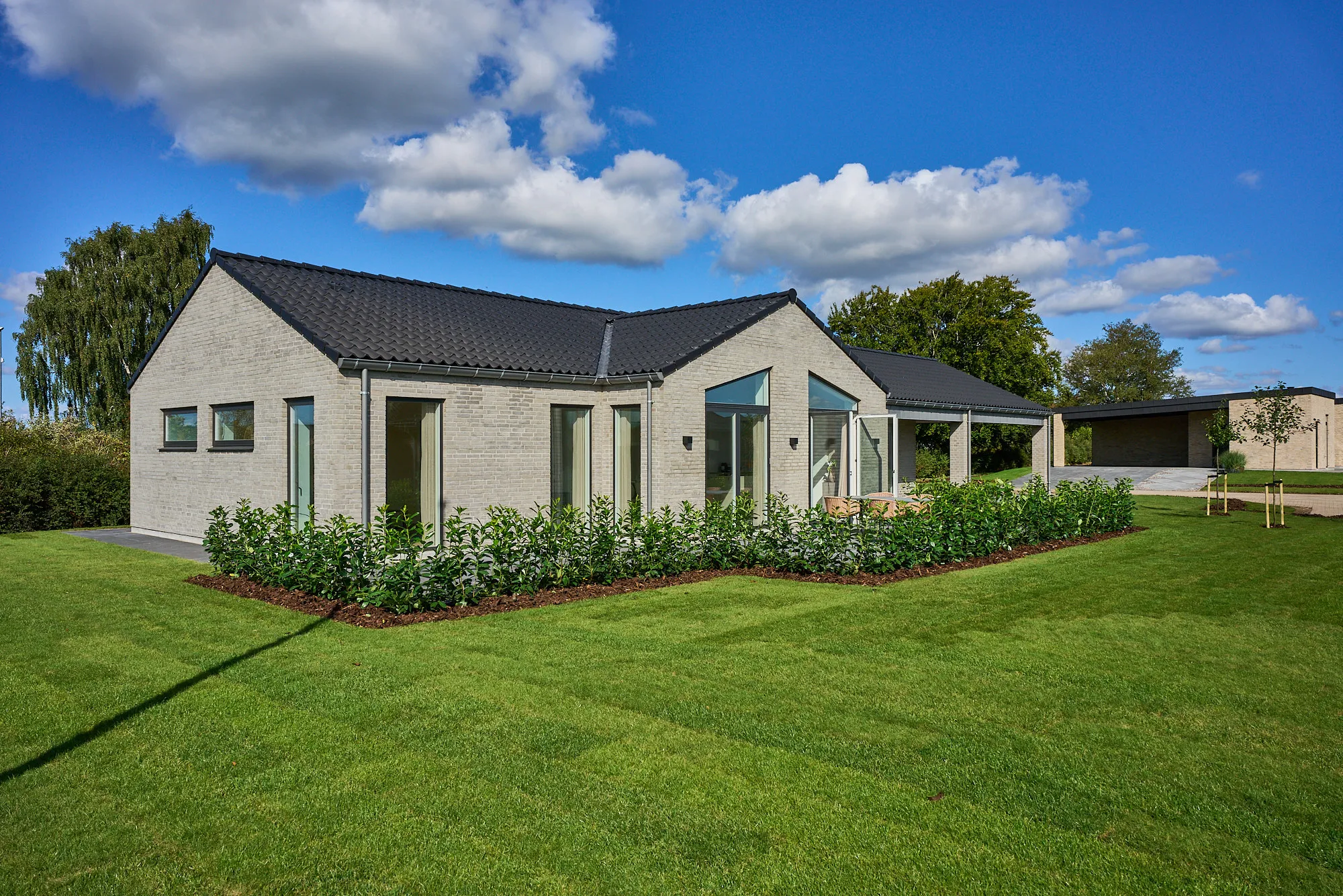 På Vendehøj 80 i Hornslet finder du et moderne hjem på 156 m² med en integreret carport på 48 m² inkl. redskabsrum. Huset er tegnet til at fungere i hverdagen og giver samtidig et lyst og indbydende udtryk, der gør det rart at komme hjem.