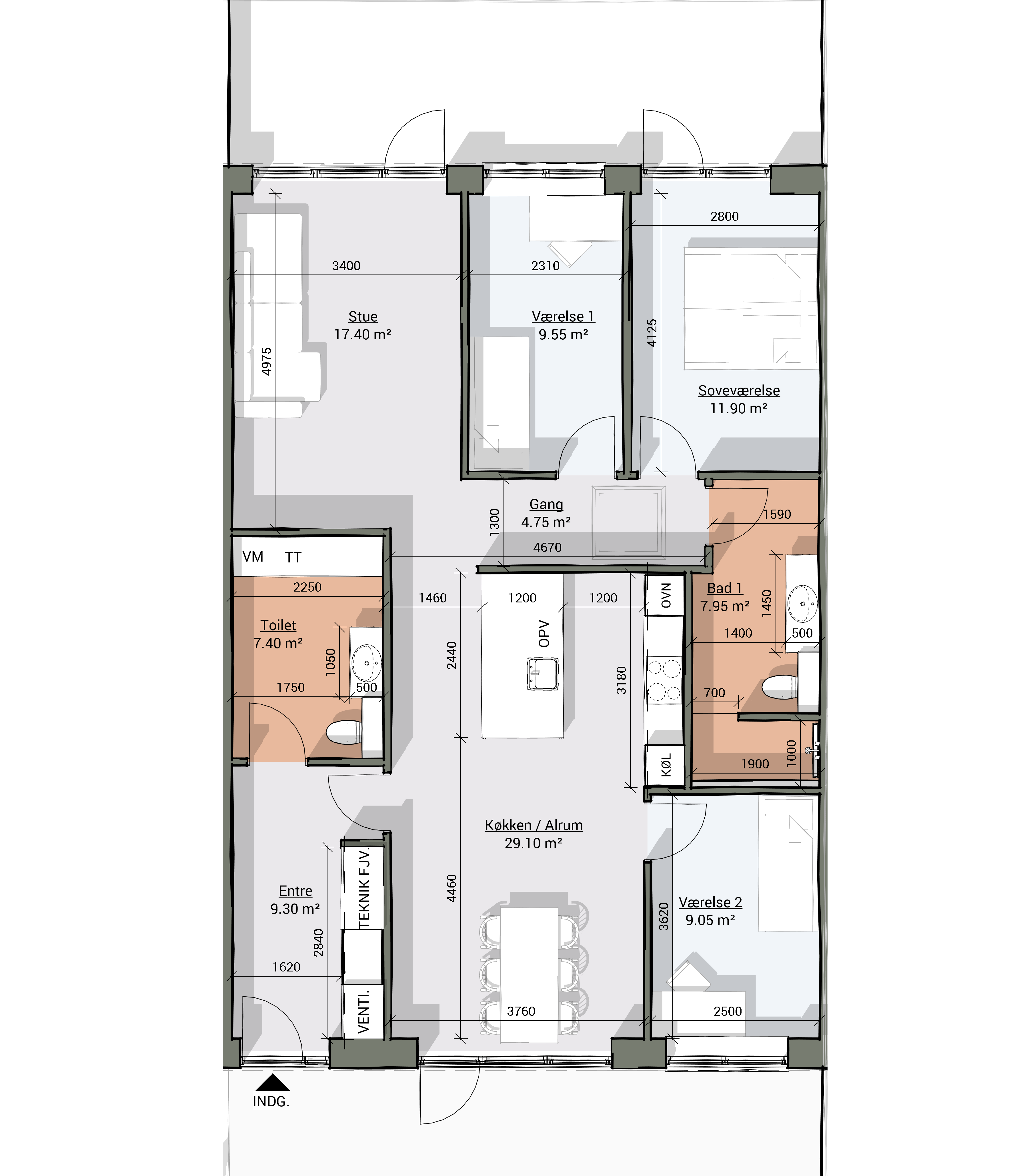 Alle rækkehusene på Ilderen byder på masser af muligheder for at skræddersy et spændende hus, der passer til jer, da I kan vælge mellem de to nedenstående og arkitekttegnede plantegninger. Alt sammen for at gøre det let og ligetil for jer, at skabe en ny hjemlig base tilpasset til jeres liv.