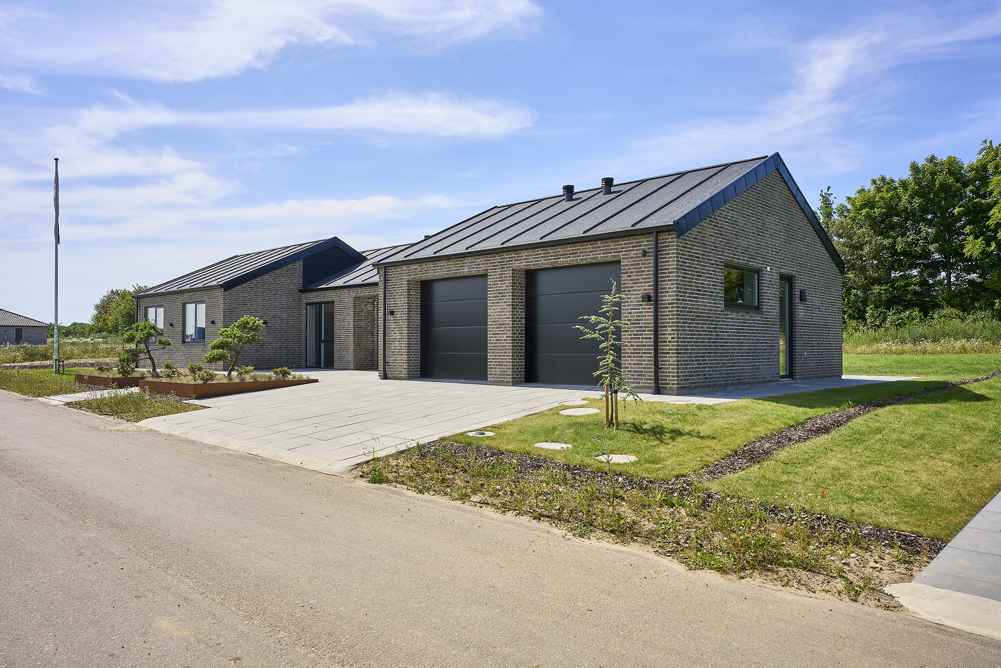 Det forskudte husdesign gør ikke bare hjemmet unikt udefra, men skaber også hyggelige kroge og små, private oaser. Forestil dig en solrig morgen med en kop kaffe i dit egethjørne af haven. Med garagen lige ved hånden har du samtidig et praktisk og sikkert sted til både bilen og altdet, der skal gemmes væk – uden at gå på kompromis med æstetikken.