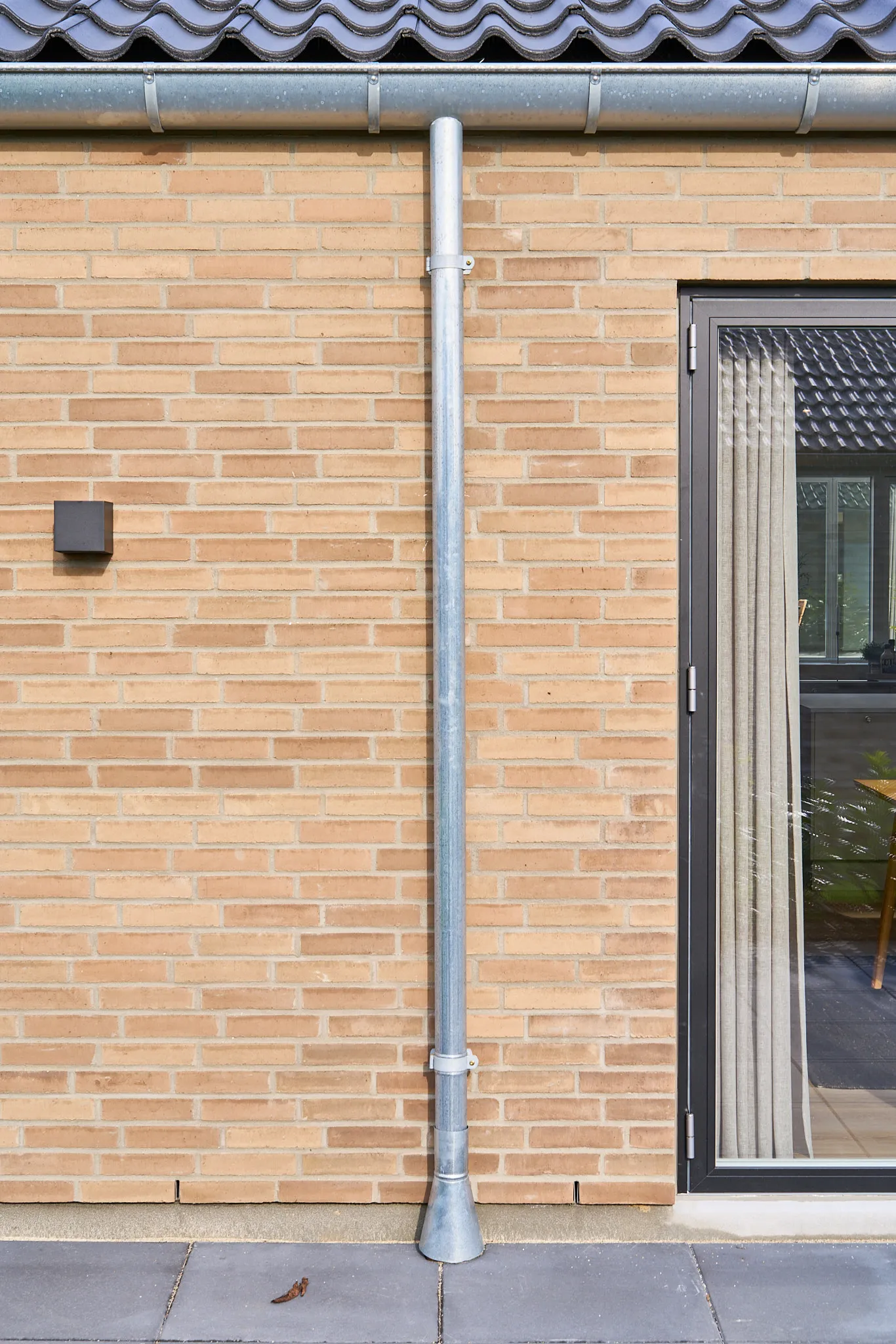Få saddeltag uden udhæng og opmurede gavle og zinktagrender.